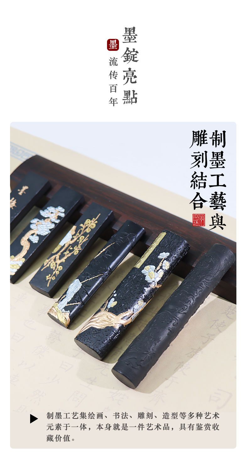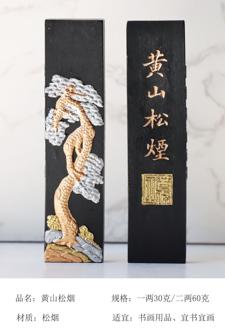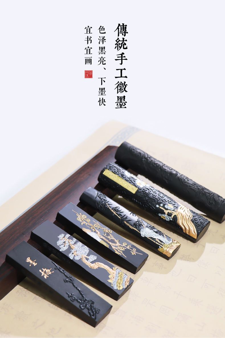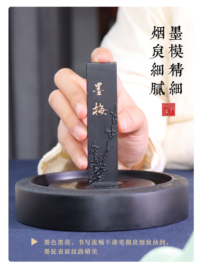 黄山松烟墨条墨块油烟墨锭文房四宝老胡开文徽墨纯手工研墨砚台