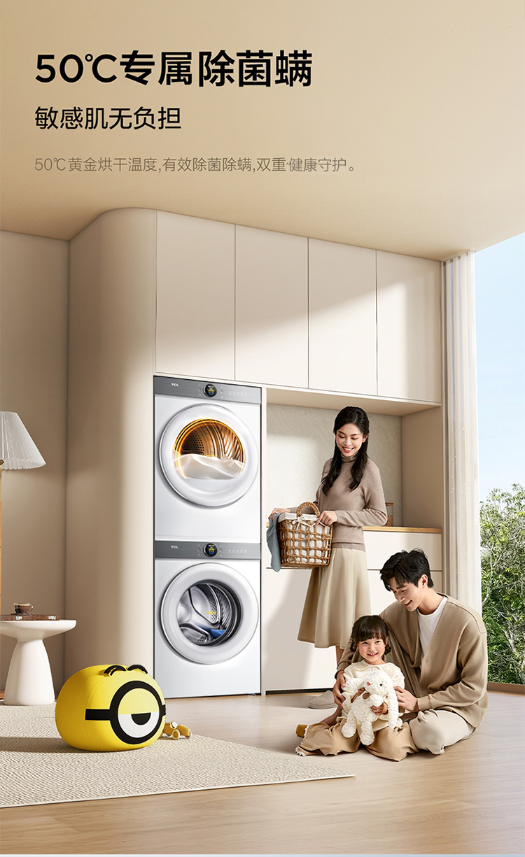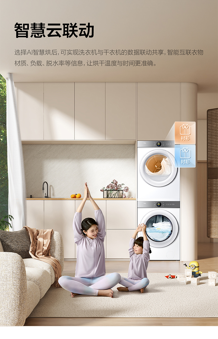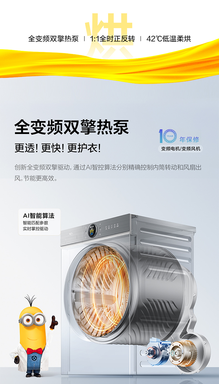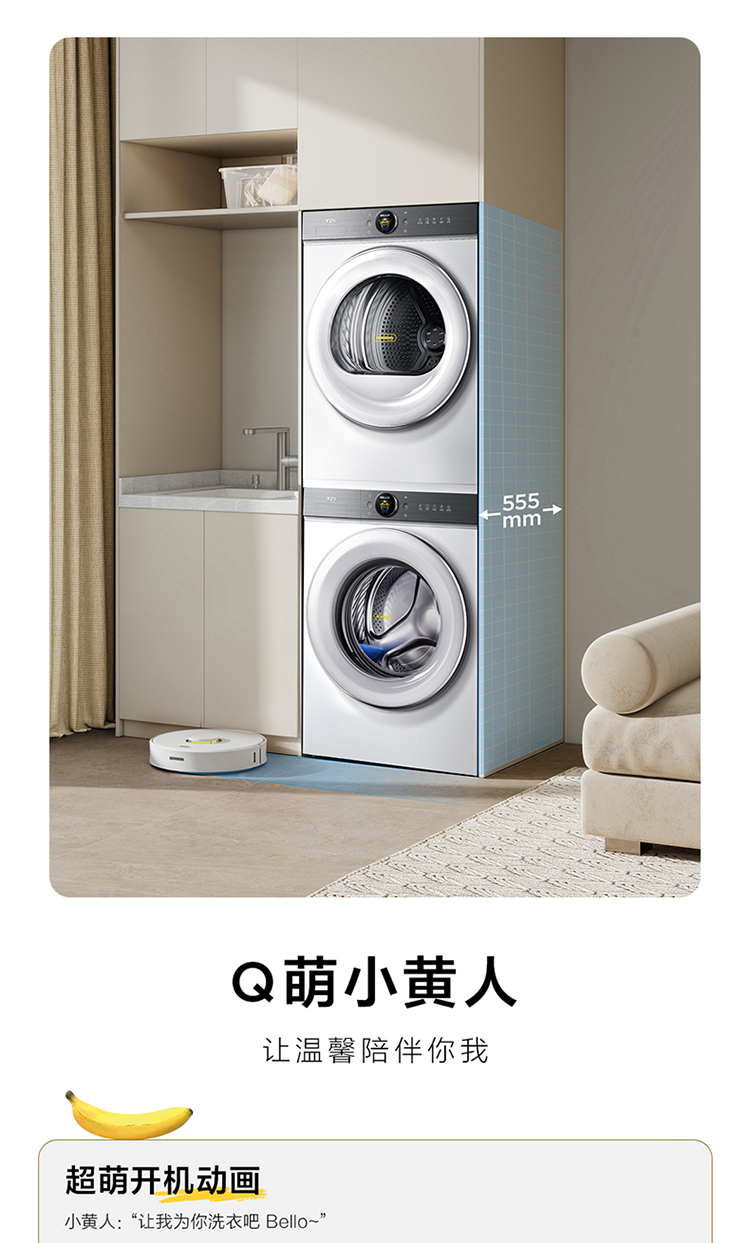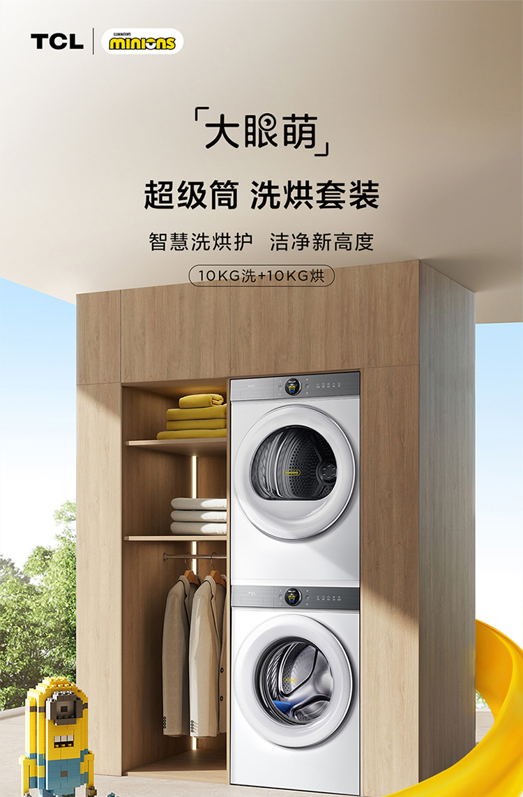 TCL小黄人·大眼萌超级筒T7R 12公斤滚筒+10公斤双擎热泵烘干洗烘套装1:1正反转 G100T7R-DI+H100T7R-BW