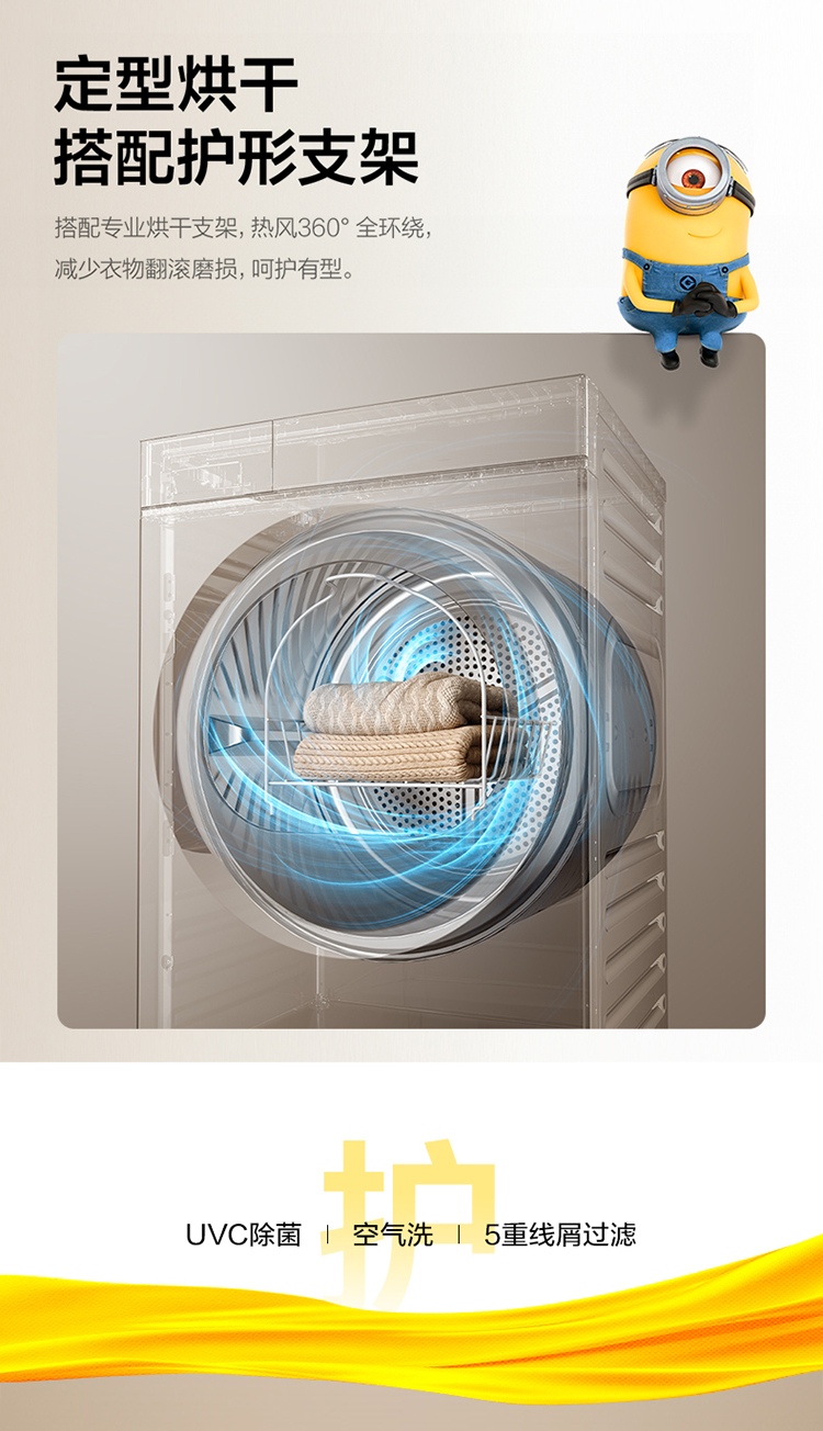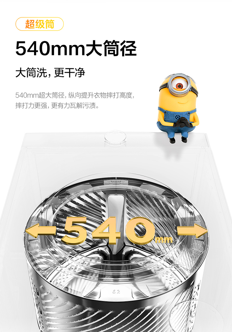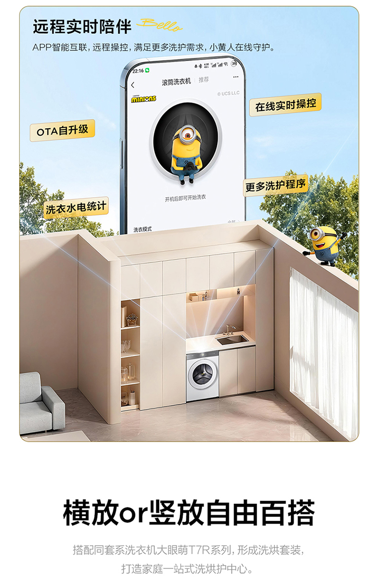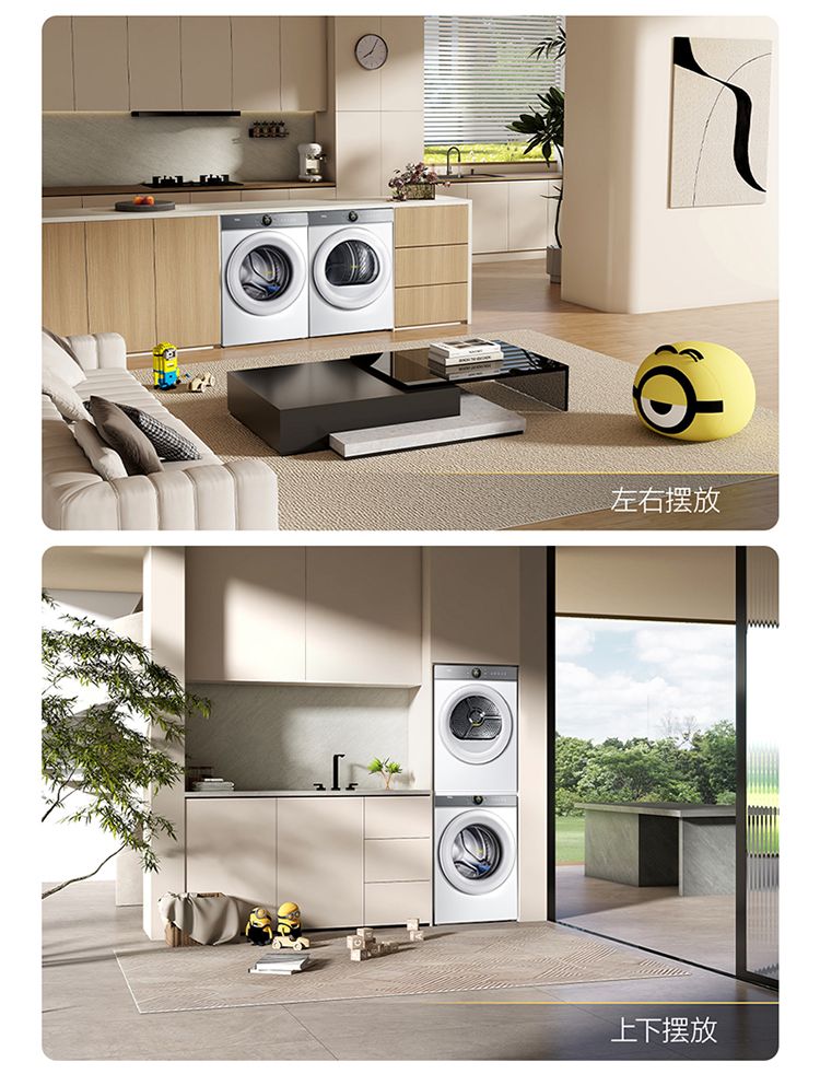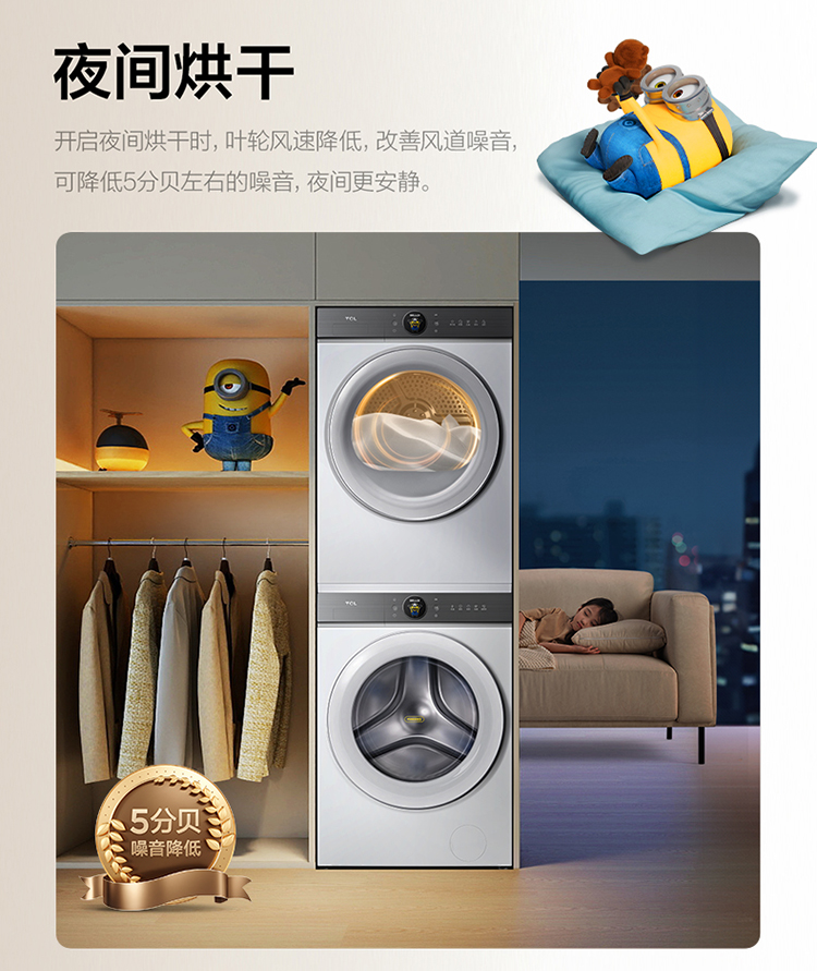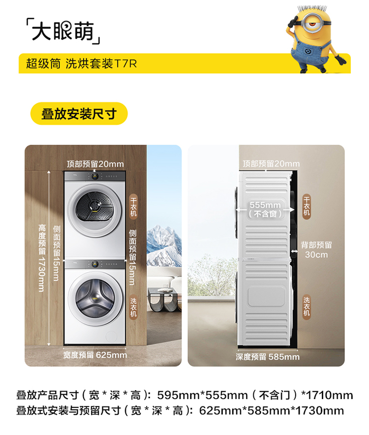 TCL小黄人·大眼萌超级筒T7R 12公斤滚筒+10公斤双擎热泵烘干洗烘套装1:1正反转 G100T7R-DI+H100T7R-BW