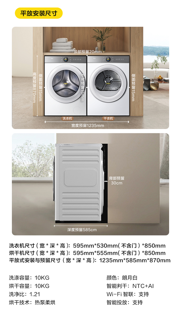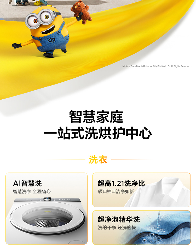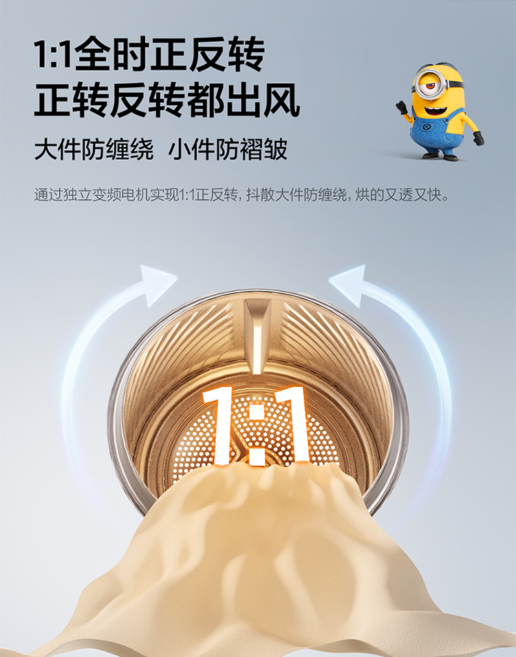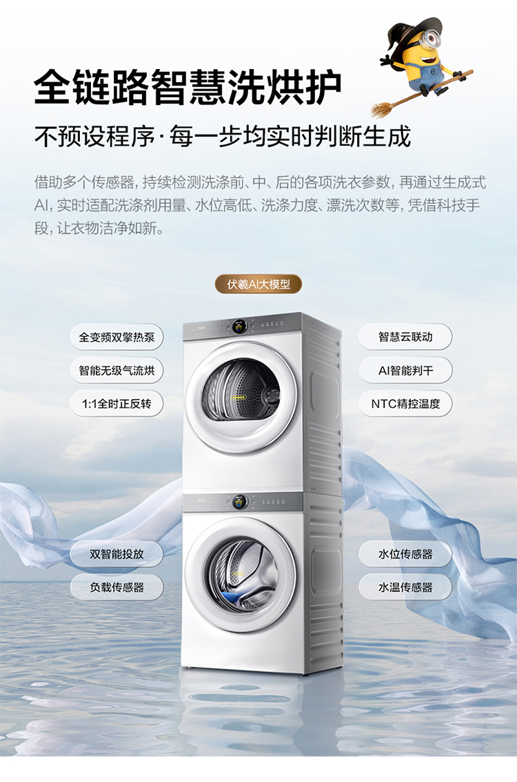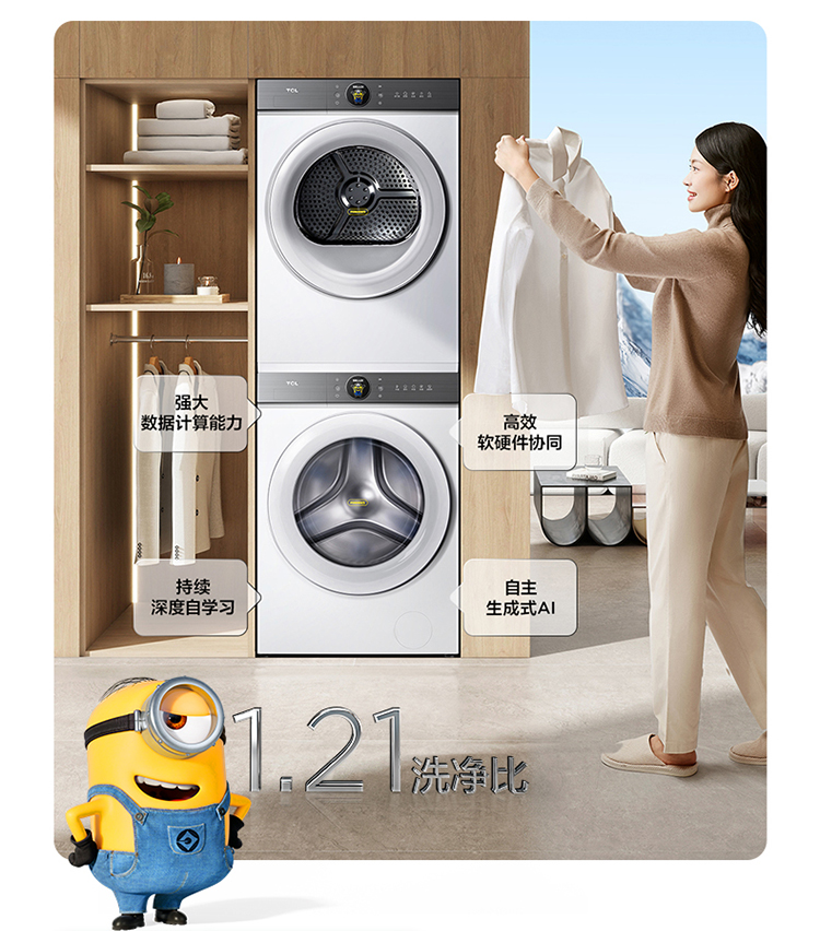 TCL小黄人·大眼萌超级筒T7R 12公斤滚筒+10公斤双擎热泵烘干洗烘套装1:1正反转 G100T7R-DI+H100T7R-BW