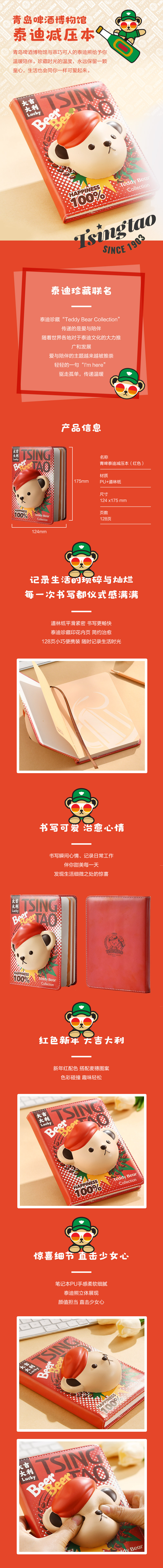 【青岛啤酒博物馆】青啤泰迪减压本红色青岛啤酒 官方文创