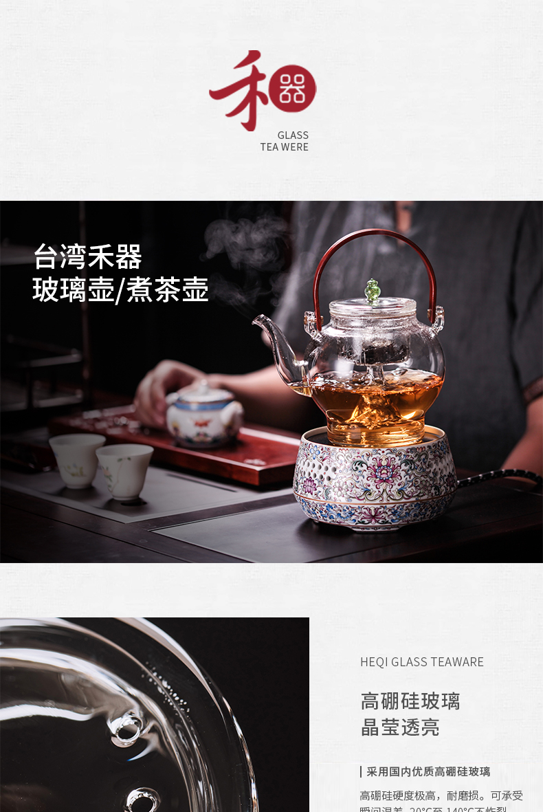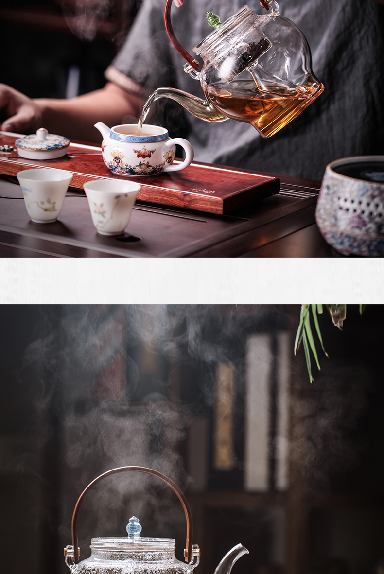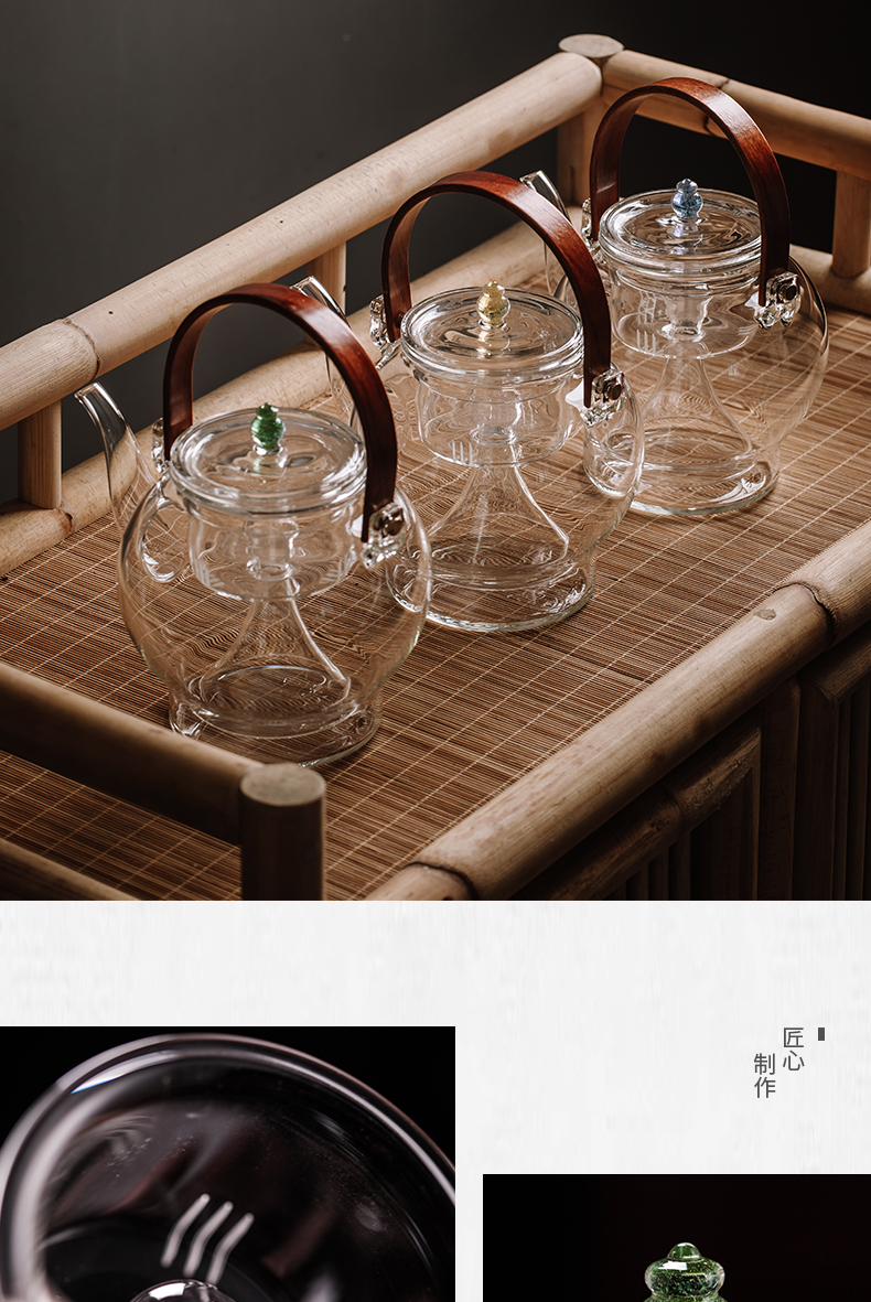 永利汇禾器中式玻璃莲心壶养生壶煮水壶蒸茶耐高温透明花茶煮茶