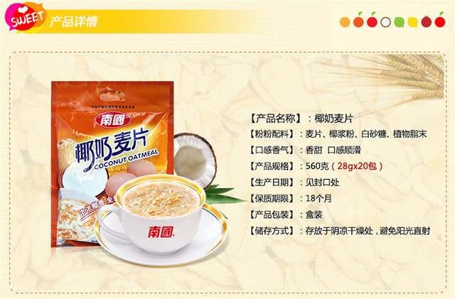 【整箱批发】 南国食品 椰奶麦片560gX12袋 海南特产