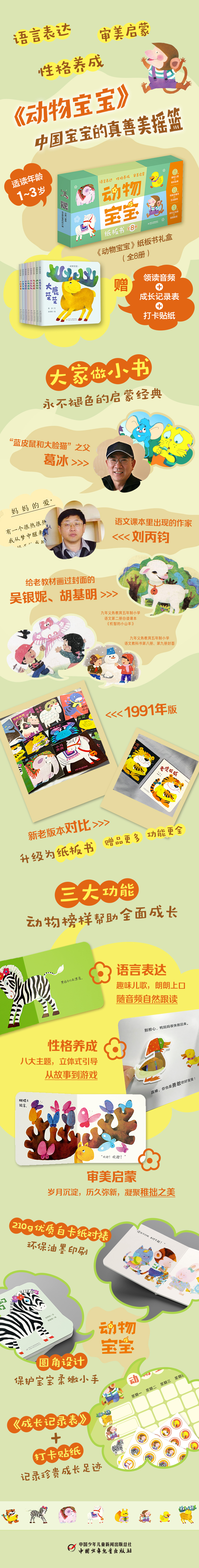 动物宝宝纸板书(全8册)(大鹿荣荣+斑马幻幻+老虎威威+小猴淘淘+松鼠跳跳+小马奔奔+小象罕纳+小鸭晃晃)适合0-3岁
