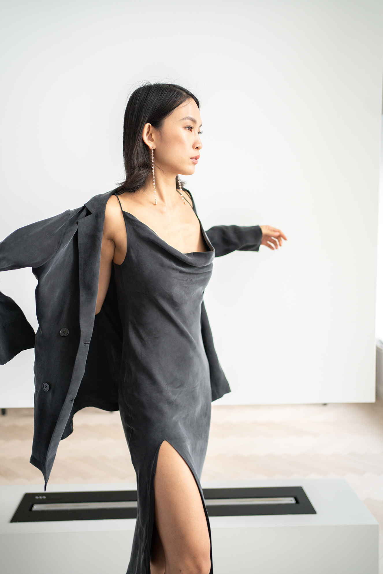 CG|Soft washed Cowls Front Slipdress [铜氨丝荡领连衣裙]