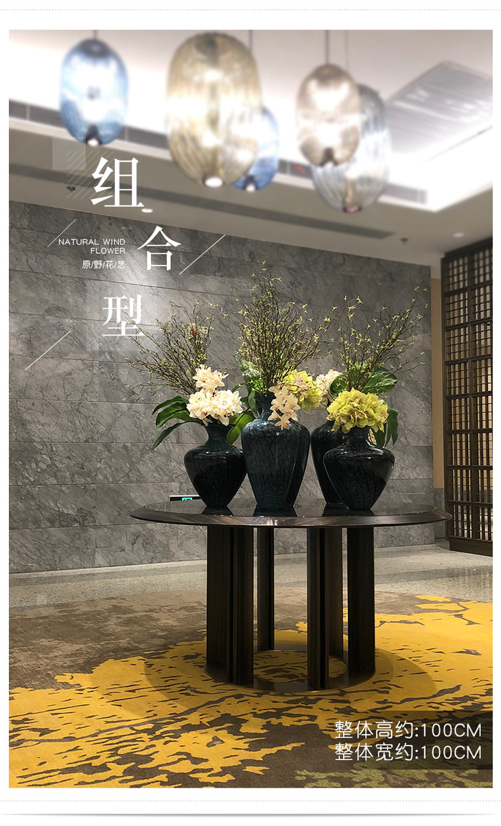 原野高档酒店大堂仿真花组合型会议大厅仿真花奢华高端落地大花瓶