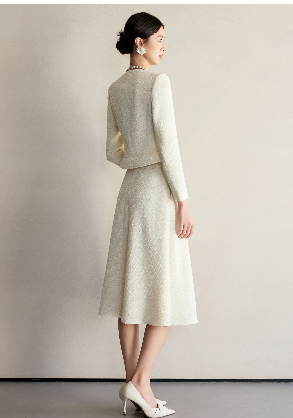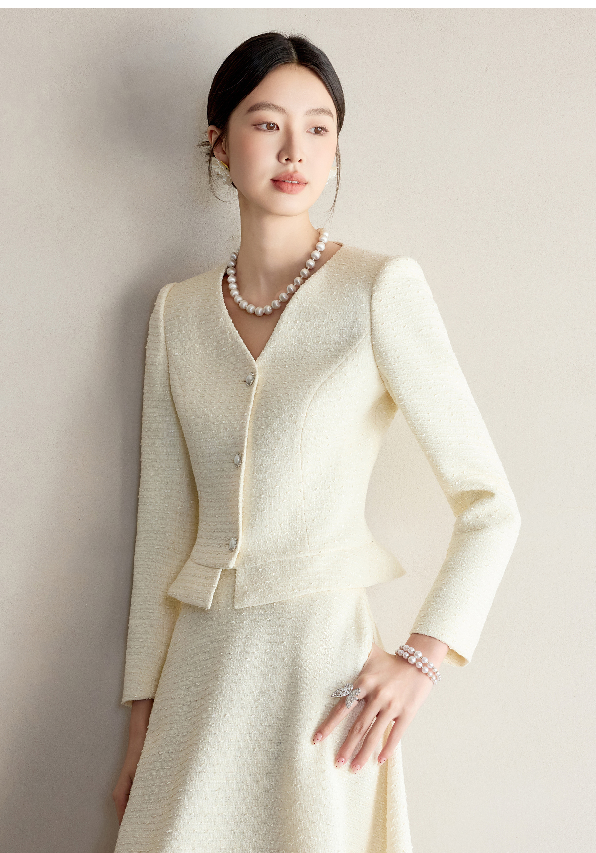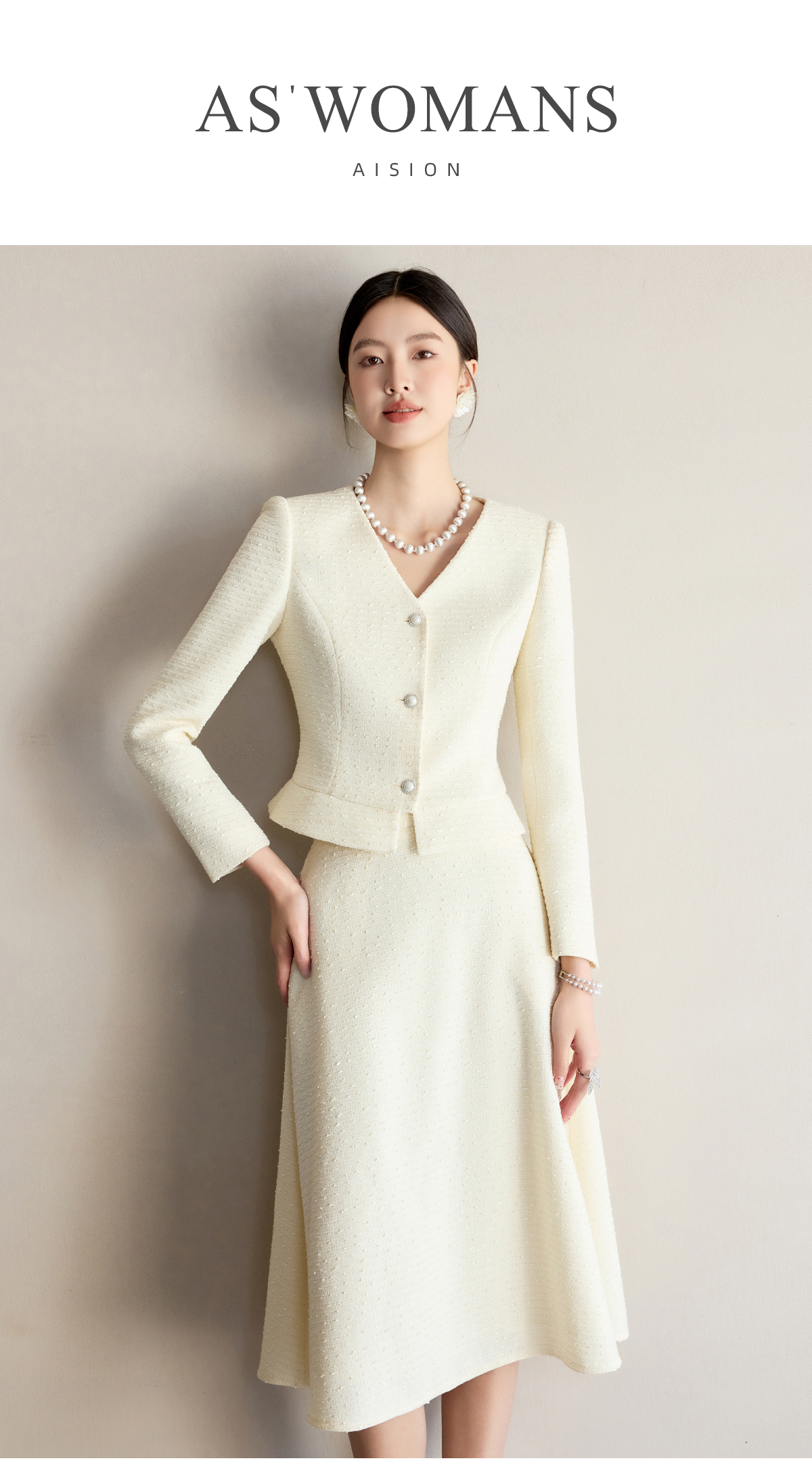 艾尚臣2025春季新款小香风套装女粗花呢编织收腰外套半身裙两件套