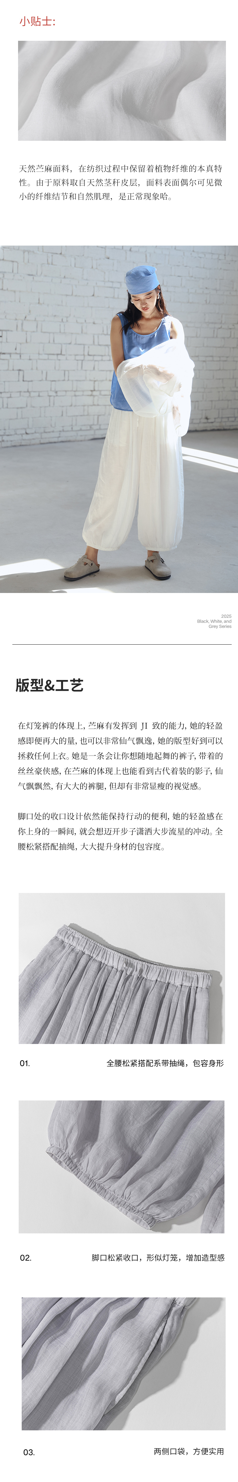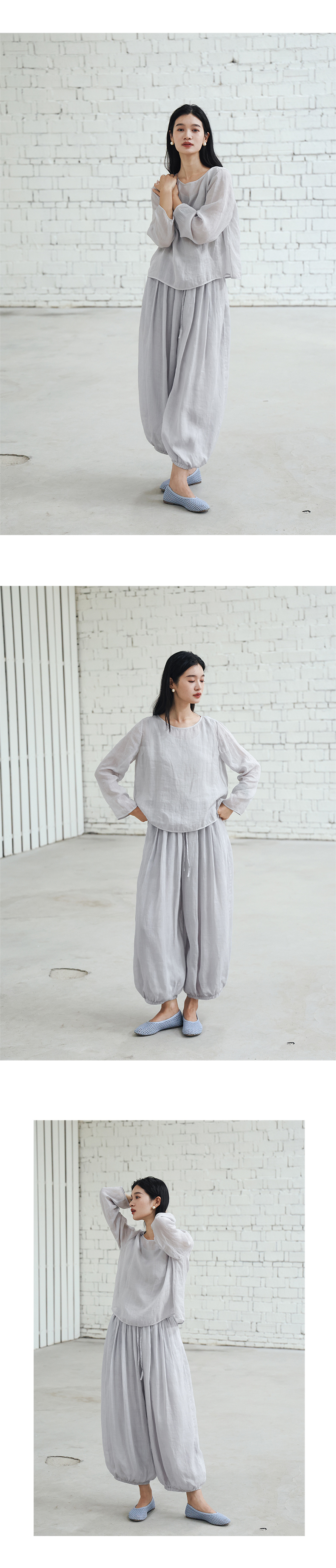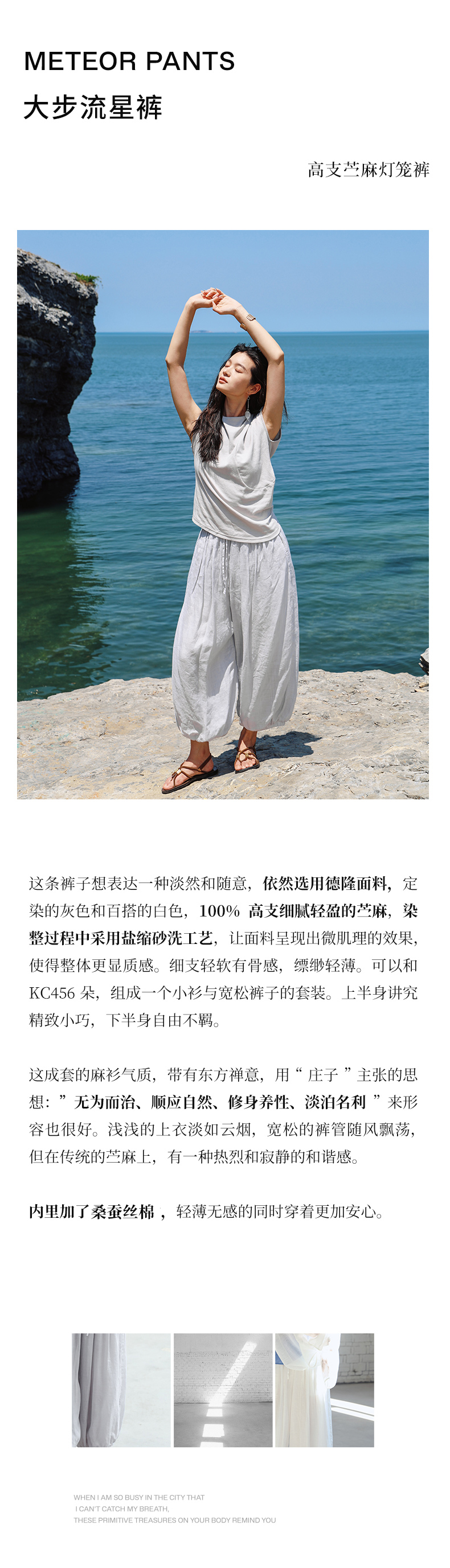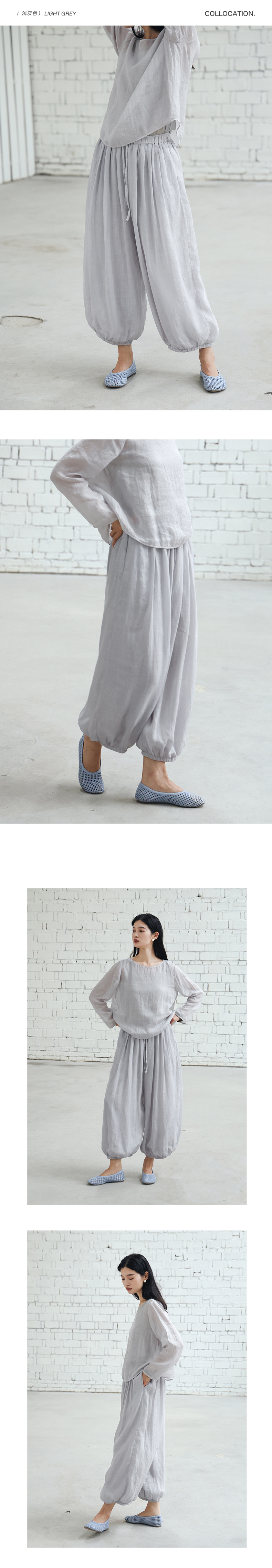 绽放447朵/【黑白灰系列·大步流星裤】高支苎麻双层灯笼裤休闲裤