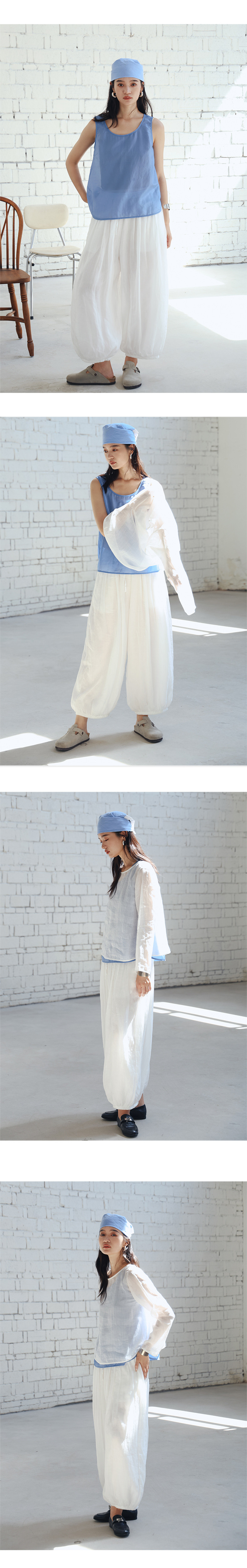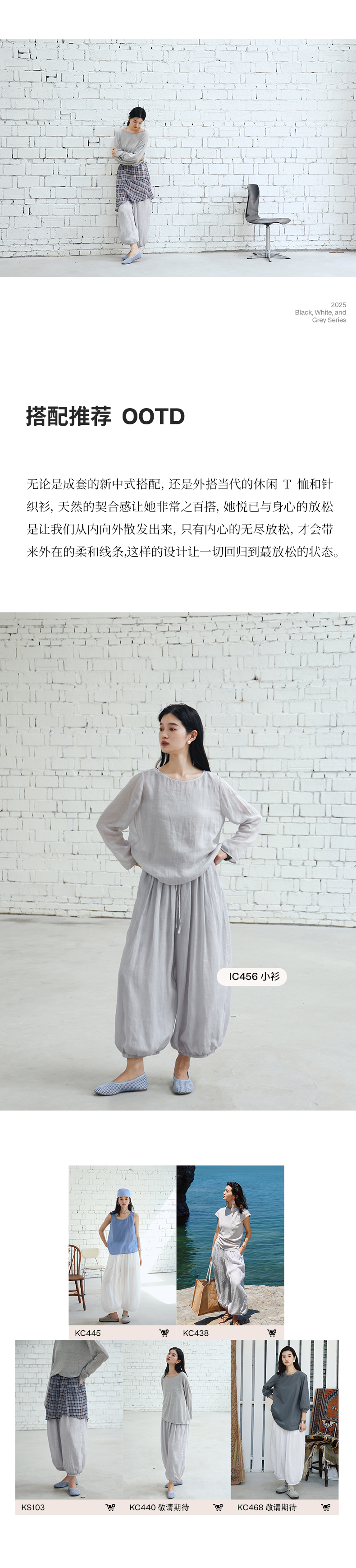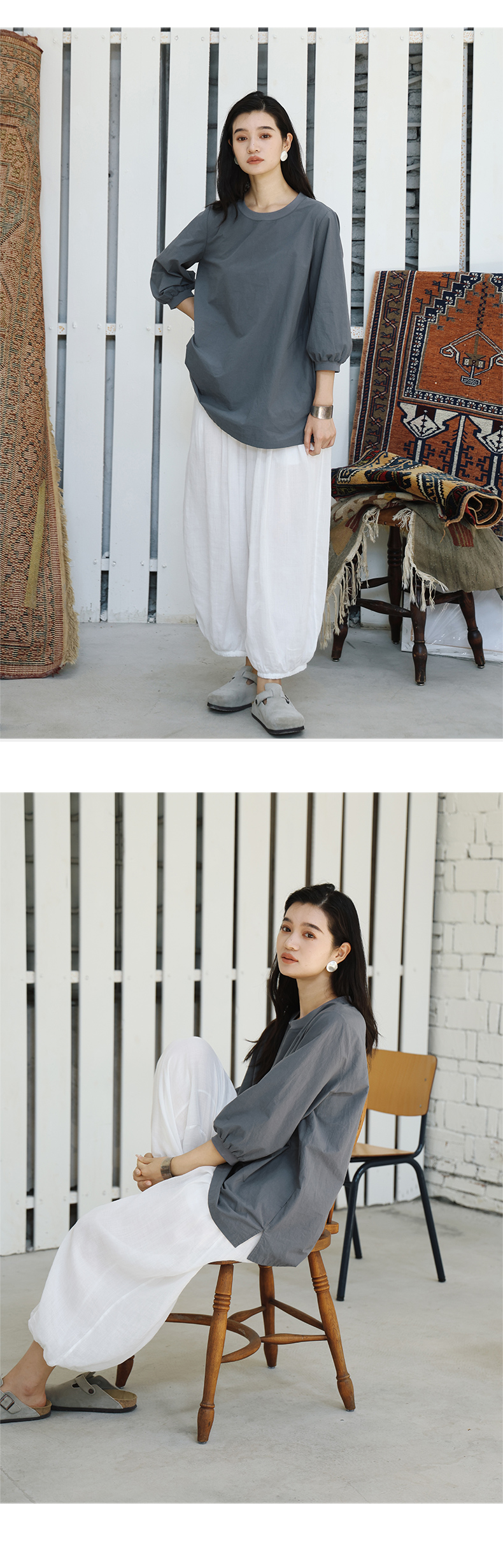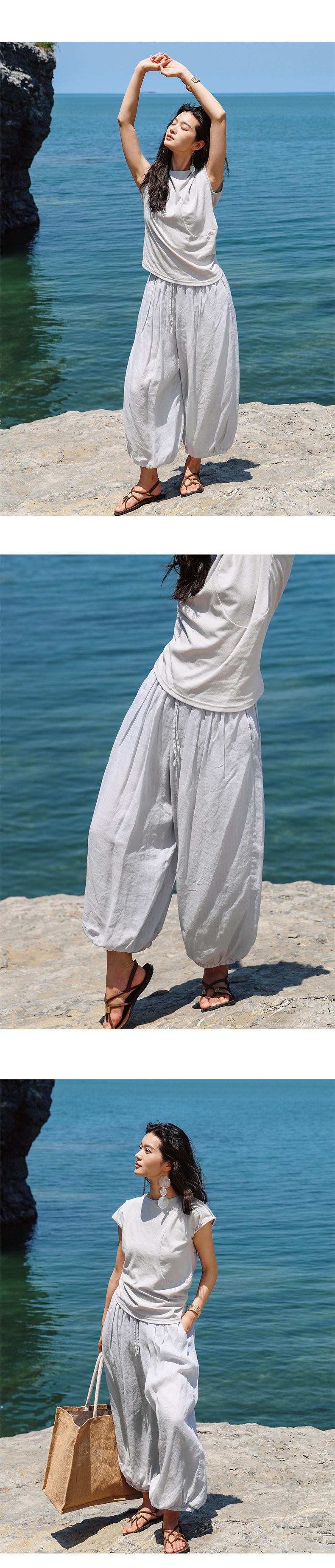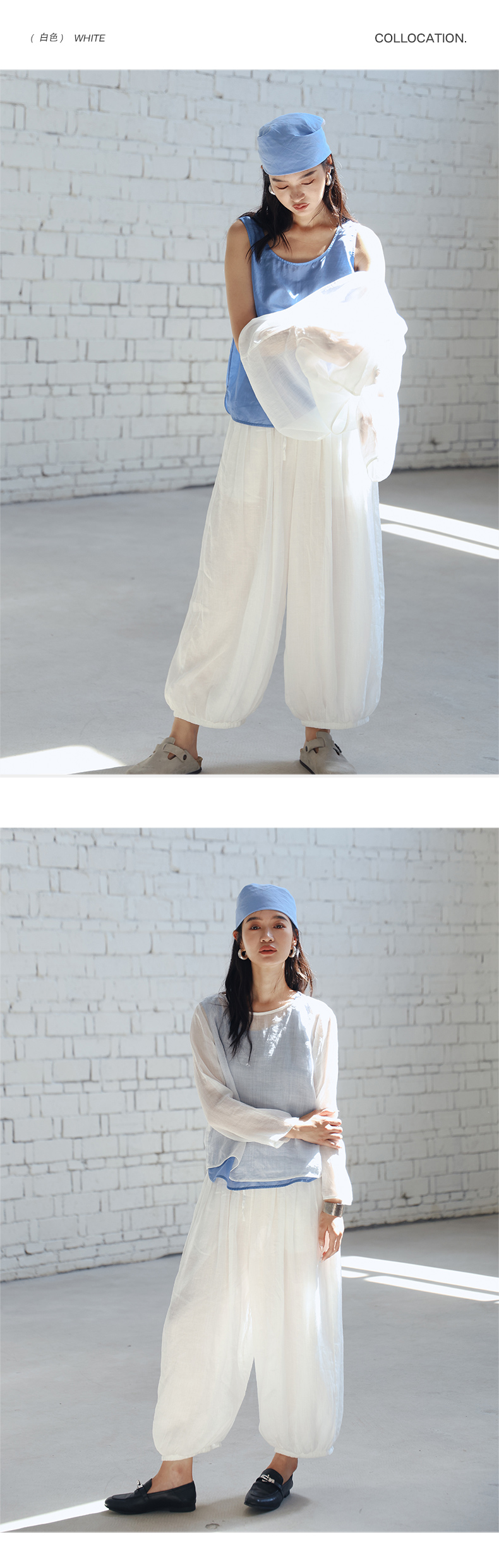 绽放447朵/【黑白灰系列·大步流星裤】高支苎麻双层灯笼裤休闲裤