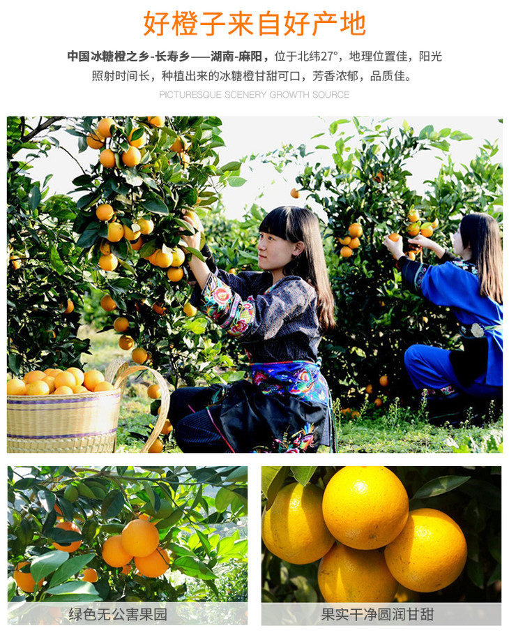 麻阳冰糖橙产于湖南省麻阳苗族自治县,因其含糖量高而得名,俗称冰糖泡或冰糖柑。麻阳被誉为——中国冰糖橙之乡。