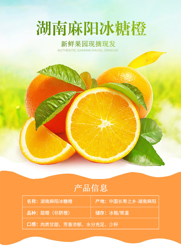 麻阳冰糖橙也叫麻橙,橙子身上有一些麻点点也是正常的哦!不要看它个头小,外观不起眼,却肉质细嫩,果汁丰富,浓甜清香。