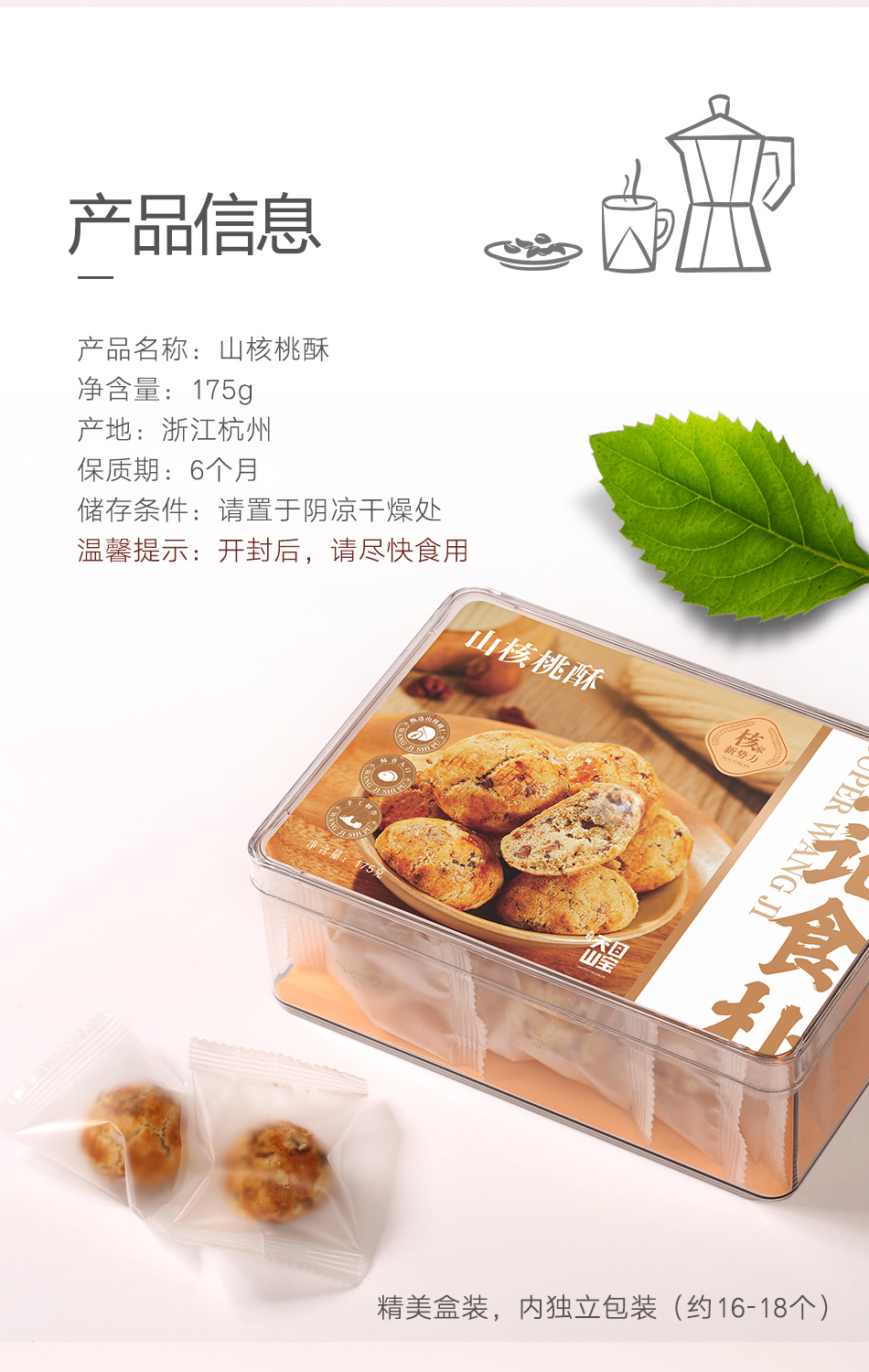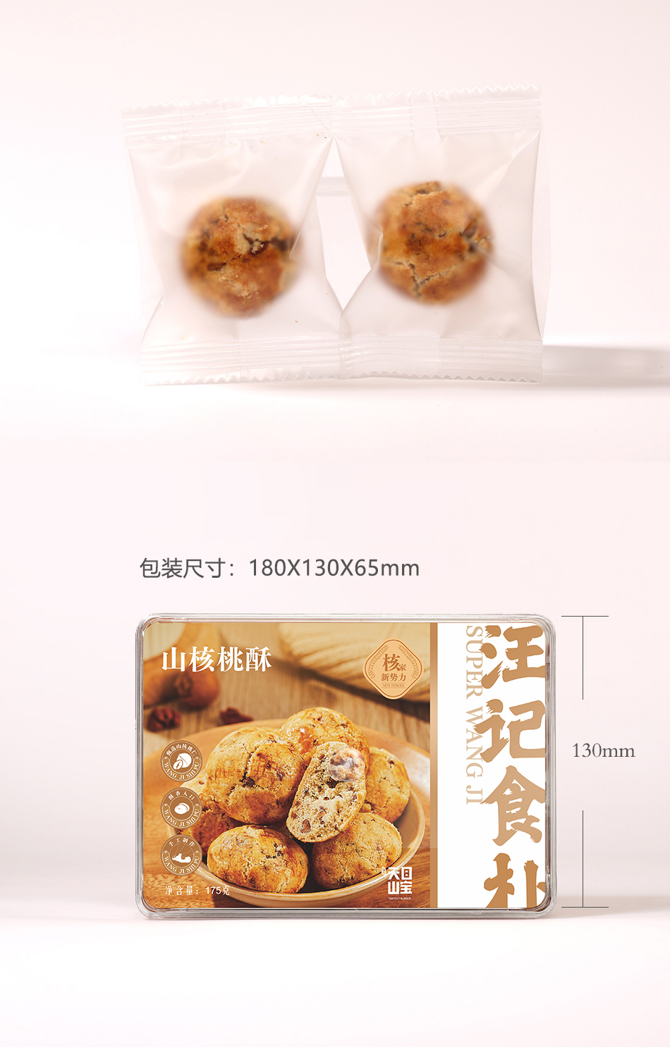 汪记山核桃仁桃酥2盒装