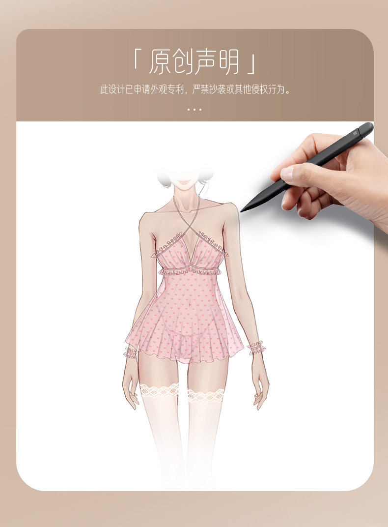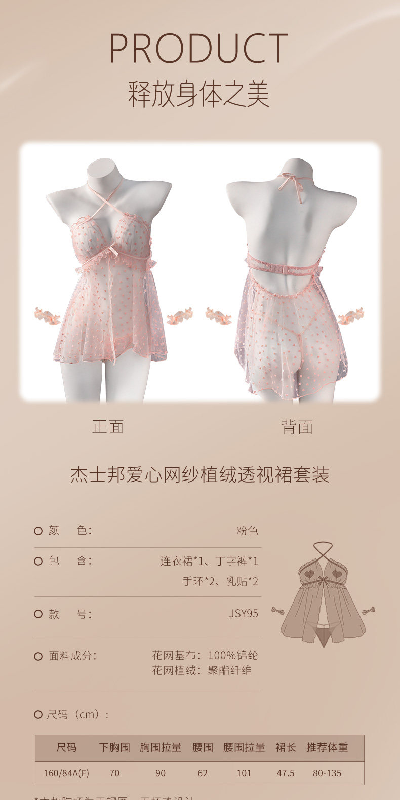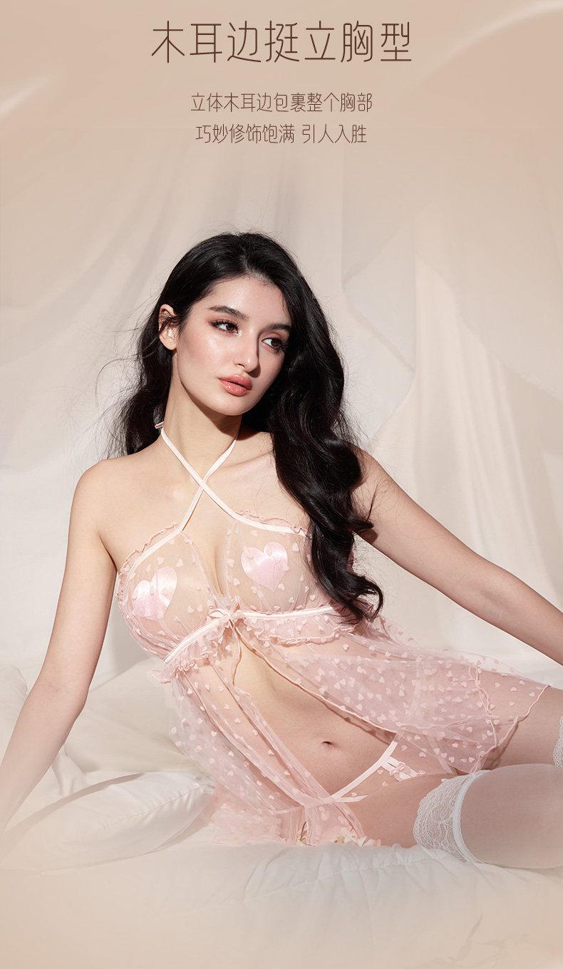 【38节专享】杰士邦爱心网纱植绒透视裙套装