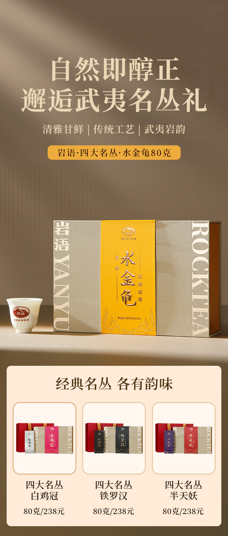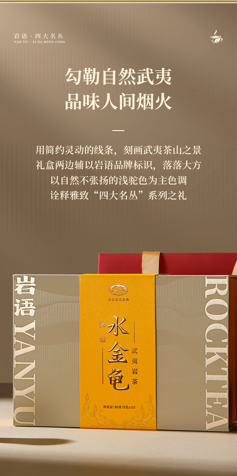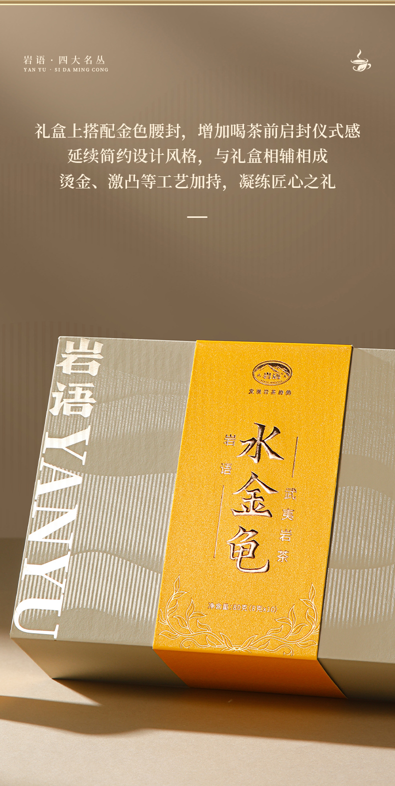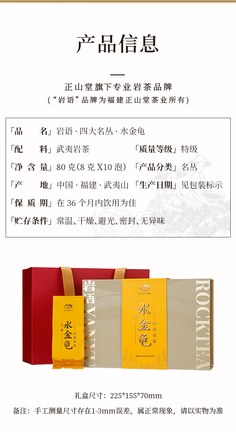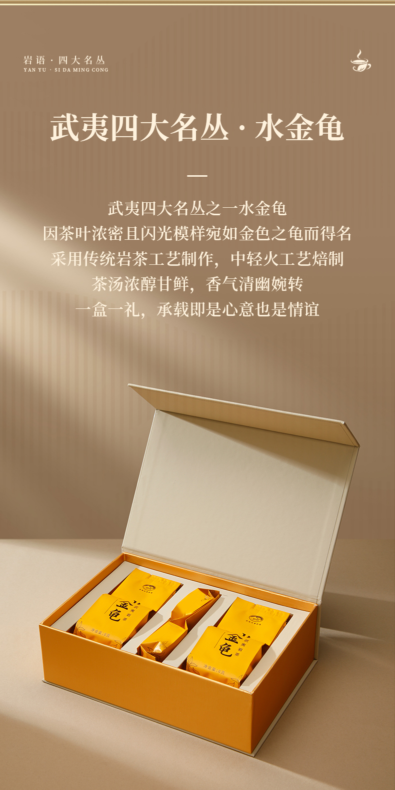 岩语 水金龟礼盒装 武夷岩茶正宗四大名丛特级乌龙茶茶叶送礼80g