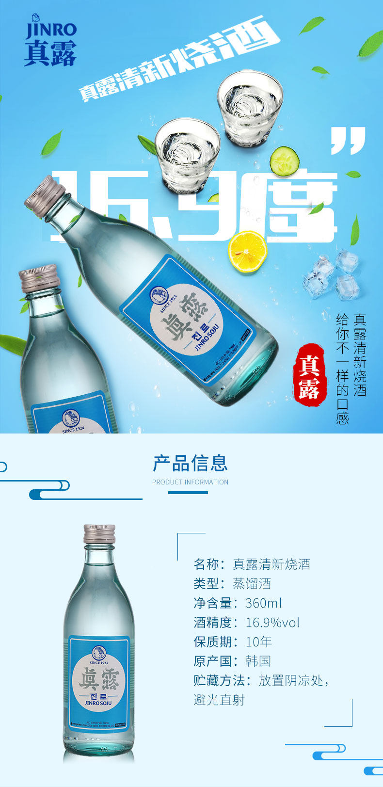 怀旧版真露80版清新烧酒微醺原味蒸馏酒360ml/瓶