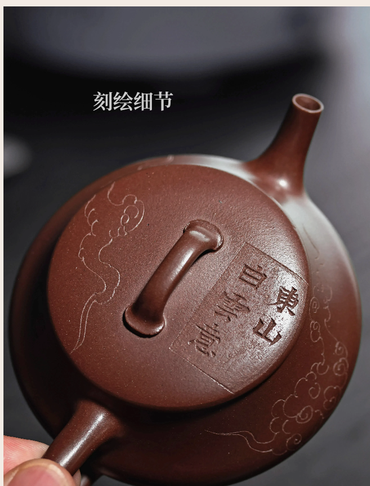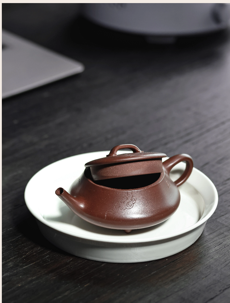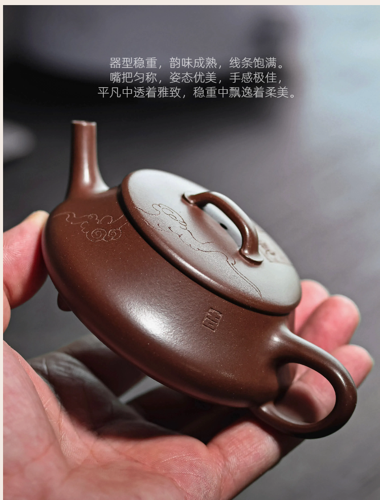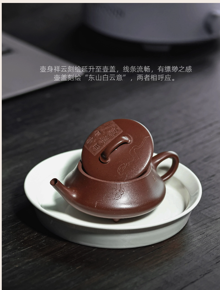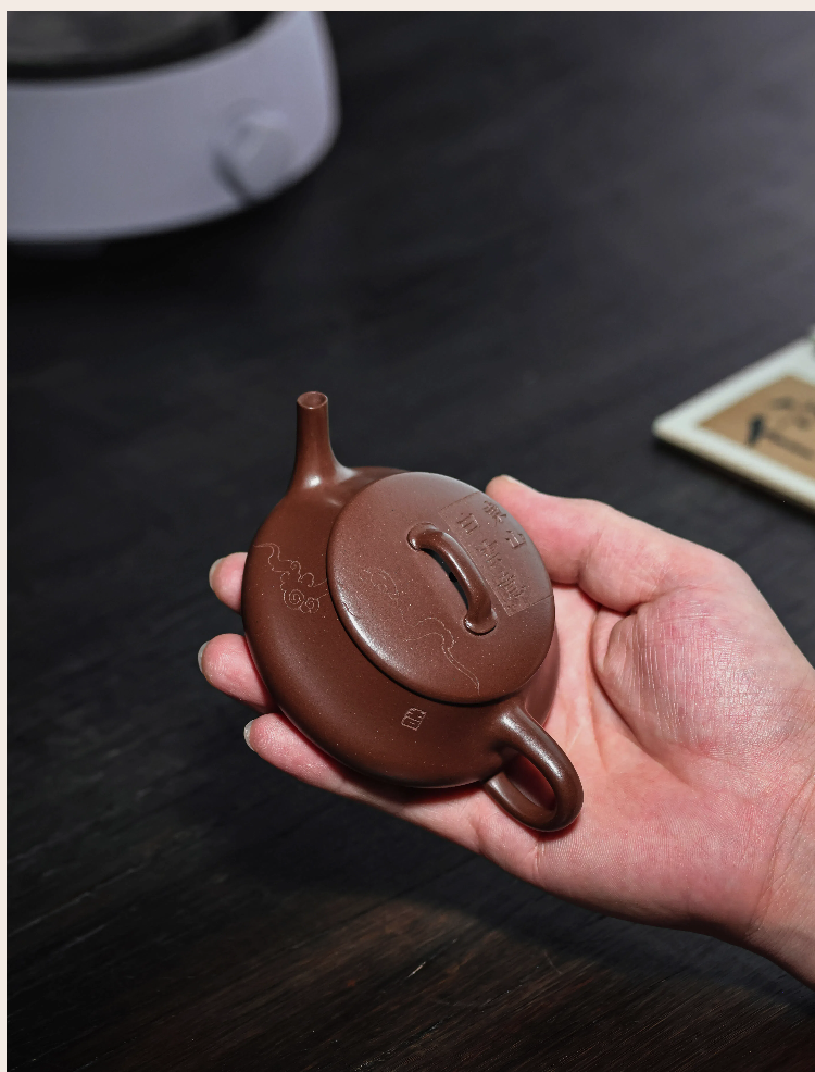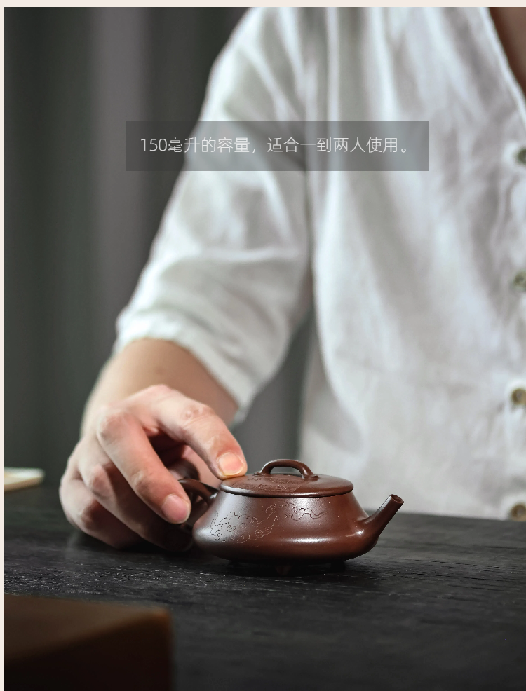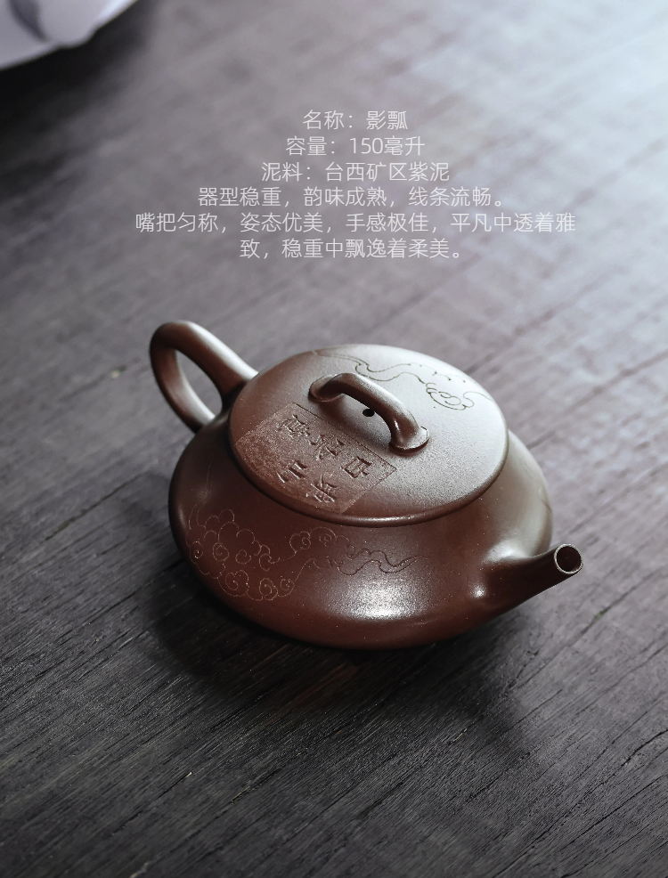 梵匠丨影瓢·白云薏影瓢 宜兴紫砂壶 150CC 紫泥 全手 刻绘
