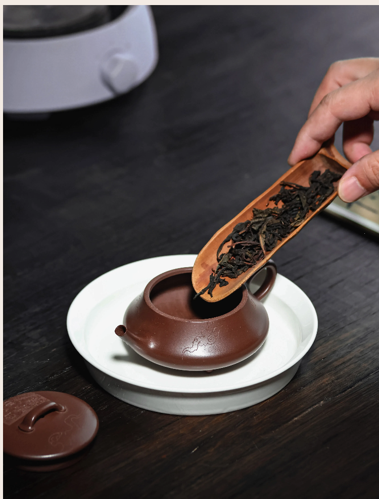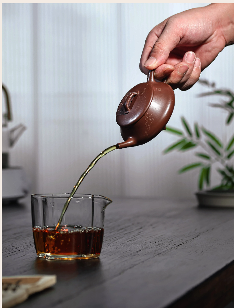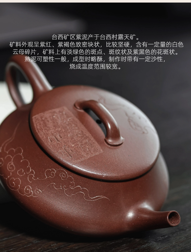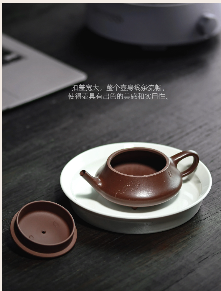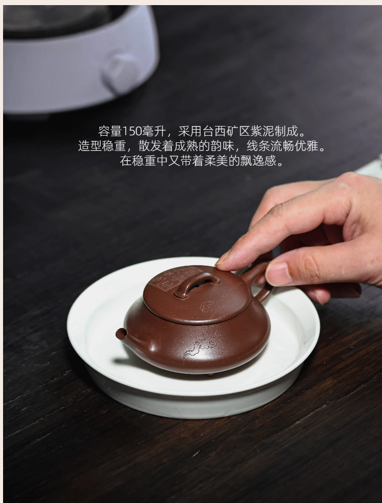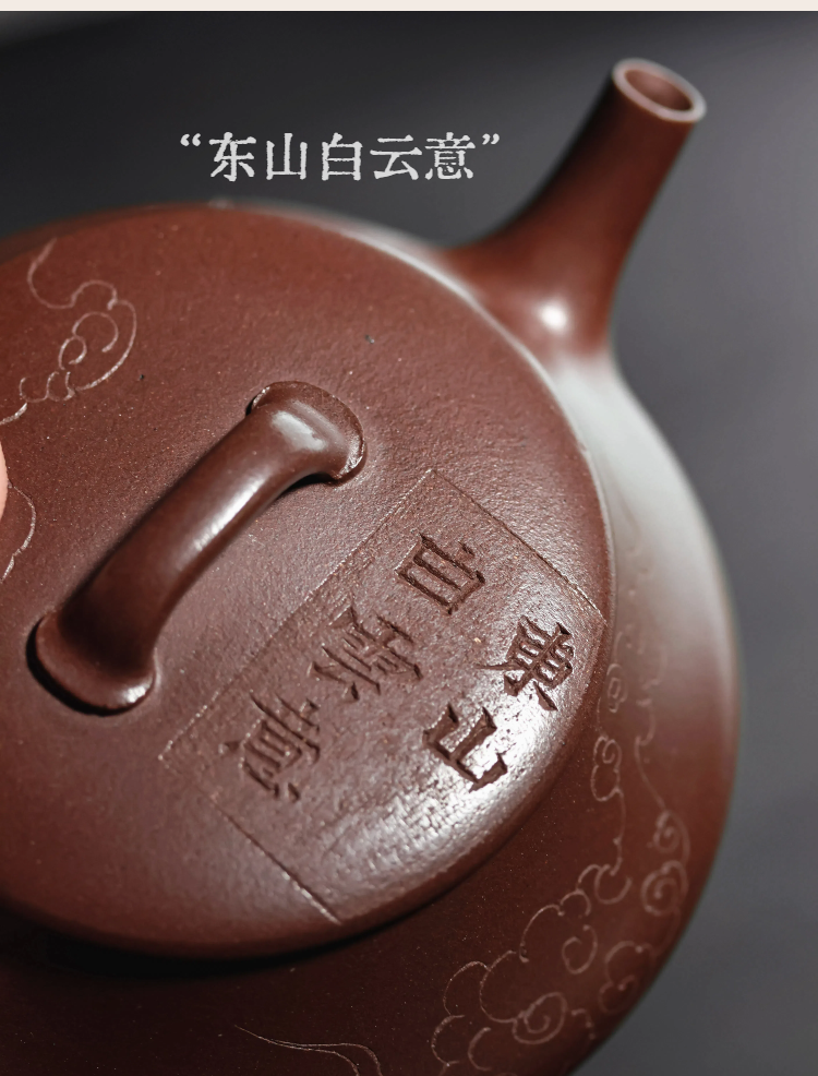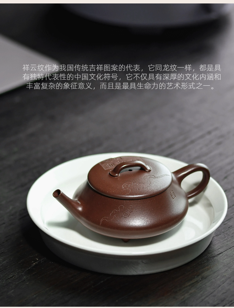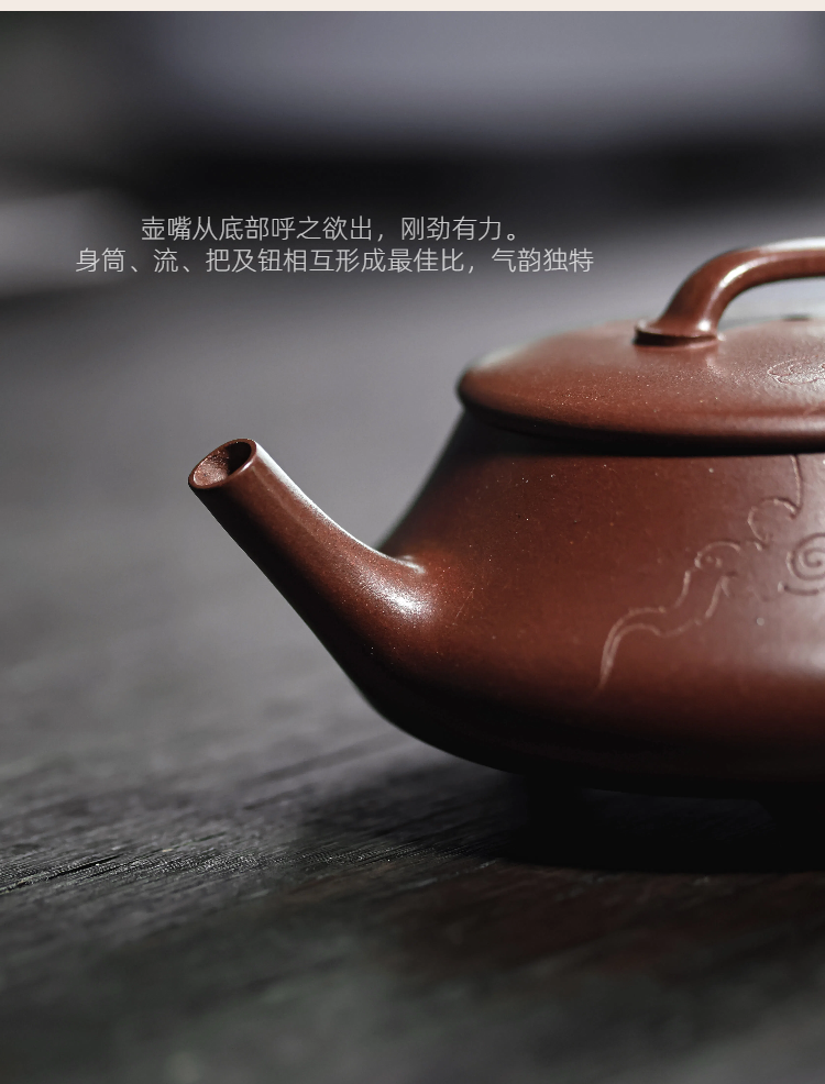 梵匠丨影瓢·白云薏影瓢 宜兴紫砂壶 150CC 紫泥 全手 刻绘