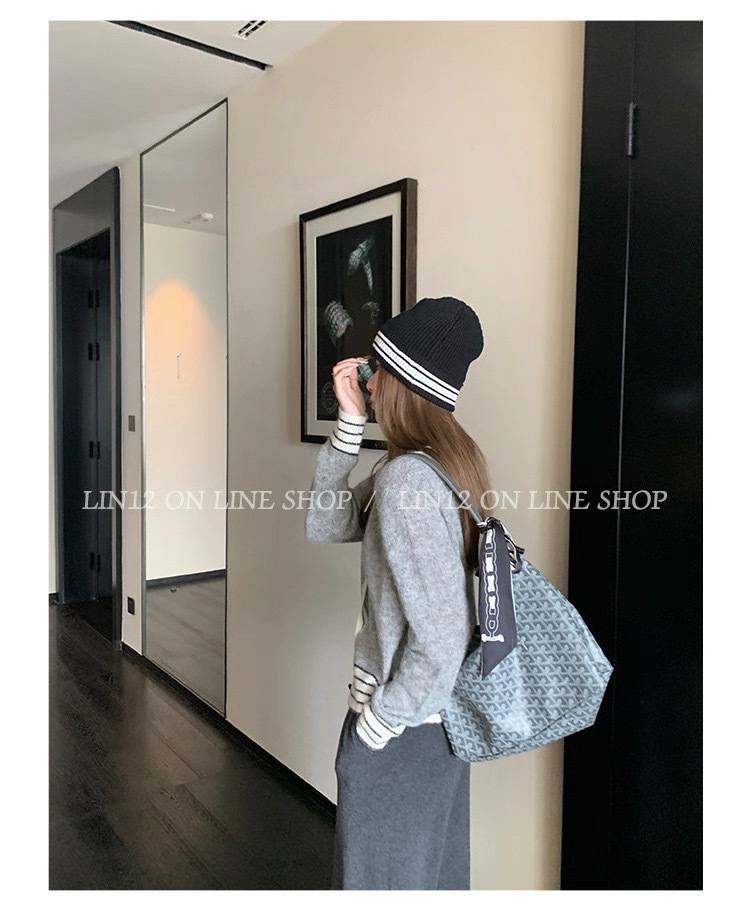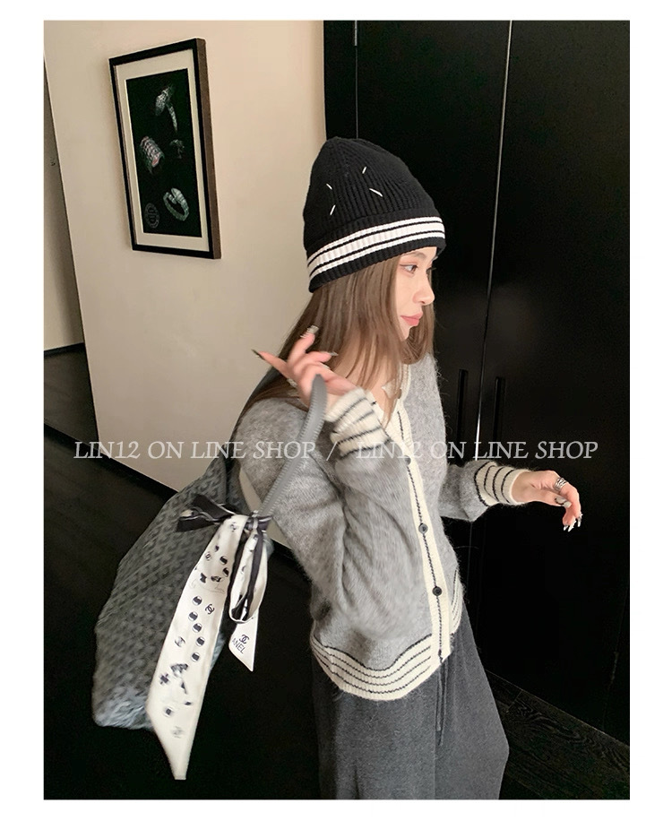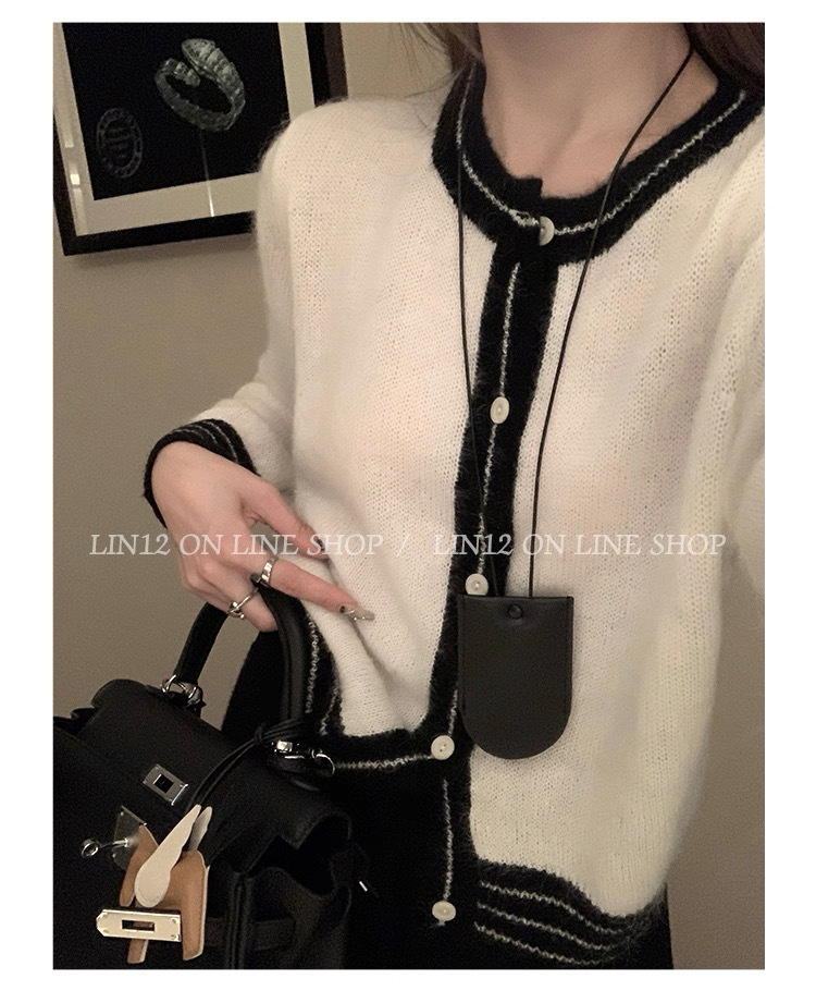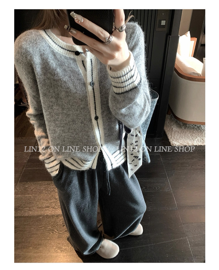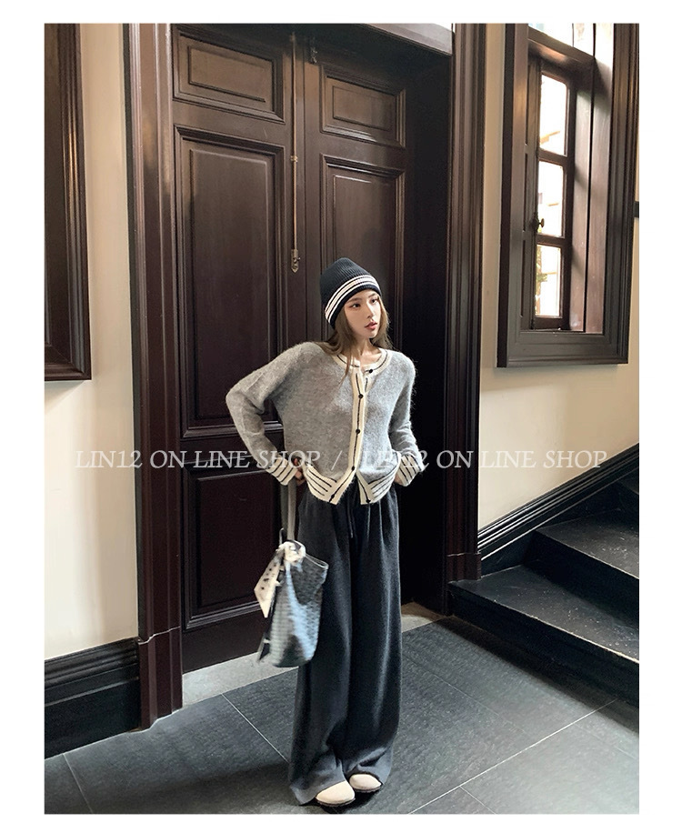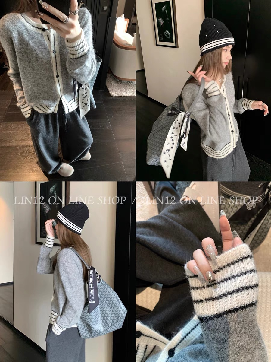 秋冬新款100纯羊毛衫开衫!女圆领撞色慵懒设计感毛衣外套时尚上衣!