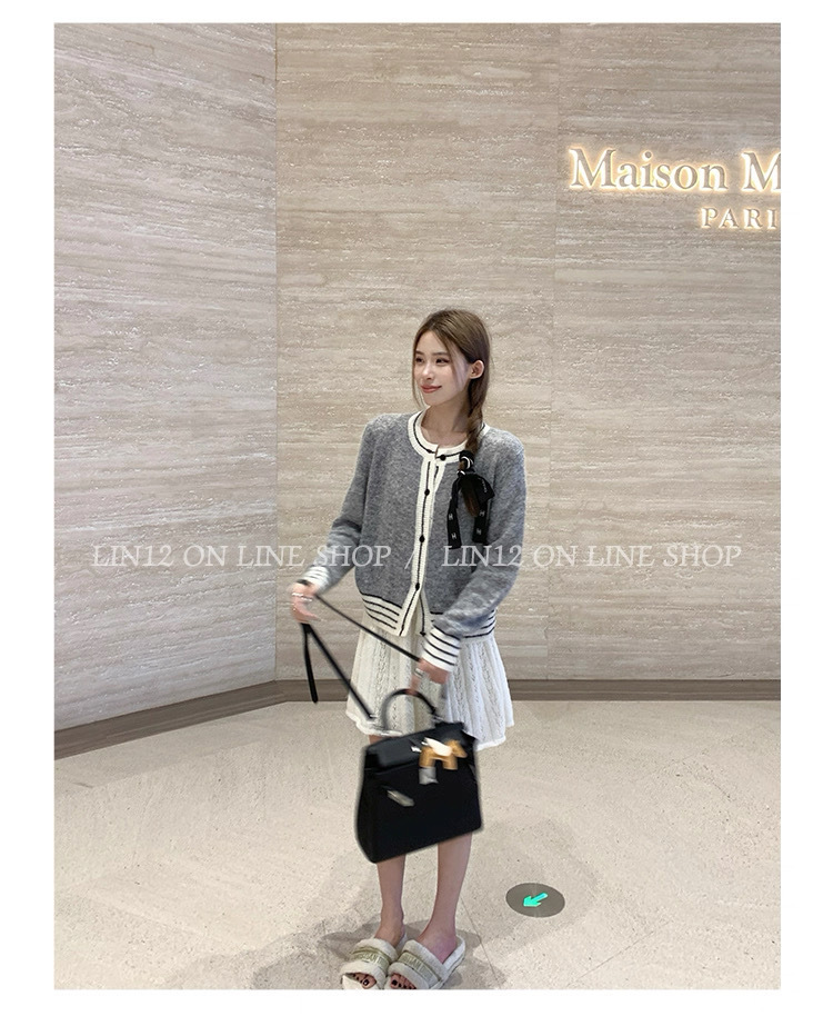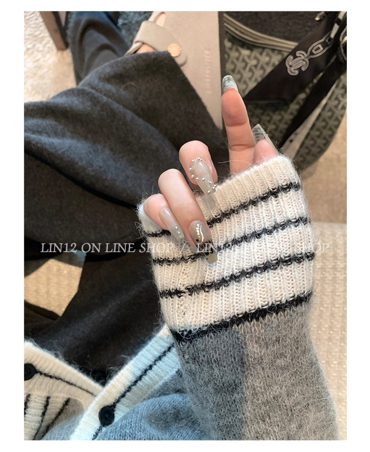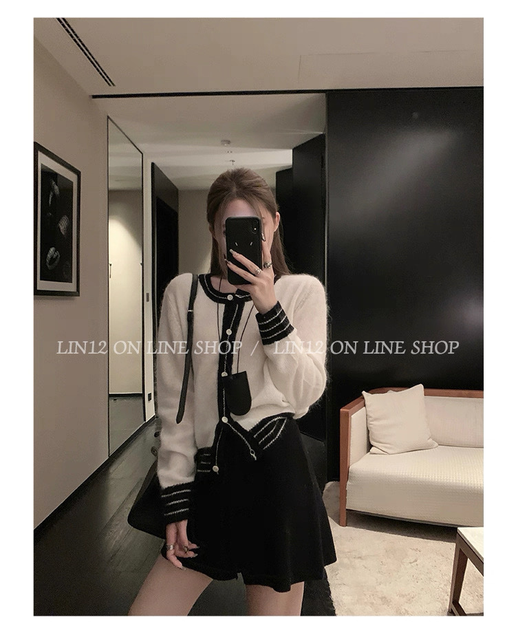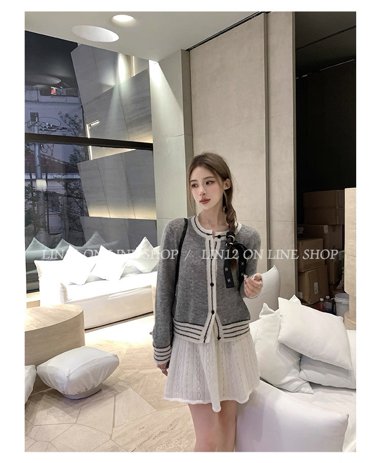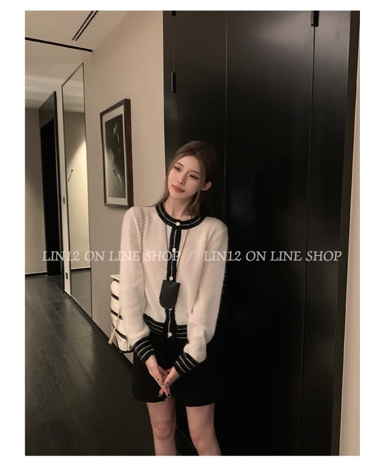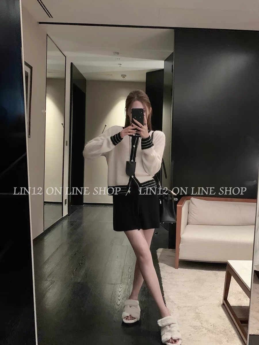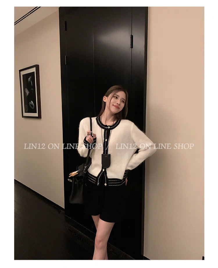 秋冬新款100纯羊毛衫开衫!女圆领撞色慵懒设计感毛衣外套时尚上衣!