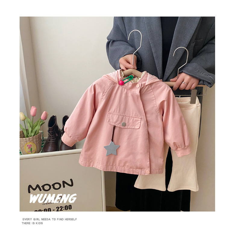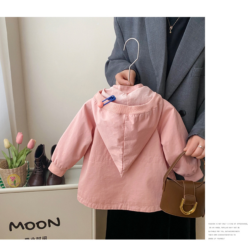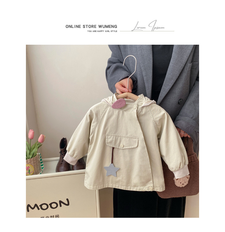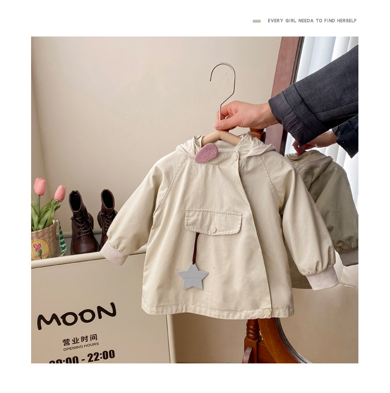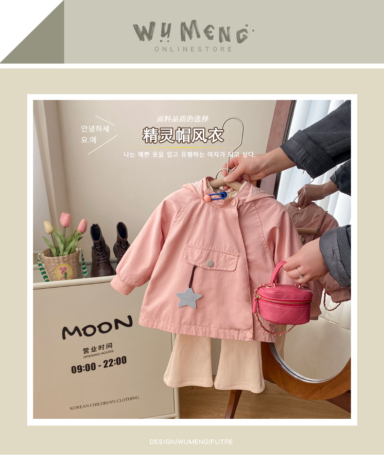 【精灵帽风衣】女童风衣外套春装2024新款韩版儿童洋气中长款女宝宝春秋连帽上衣