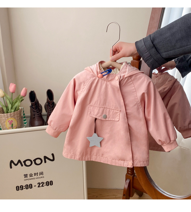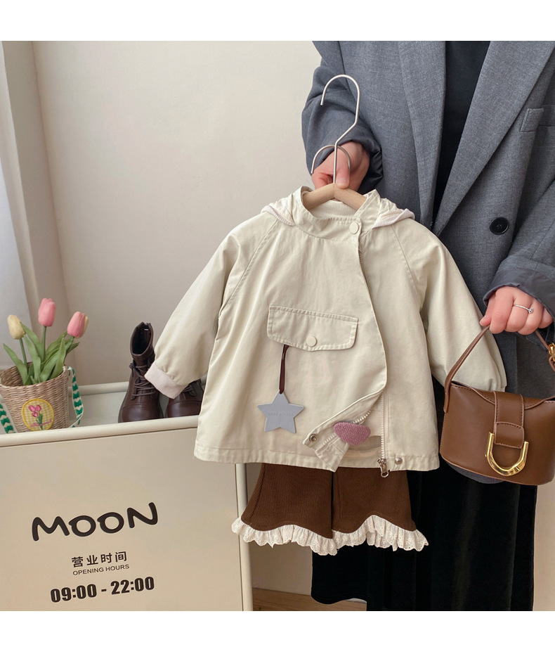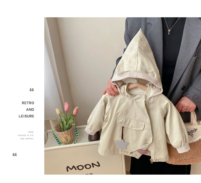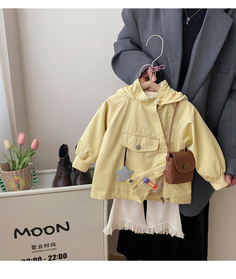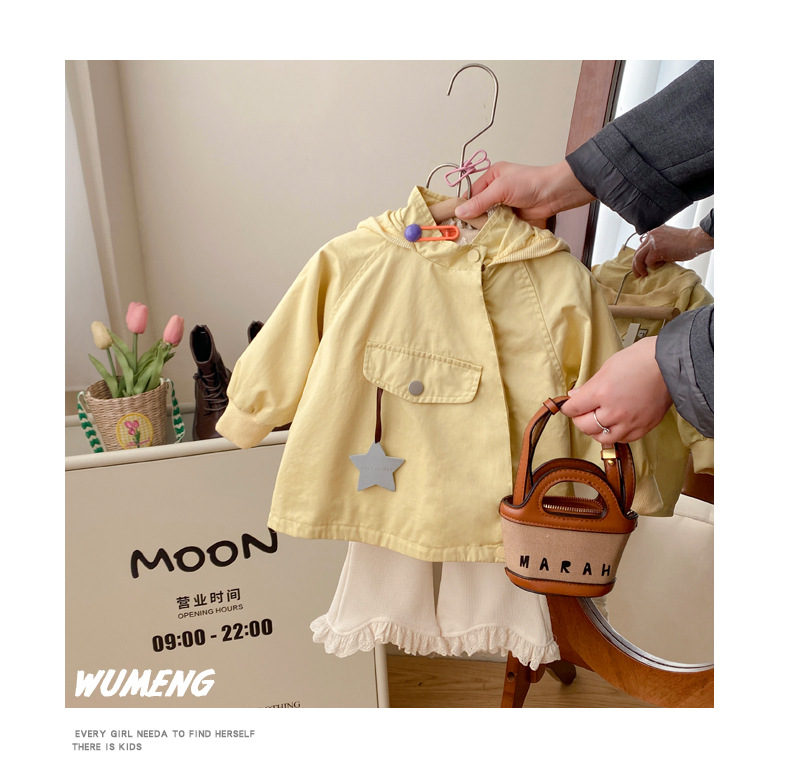 【精灵帽风衣】女童风衣外套春装2024新款韩版儿童洋气中长款女宝宝春秋连帽上衣