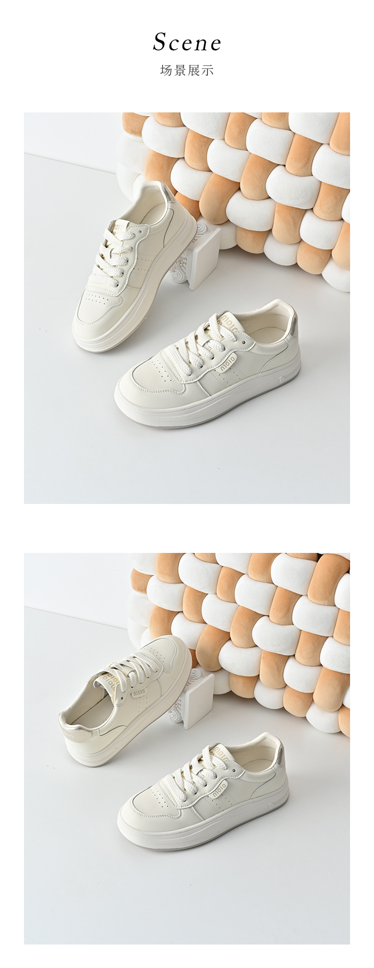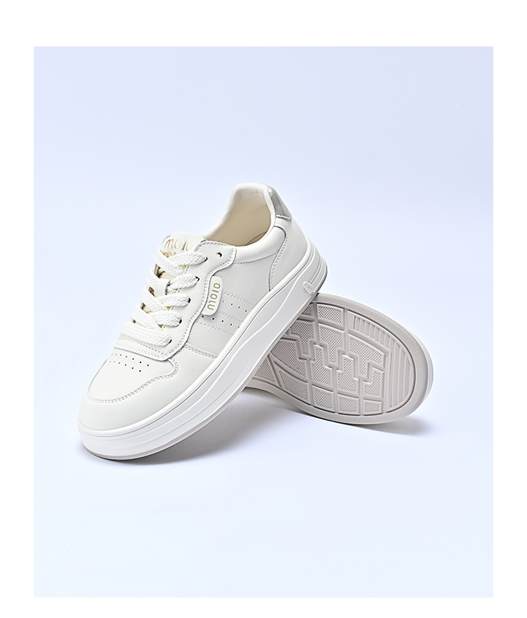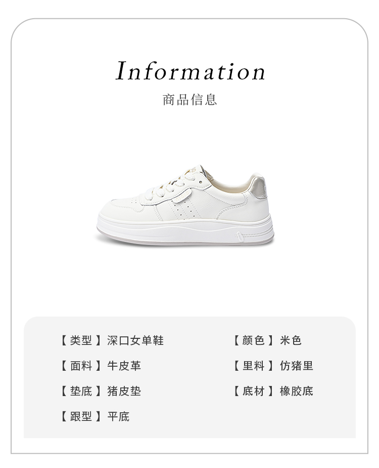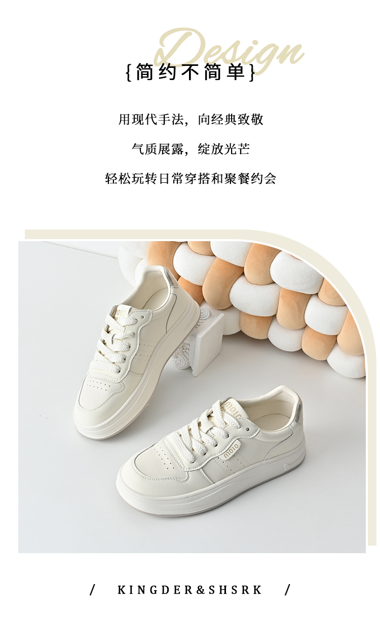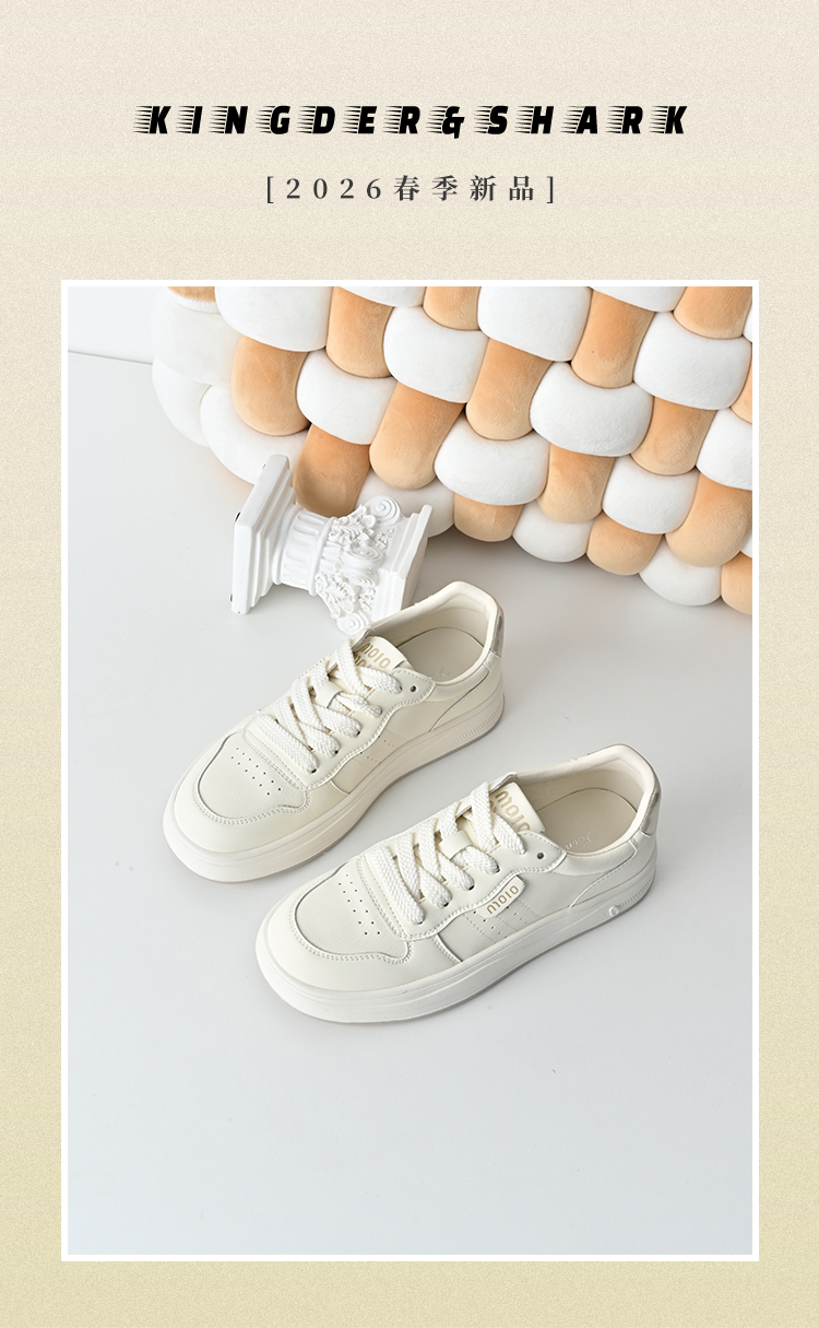 经典鲨2026春专柜新品牛皮革韩版系带平底舒适透气小白鞋女KW160-617071