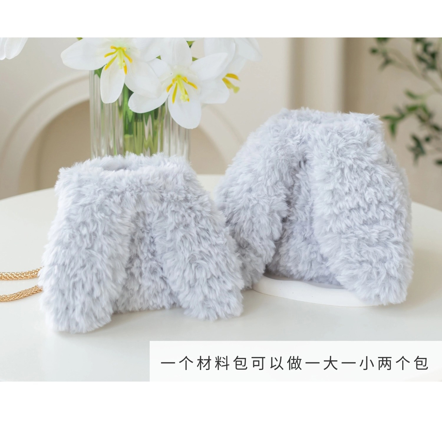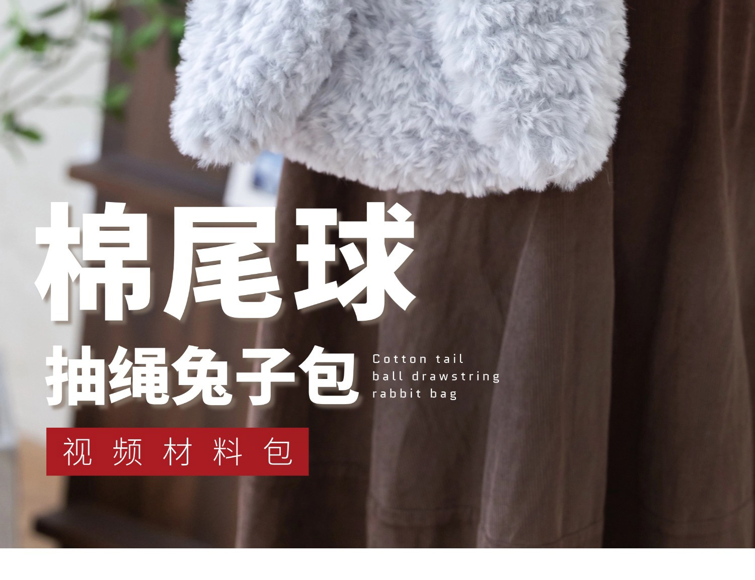 苏苏姐家棉尾球抽绳兔子包手工diy编织钩针毛线团包包自制材料包