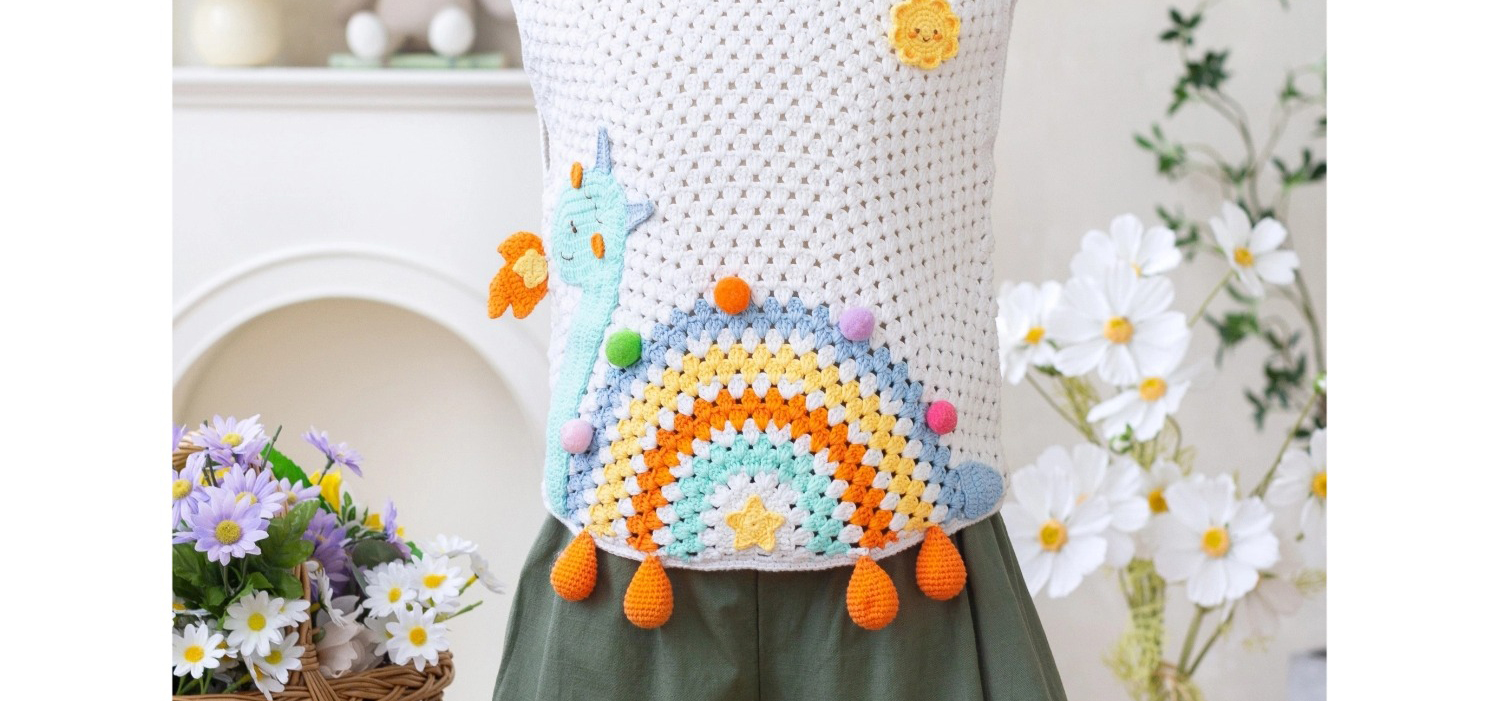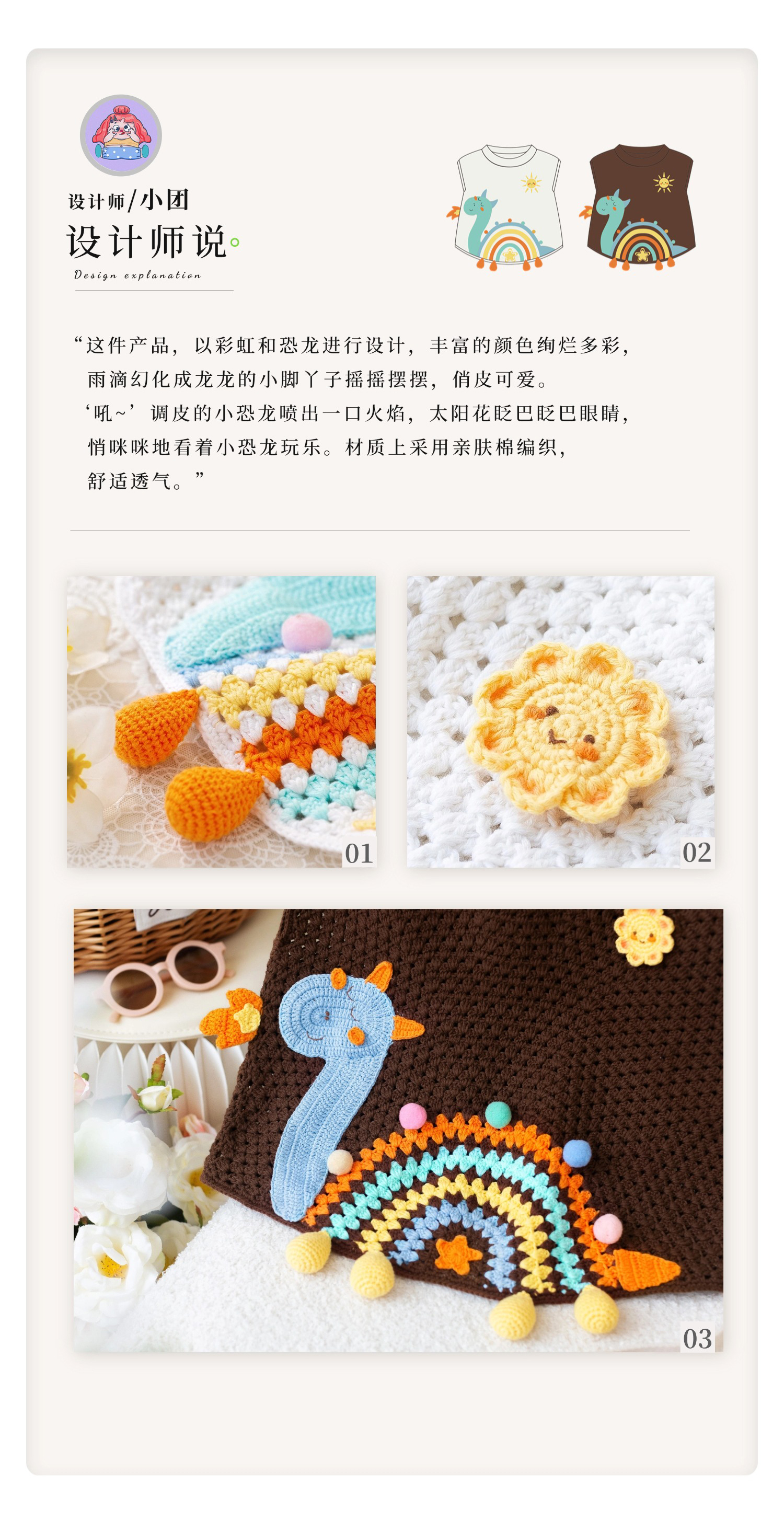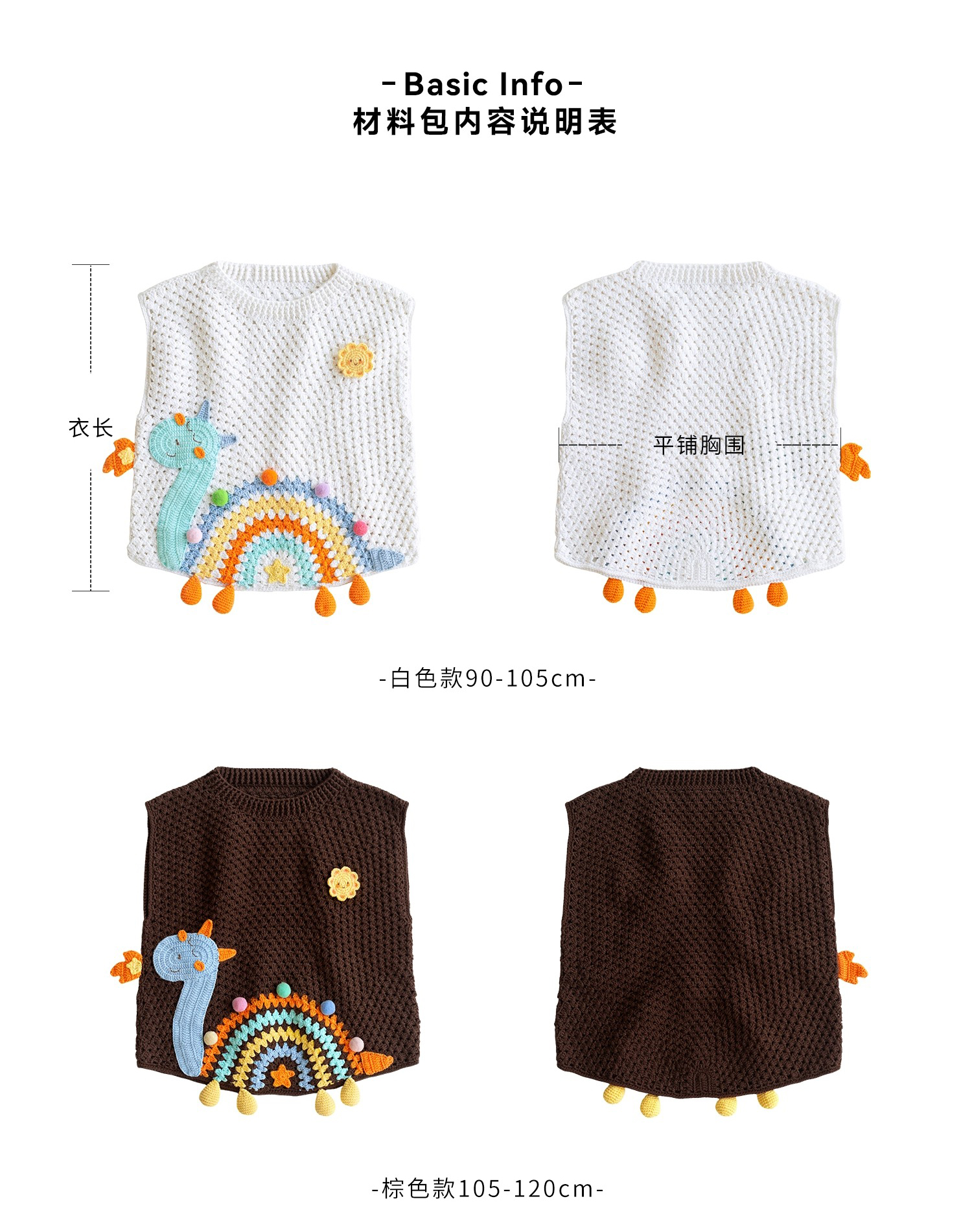 苏苏姐家彩虹恐龙马甲手工编织diy钩针背心自制材料包