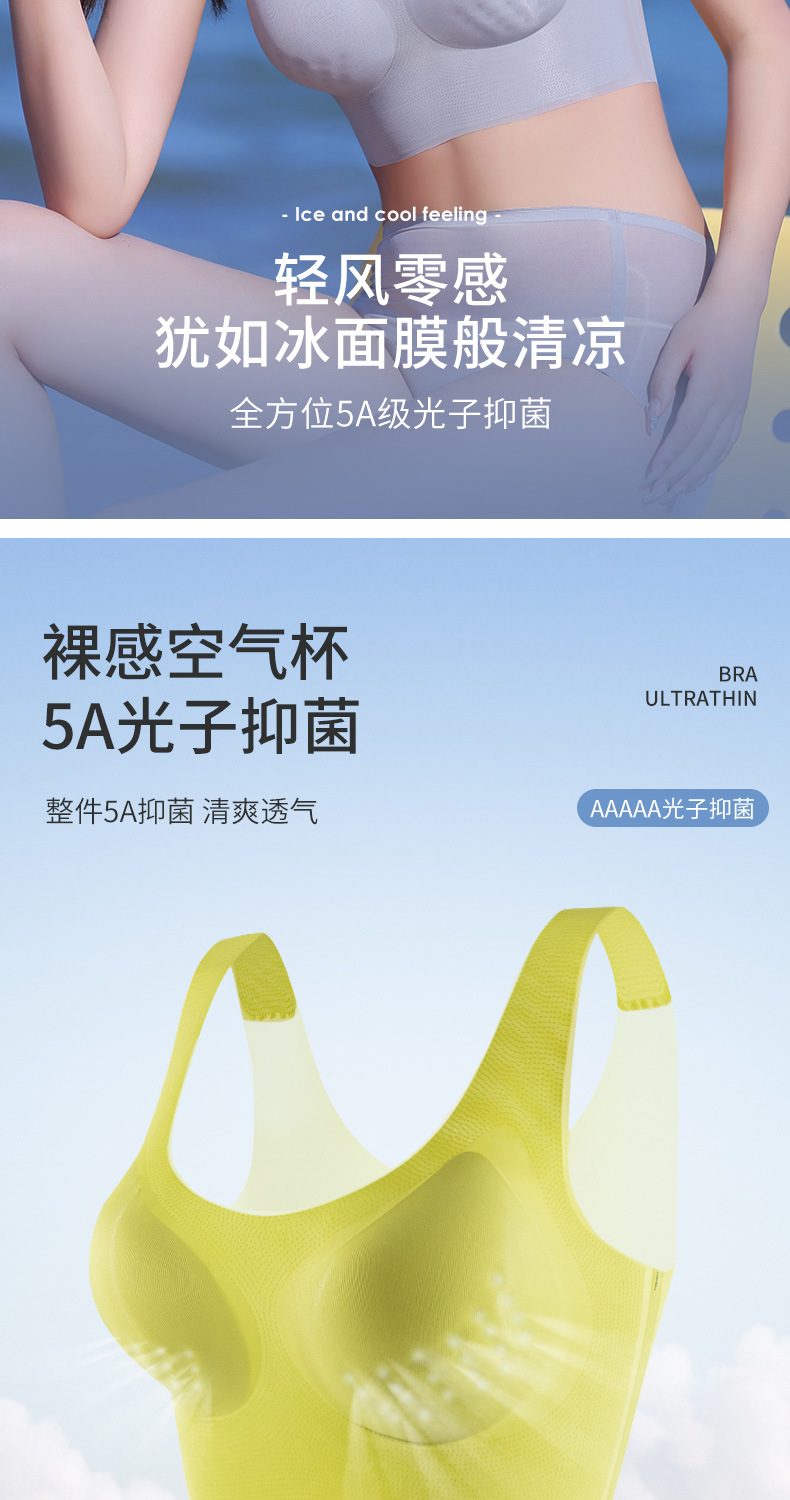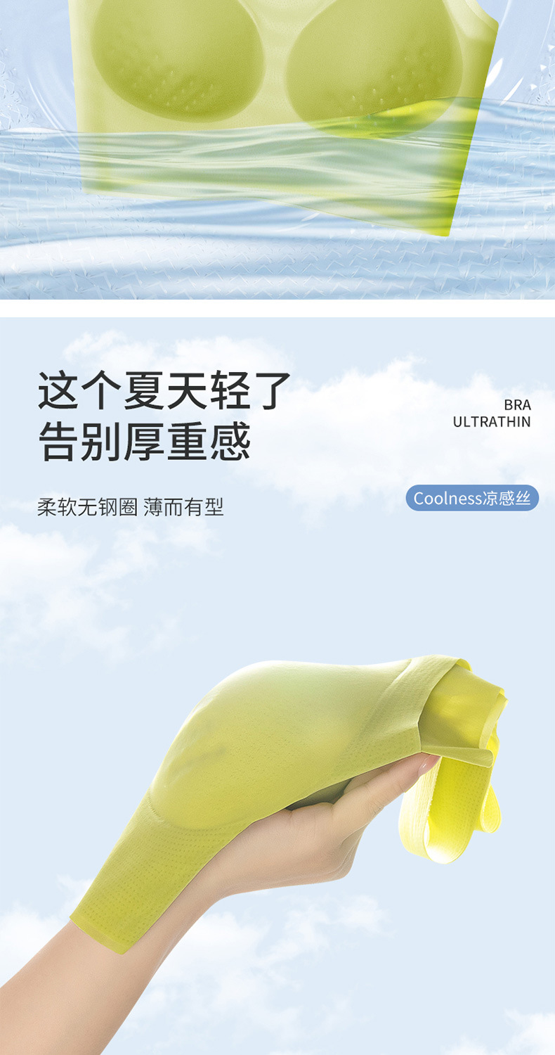 【跟没穿一样自由!8D超薄冰丝无痕美背文胸】凉感会呼吸软软有力量,裸感冰丝凉爽,超薄承托,薄而不漏点, 代替传统钢圈薄透小轻风,固定杯女内衣夏季女士内衣