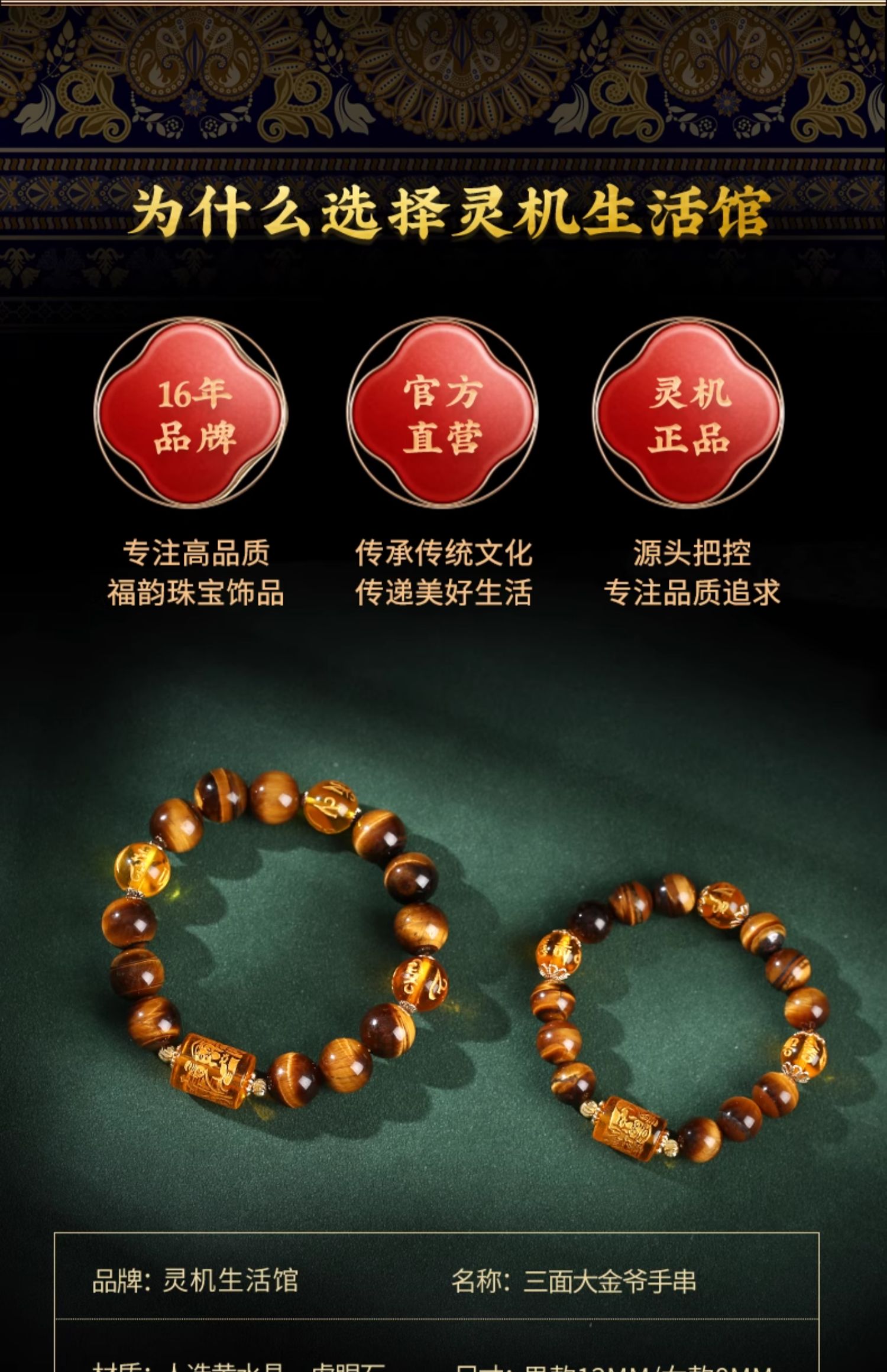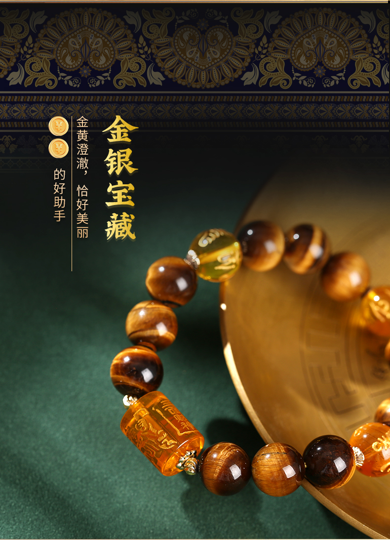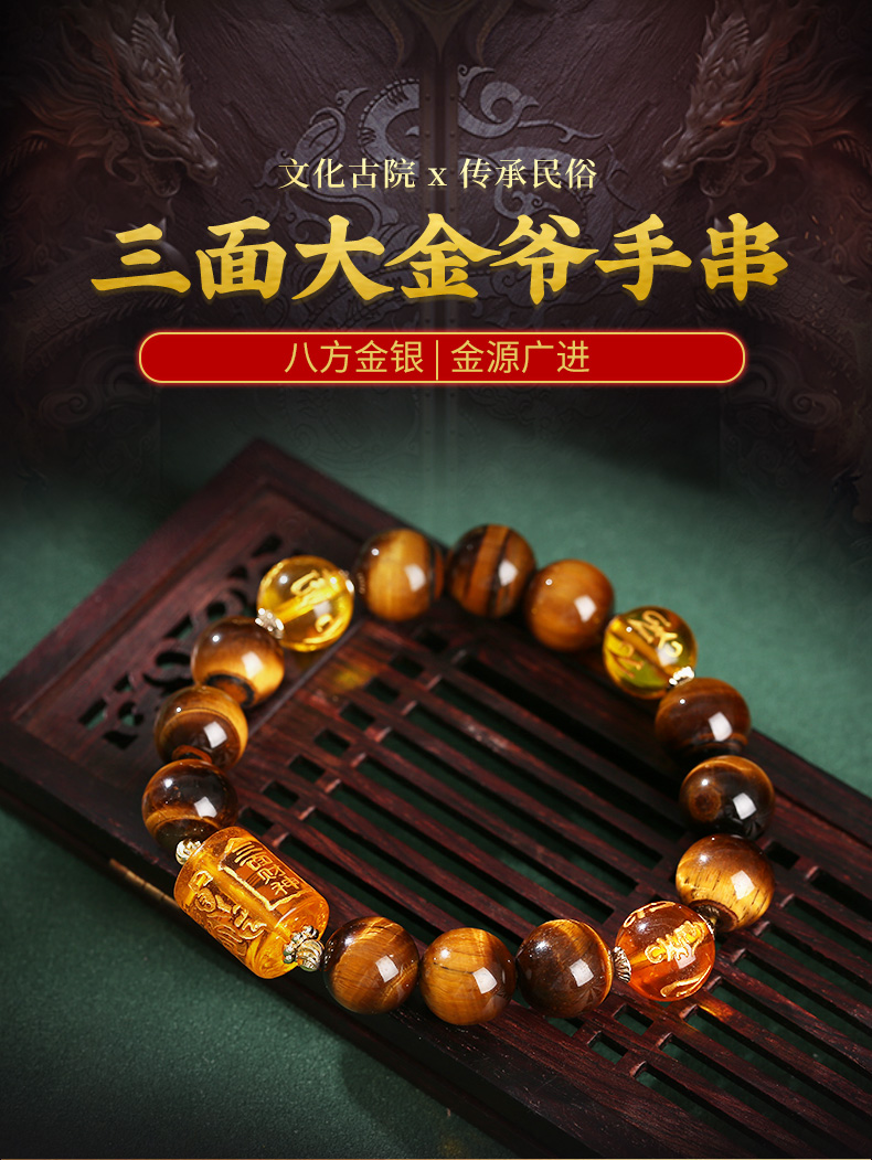 【祈愿吉品】三面爷虎眼石手串-黑曜石六字真言大黑天手链