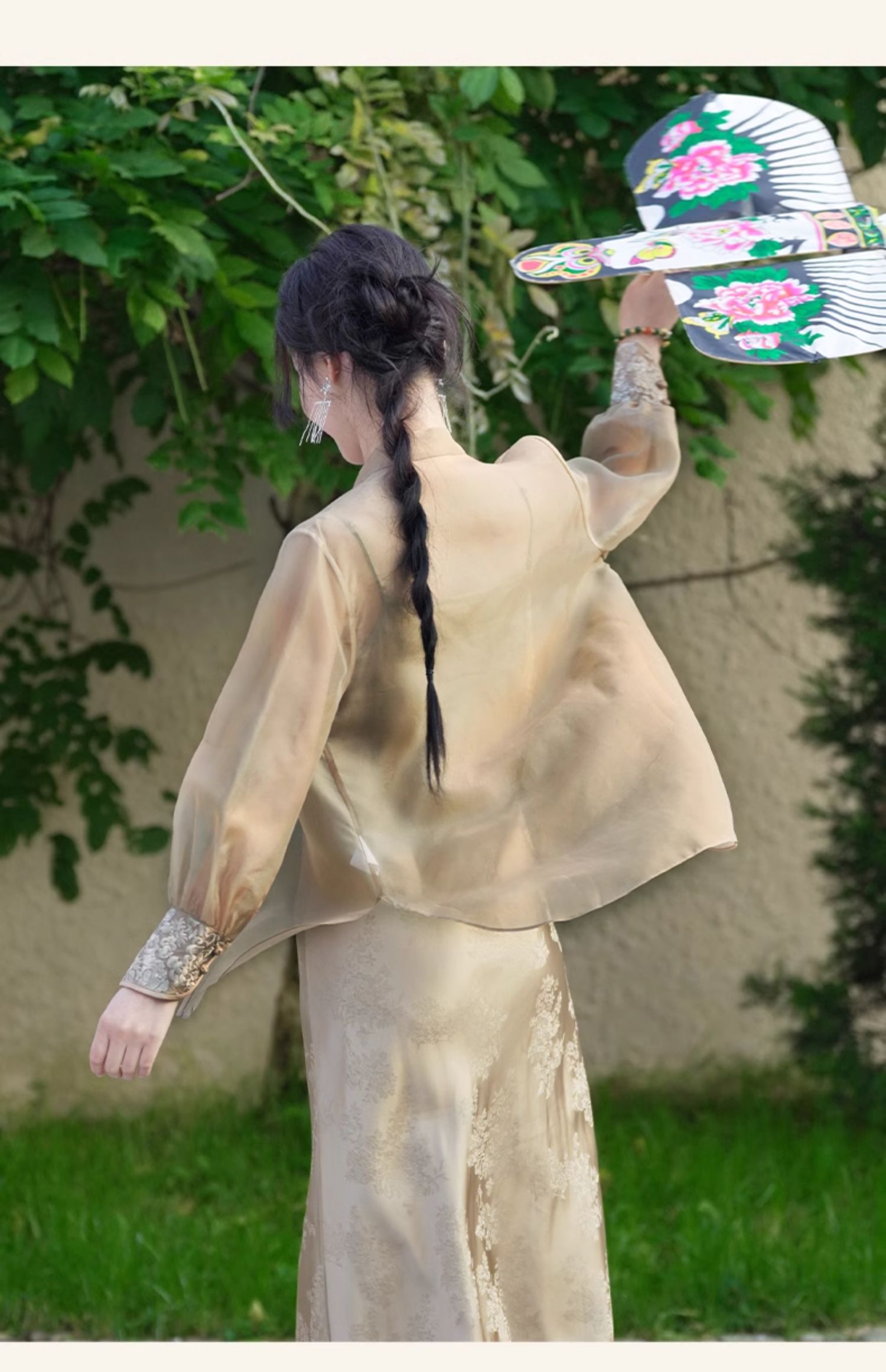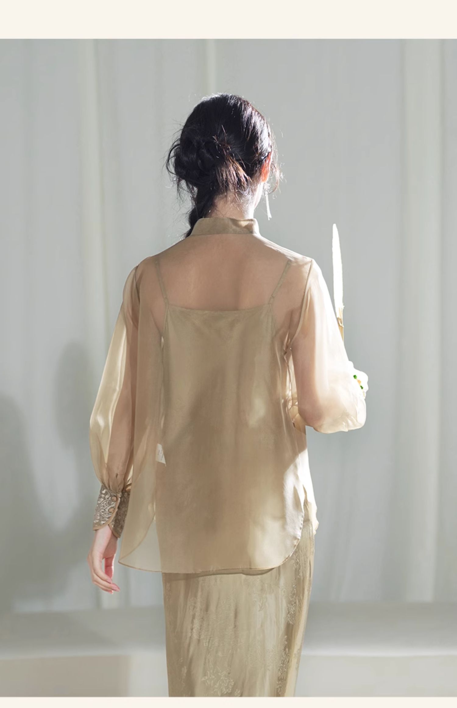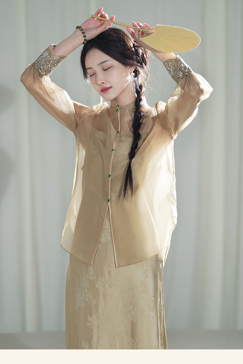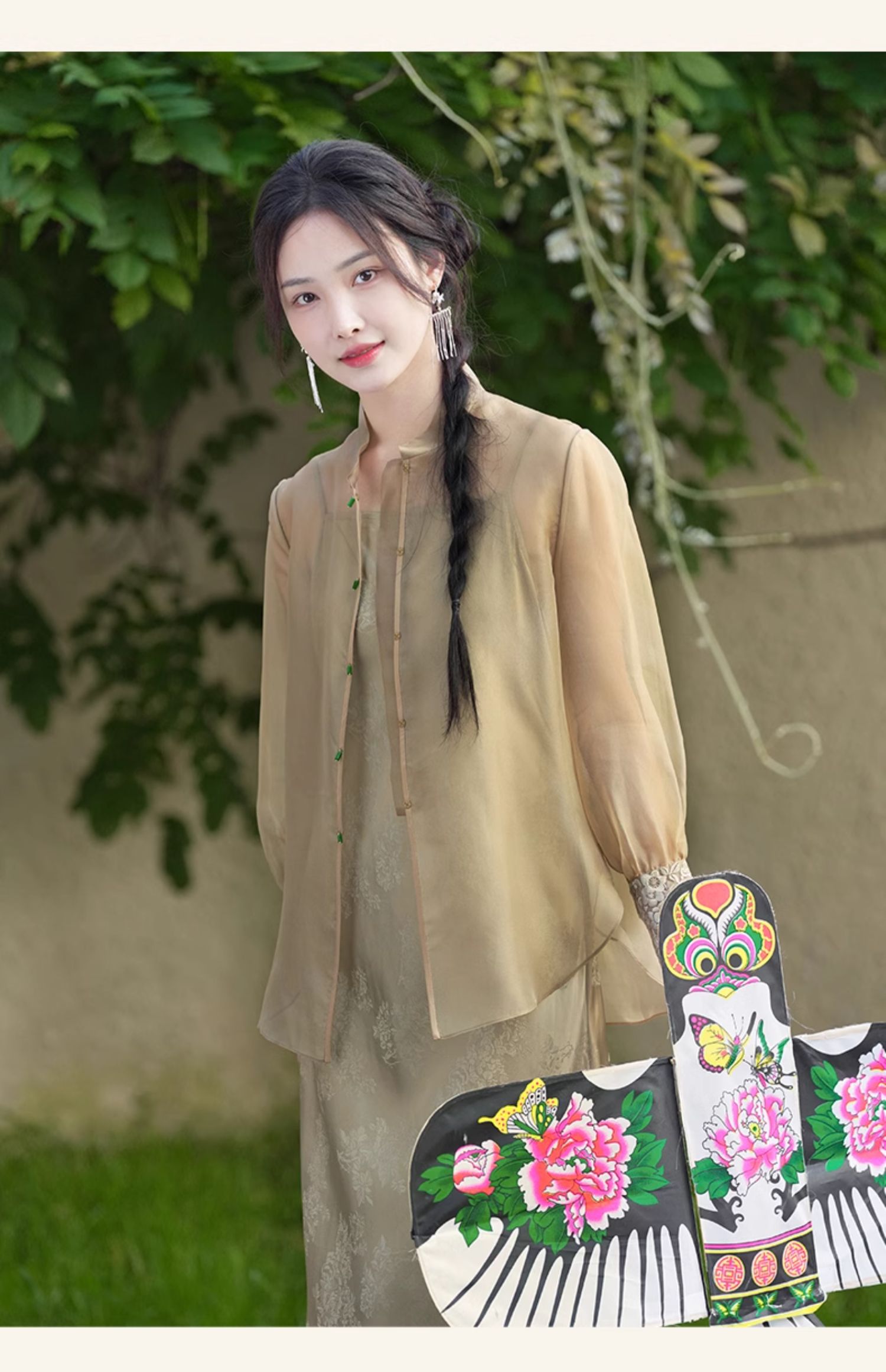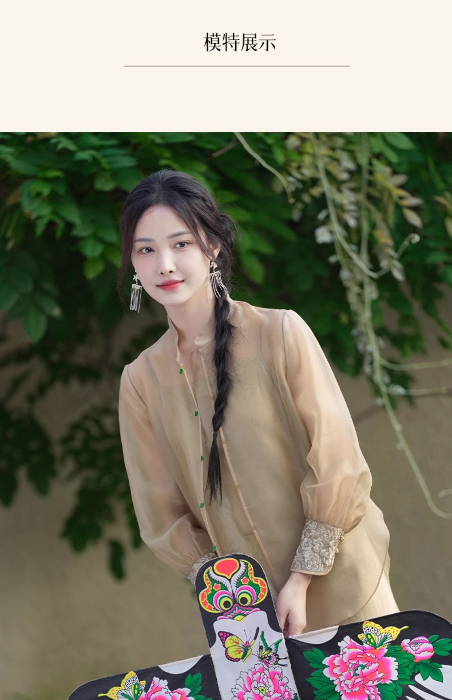 上海逸红颜毓语2025年春装新品真丝欧根纱新中式通勤上衣外套女