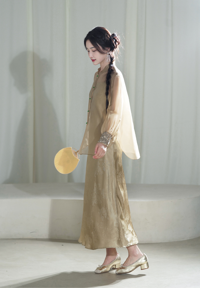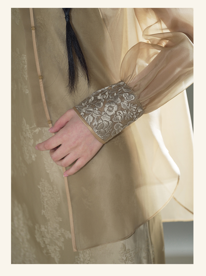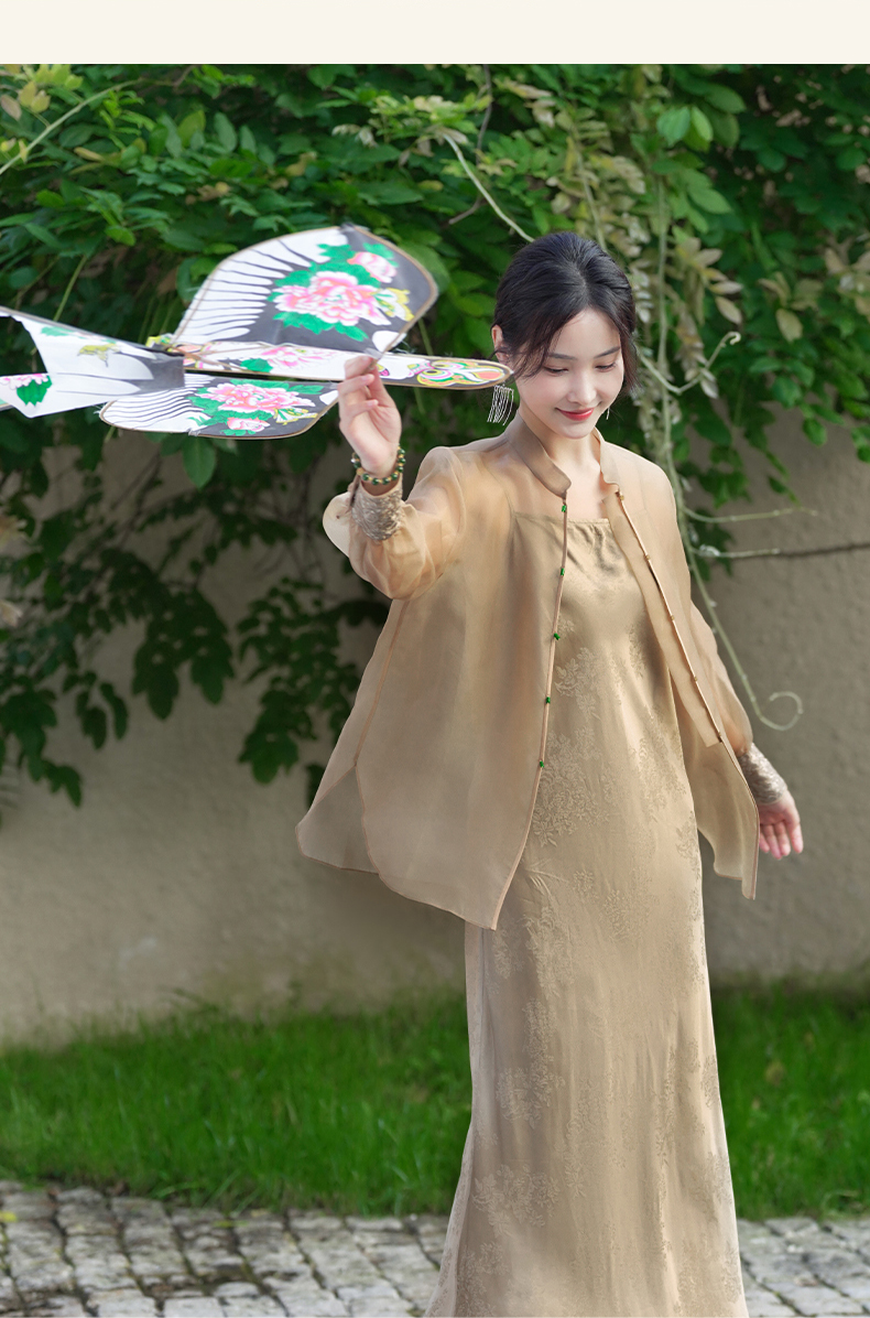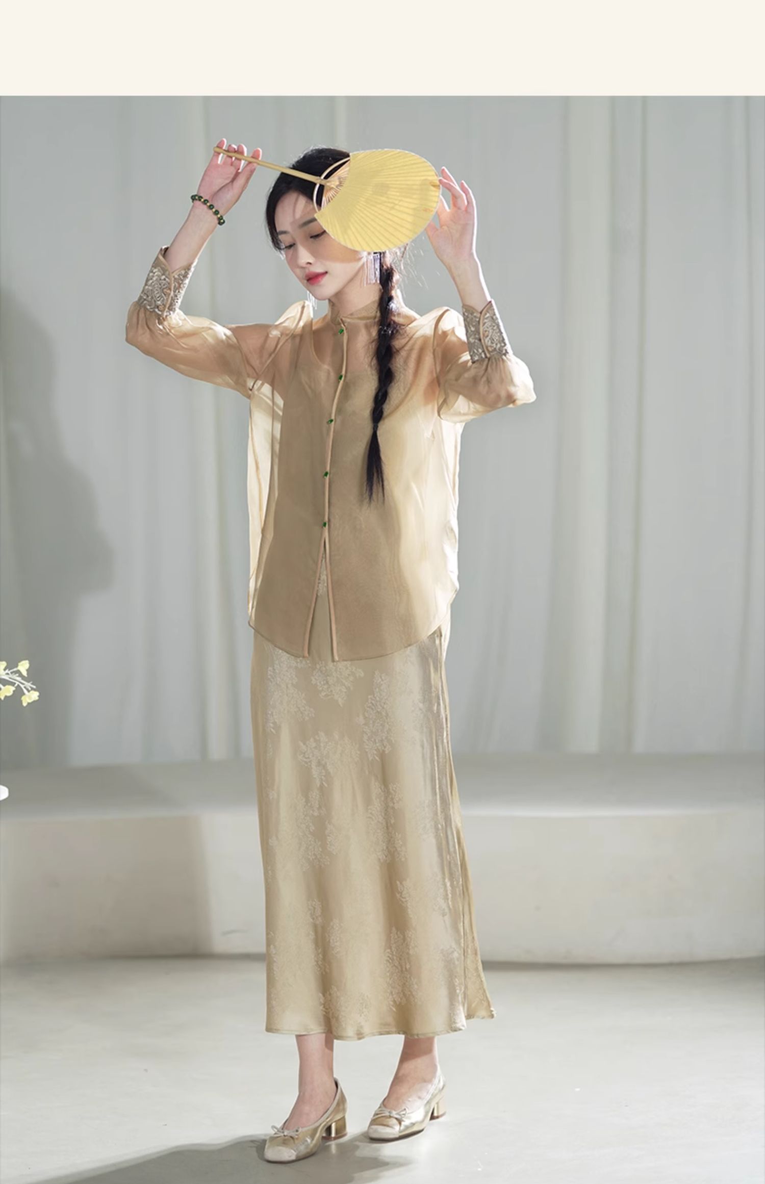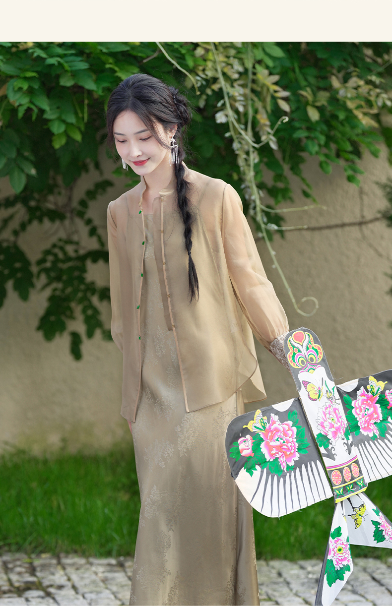上海逸红颜毓语2025年春装新品真丝欧根纱新中式通勤上衣外套女