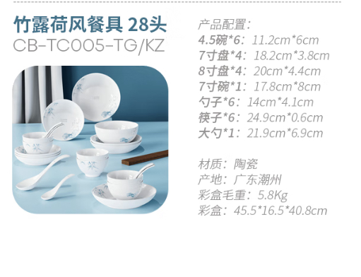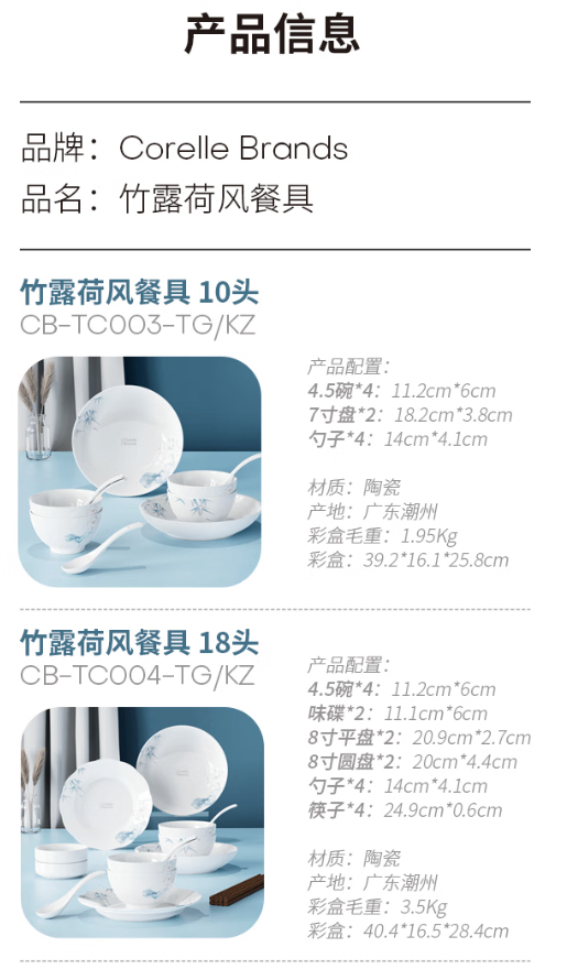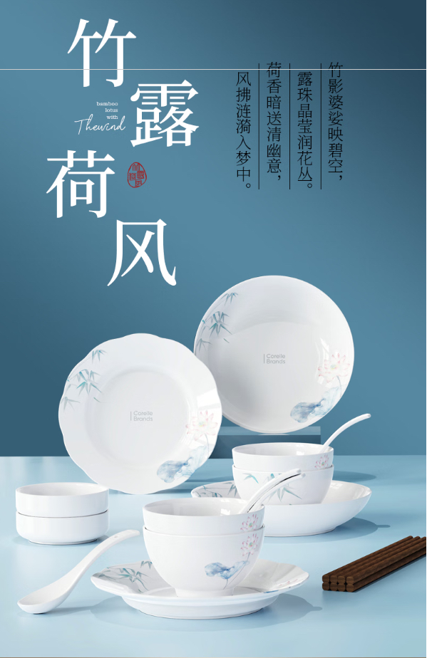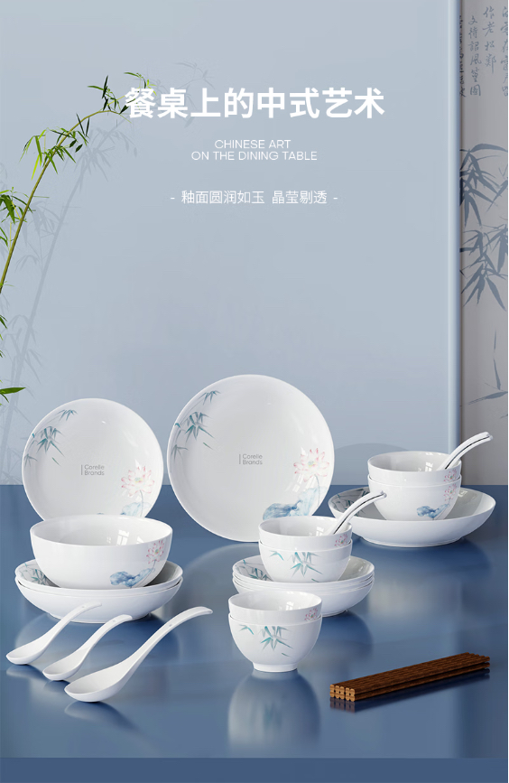 康宁竹露荷风餐具10头/18头/28头