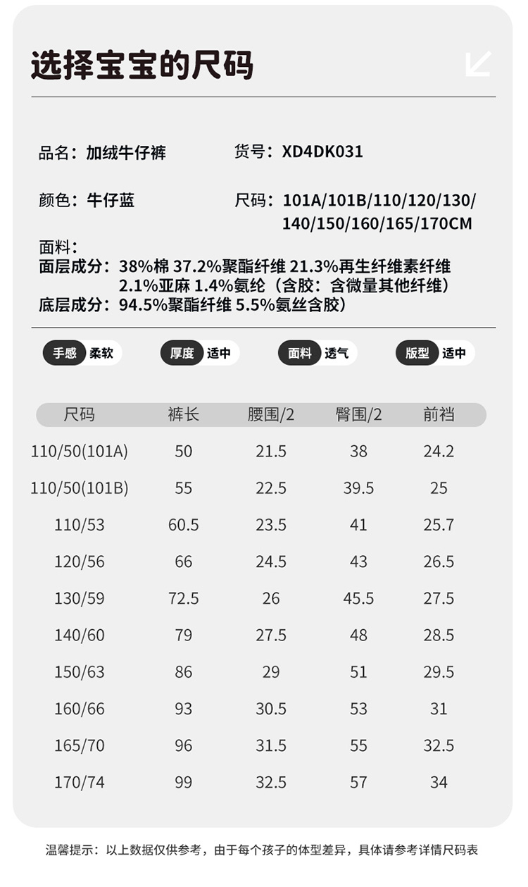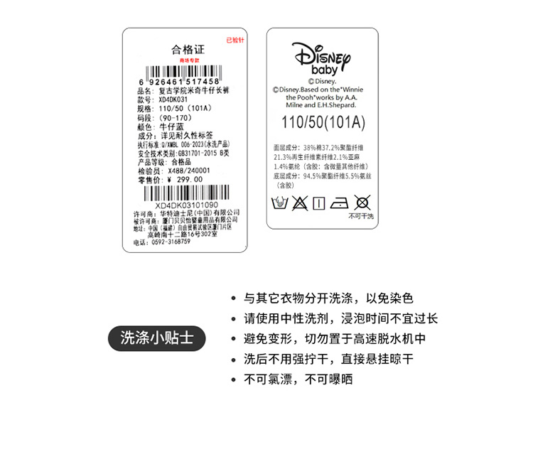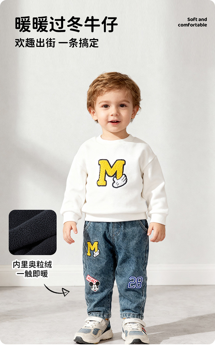 迪士尼男童冬款加绒牛仔长裤XD4DK031