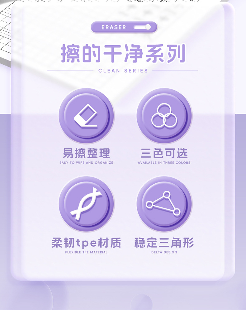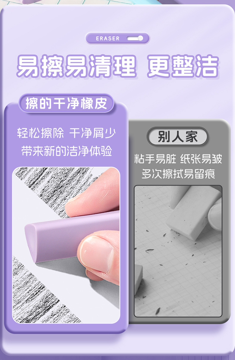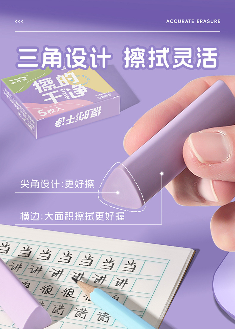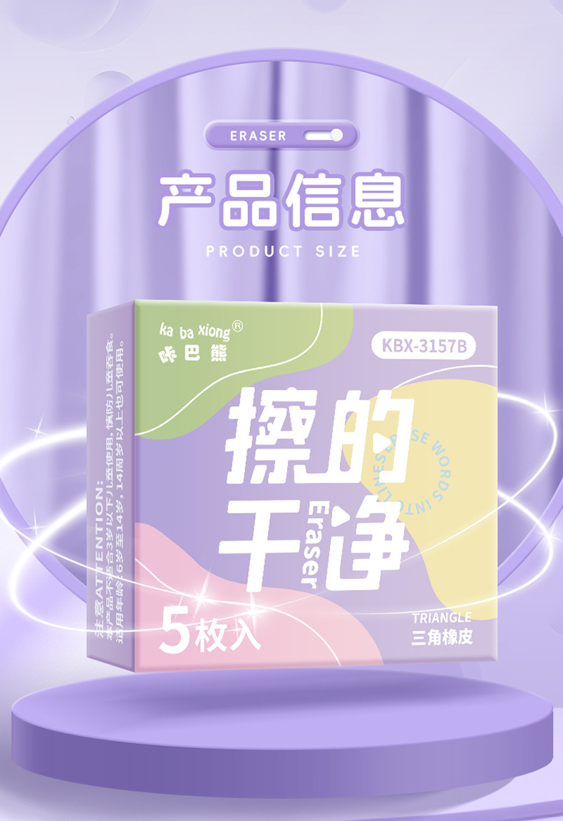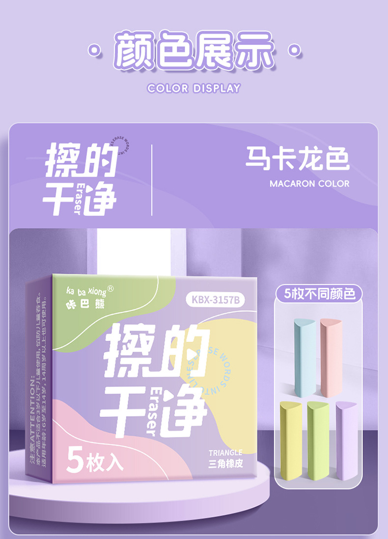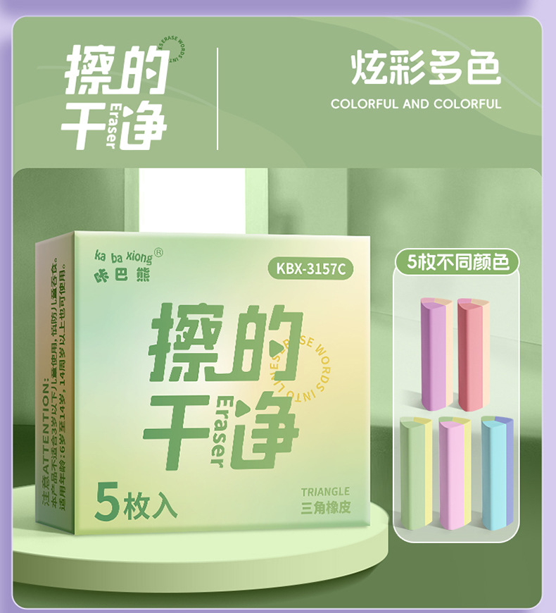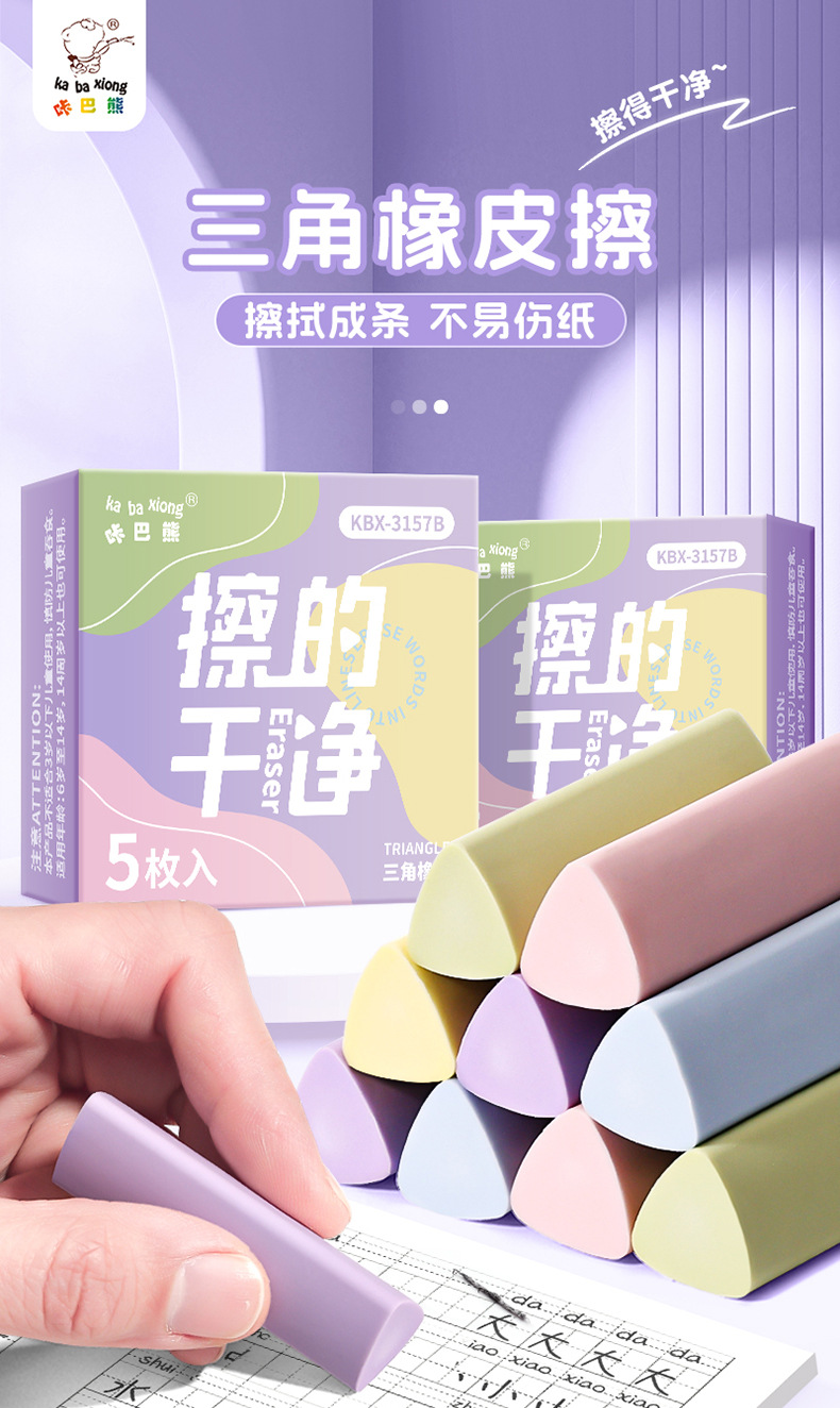 咔巴熊集屑三角橡皮擦小学生专用无屑超干净聚屑成线擦拭成条橡皮 1枚