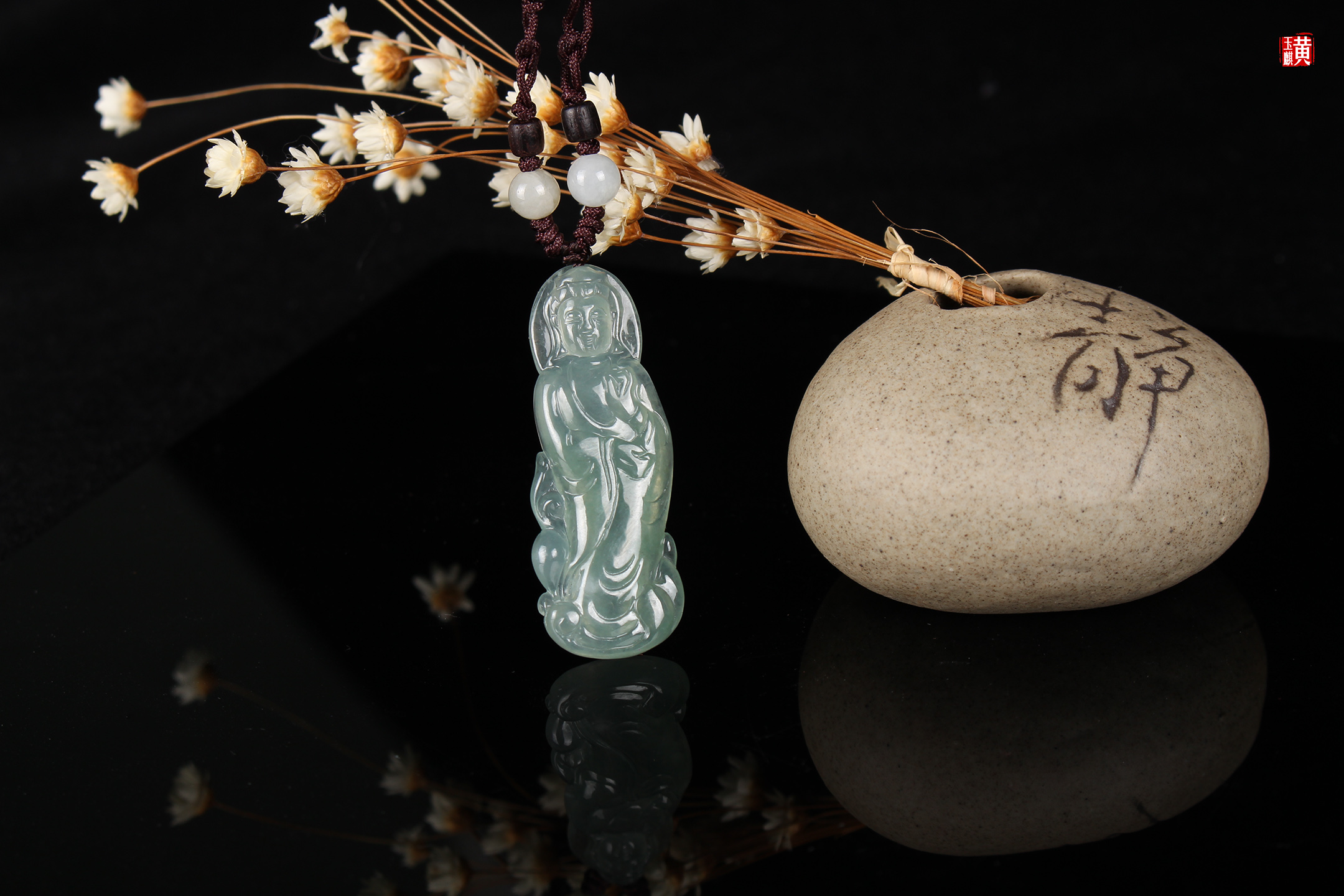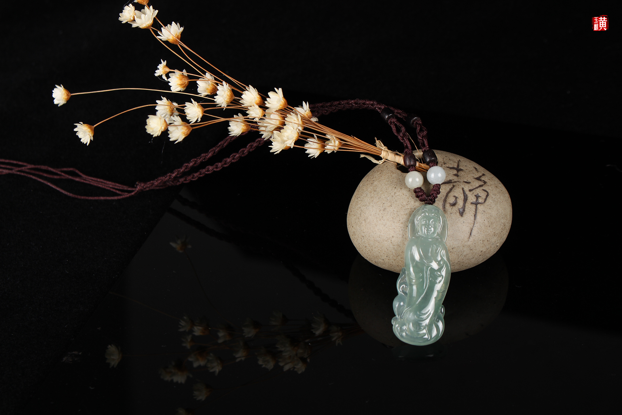 天然翡翠【观音】吊坠 配精美编织挂绳