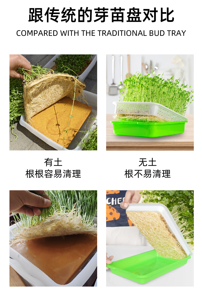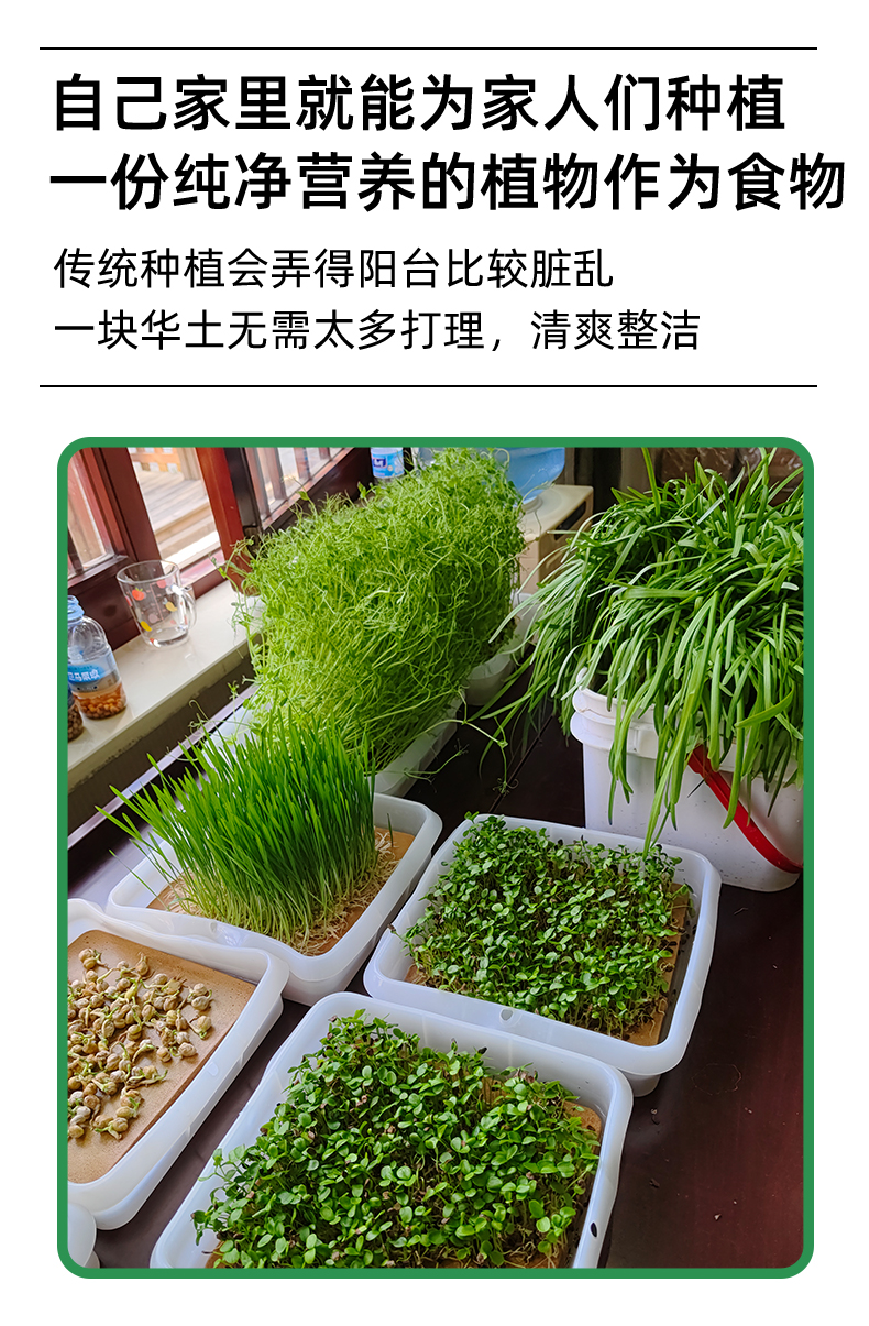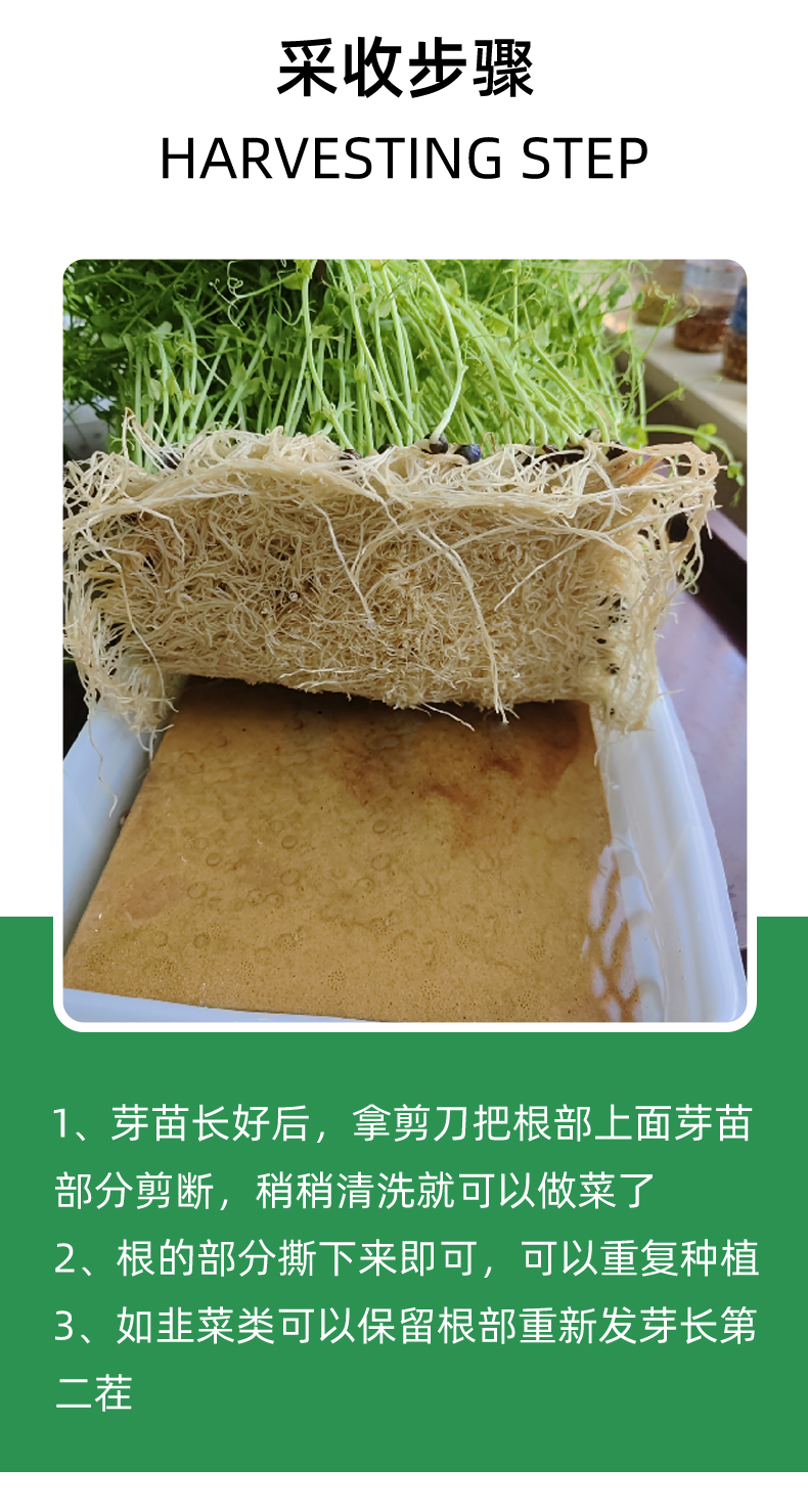 3、芽苗长成后移除,将种植板用水清洗晒干后可以重复使用。