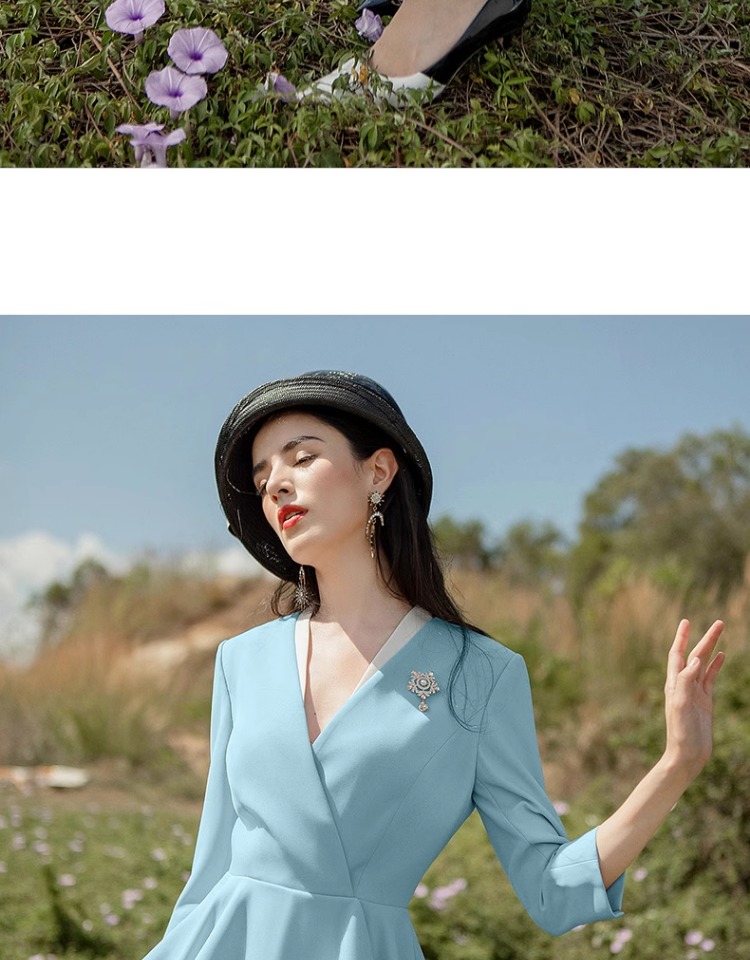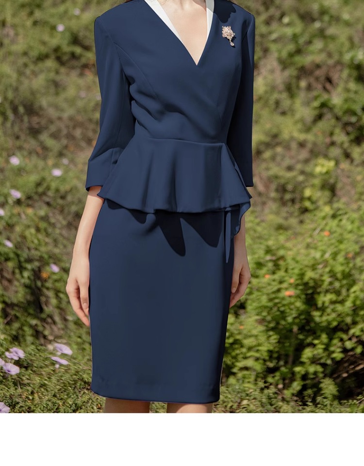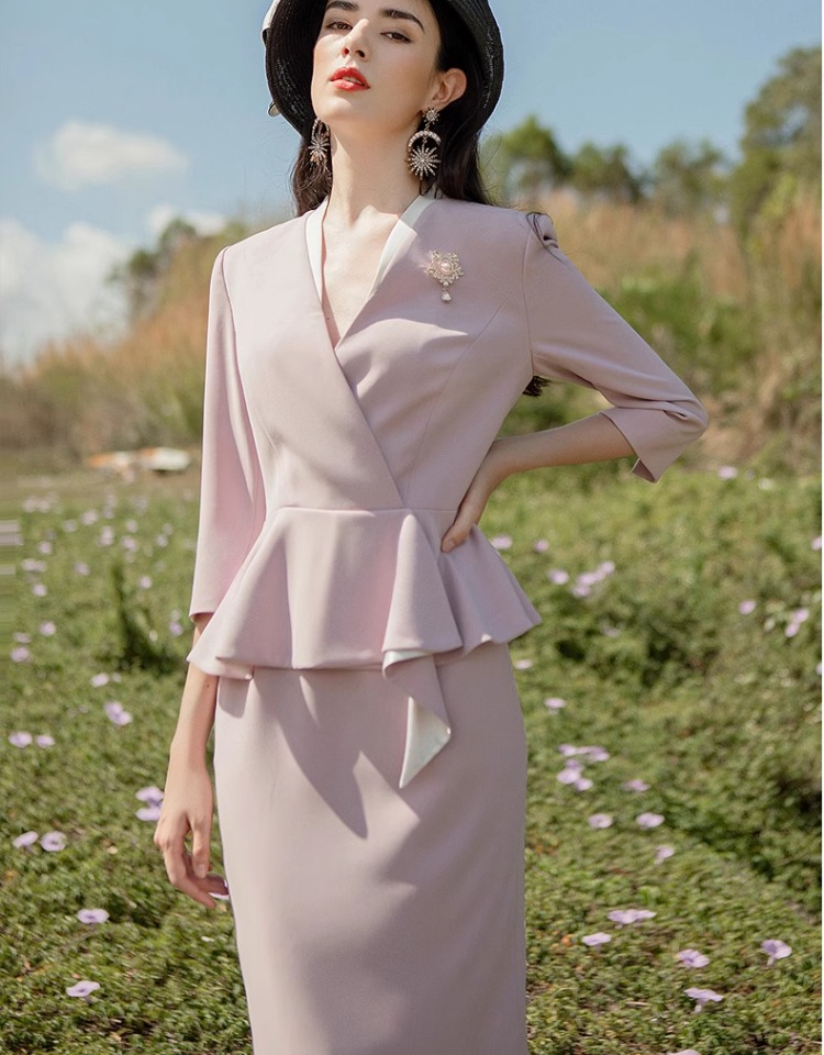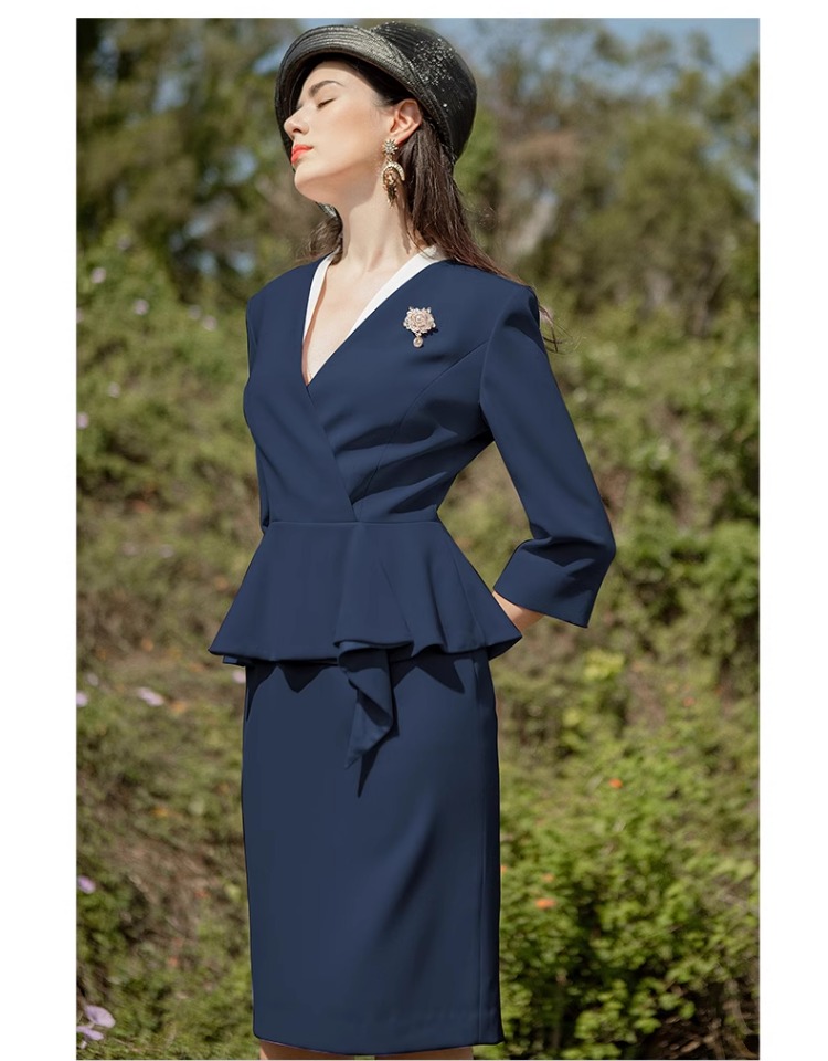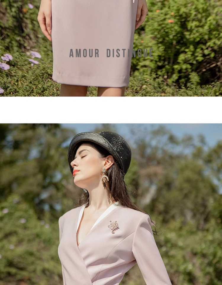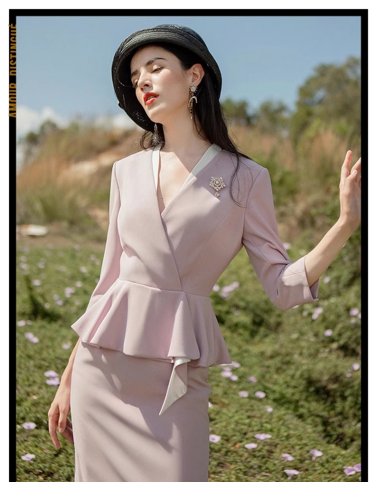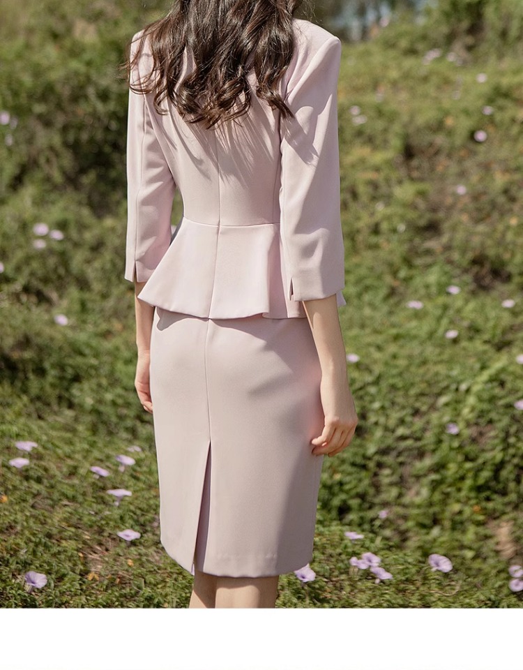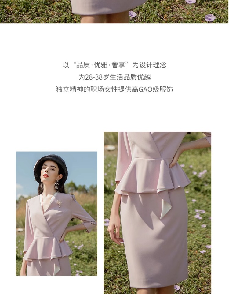 AD洋气紫色连衣裙女时尚职业装气质女神范西装套装高端前台工作服