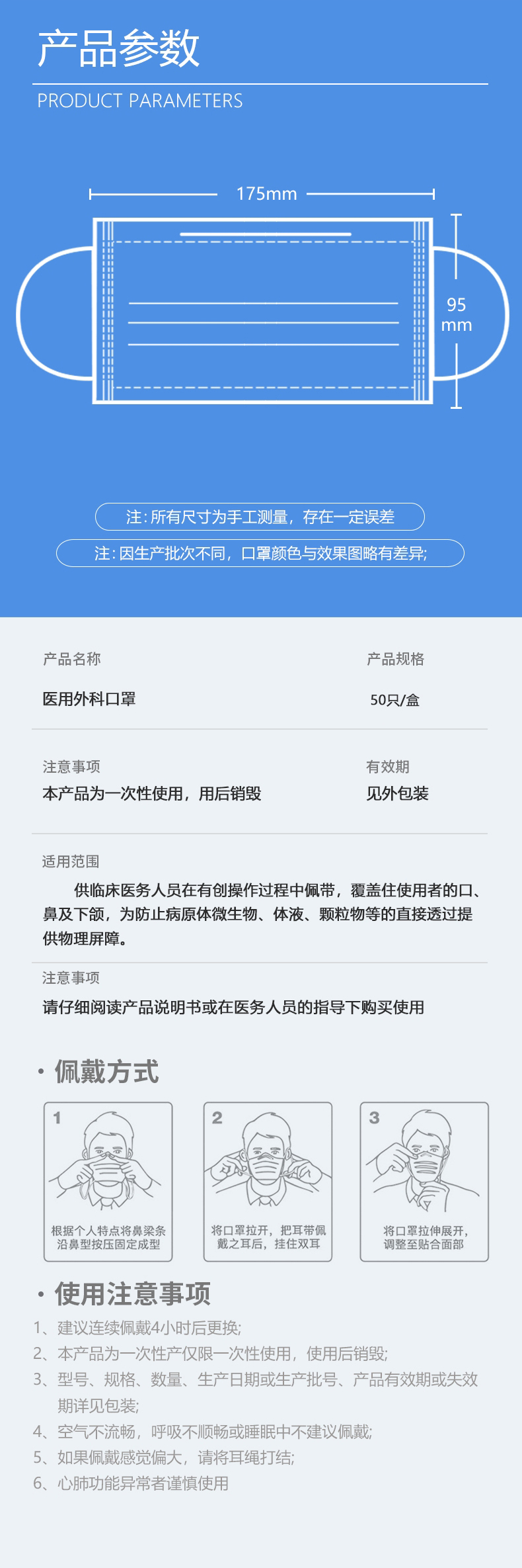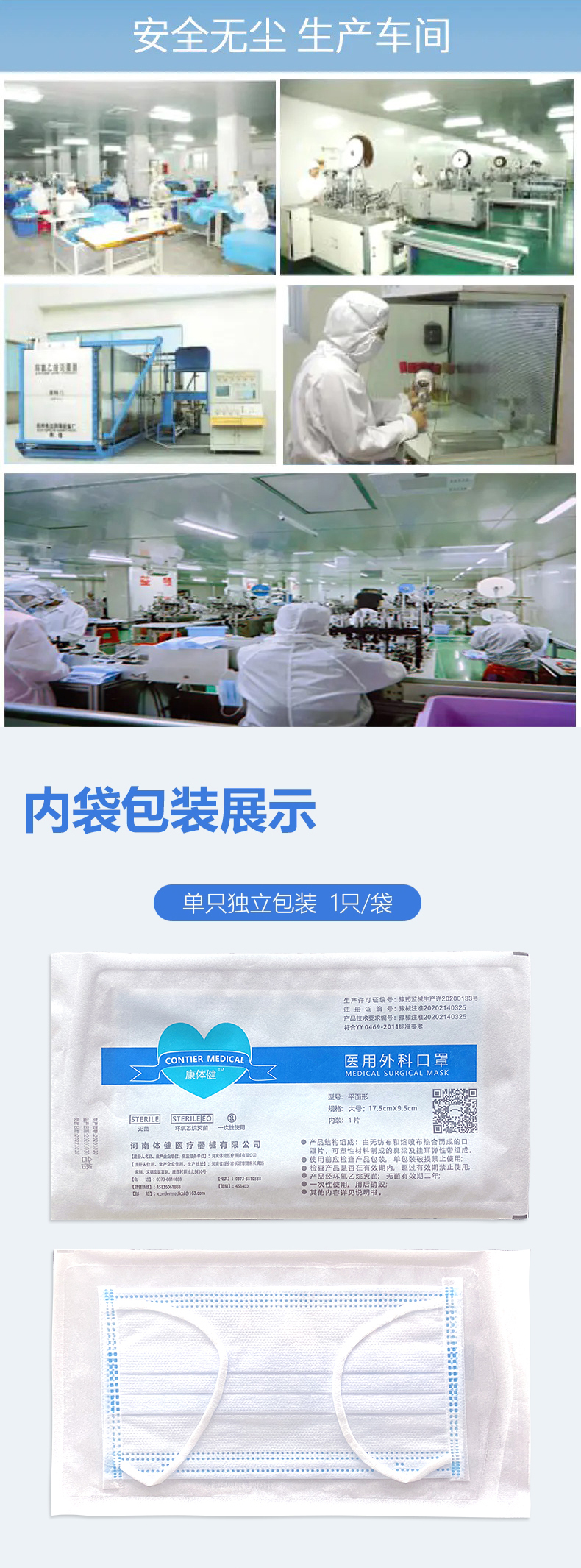 【单片独立包装】50片/盒 康体健医用外科口罩(无菌型)