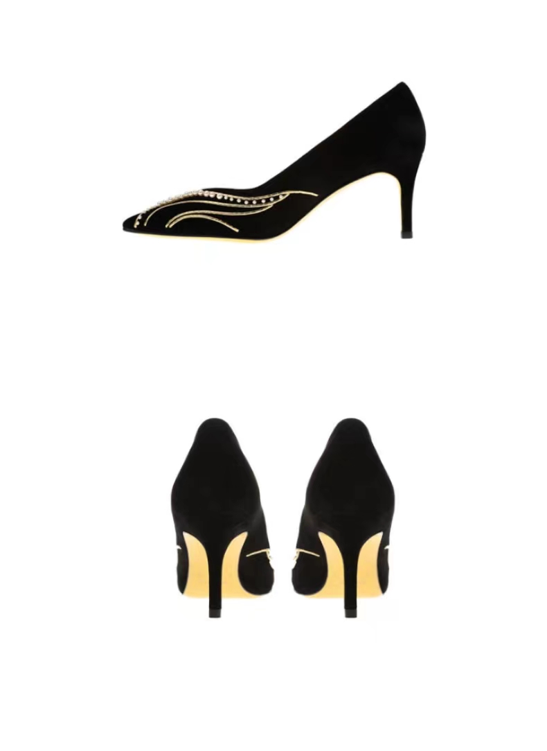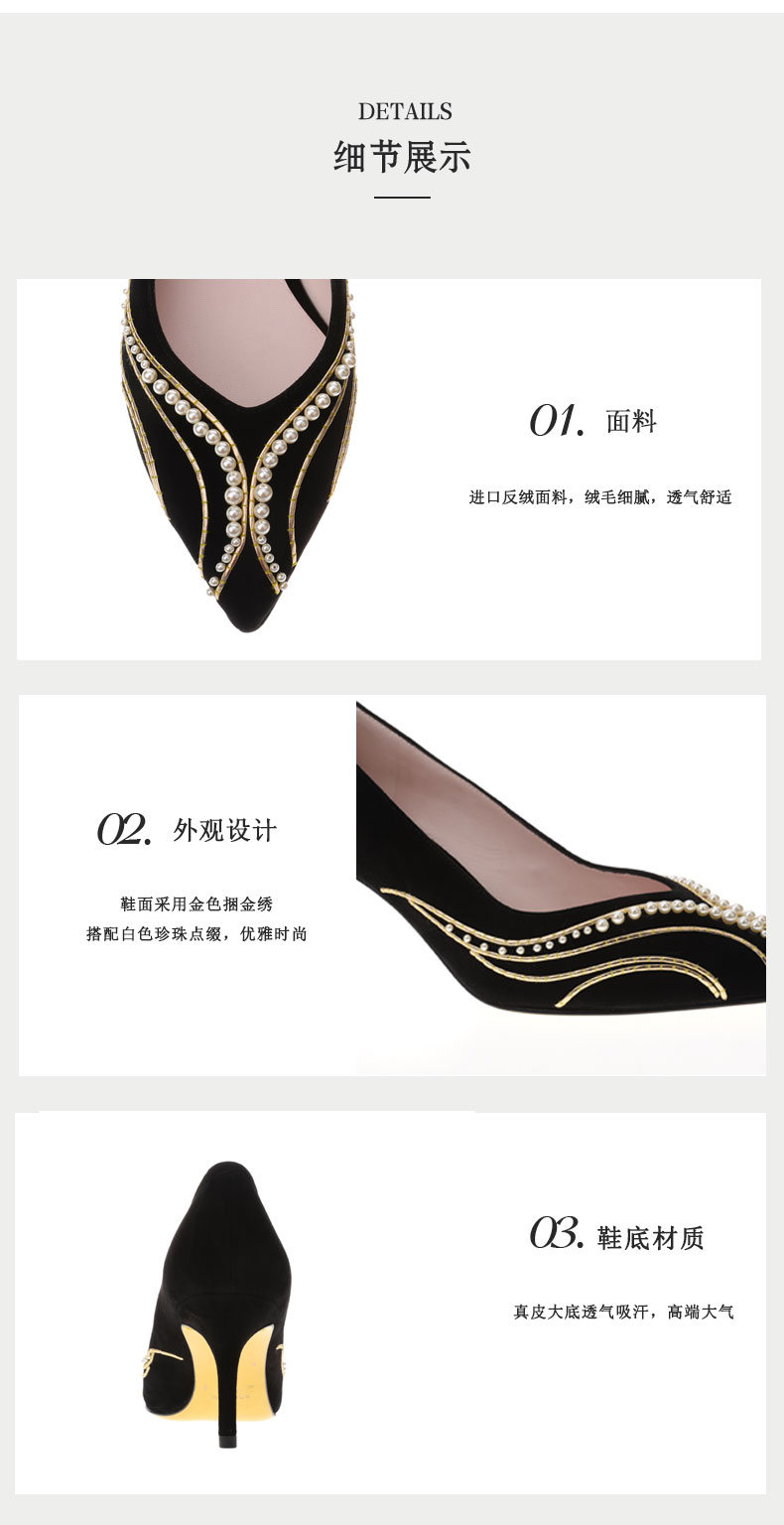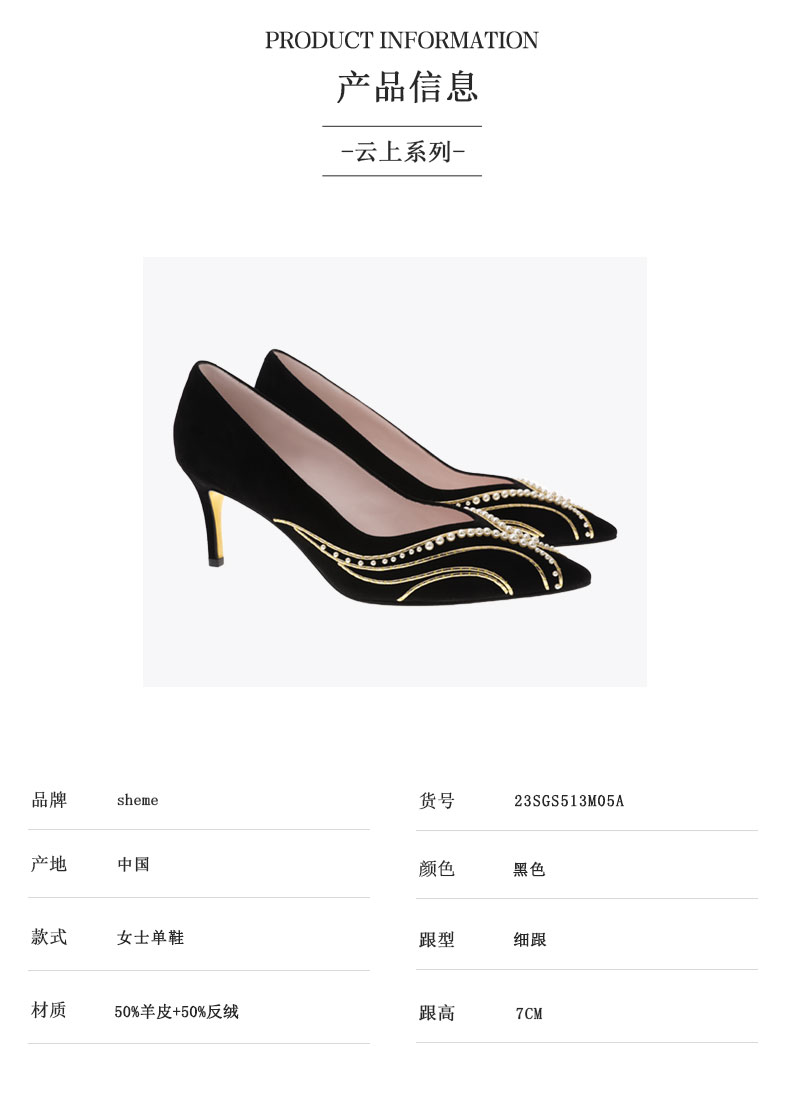 sheme云上系列尖头细跟捆金绣优雅女士单鞋