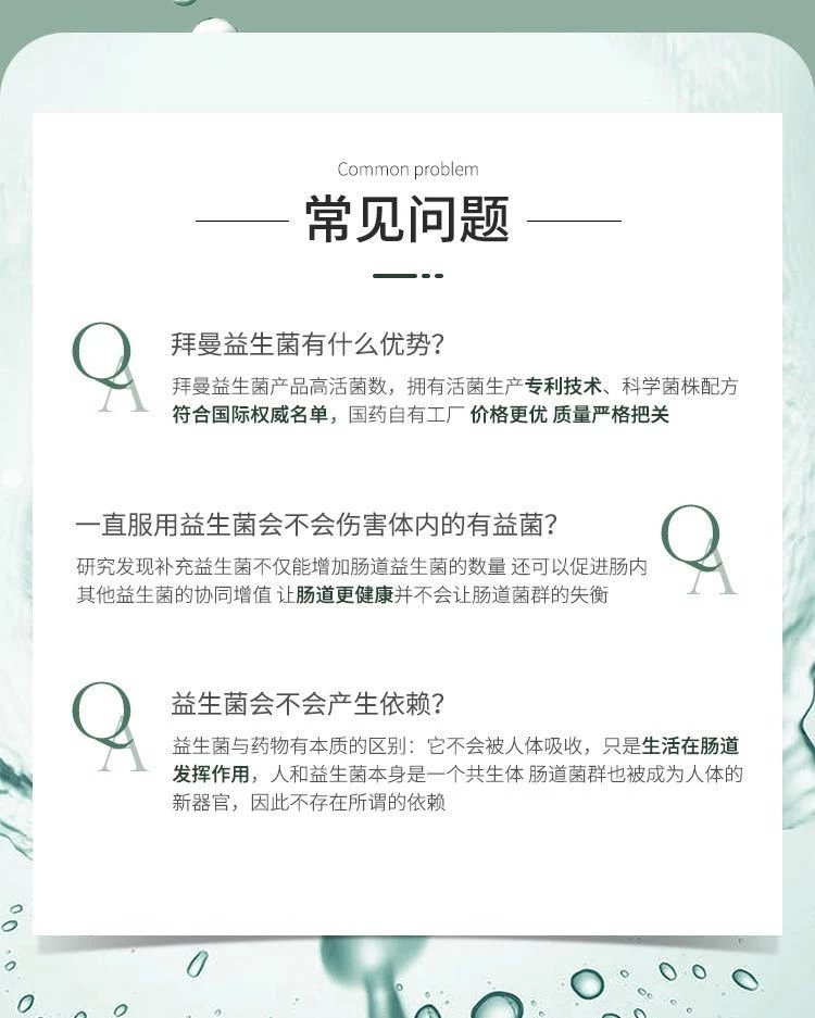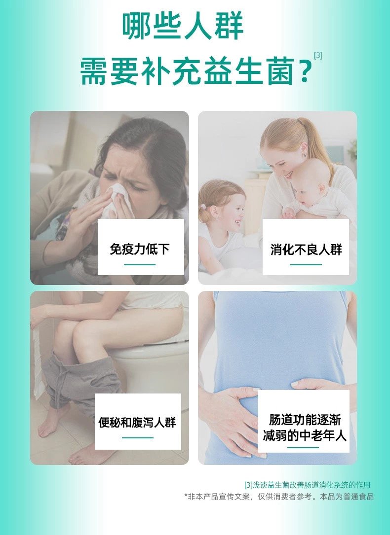 4.初次食用时,因个体差异,排便次数可能会增加,此为益生菌食用过程中的正常现象;