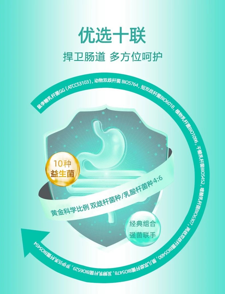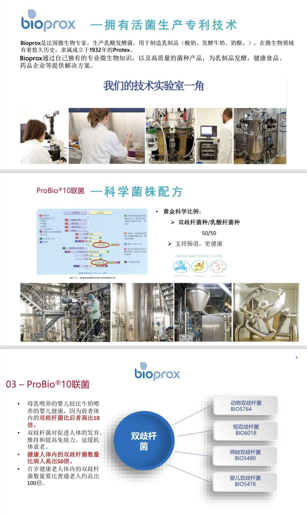 1, 引进法国Bioprox专利10联配方,双歧杆菌、乳杆菌黄金比例,每盒富含1000亿活性菌,均衡满足人体多样化微生态需求;