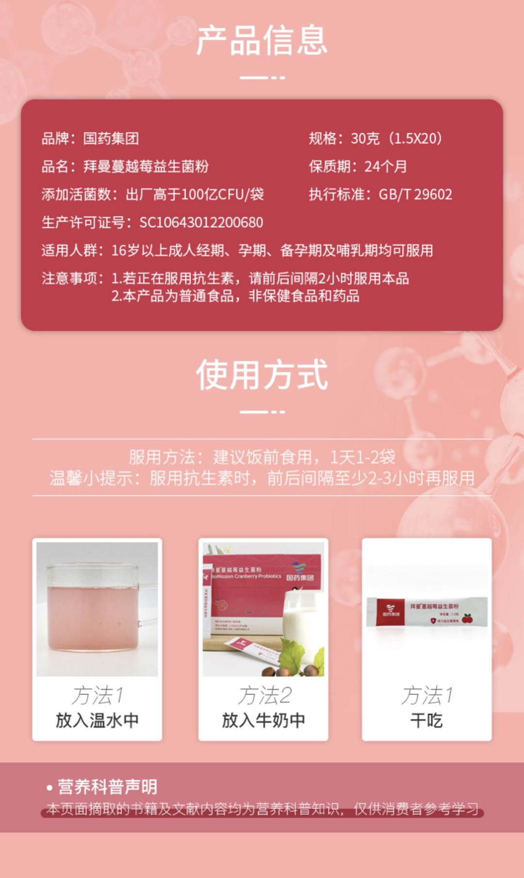【国药集团拜曼蔓越莓益生菌粉品牌】