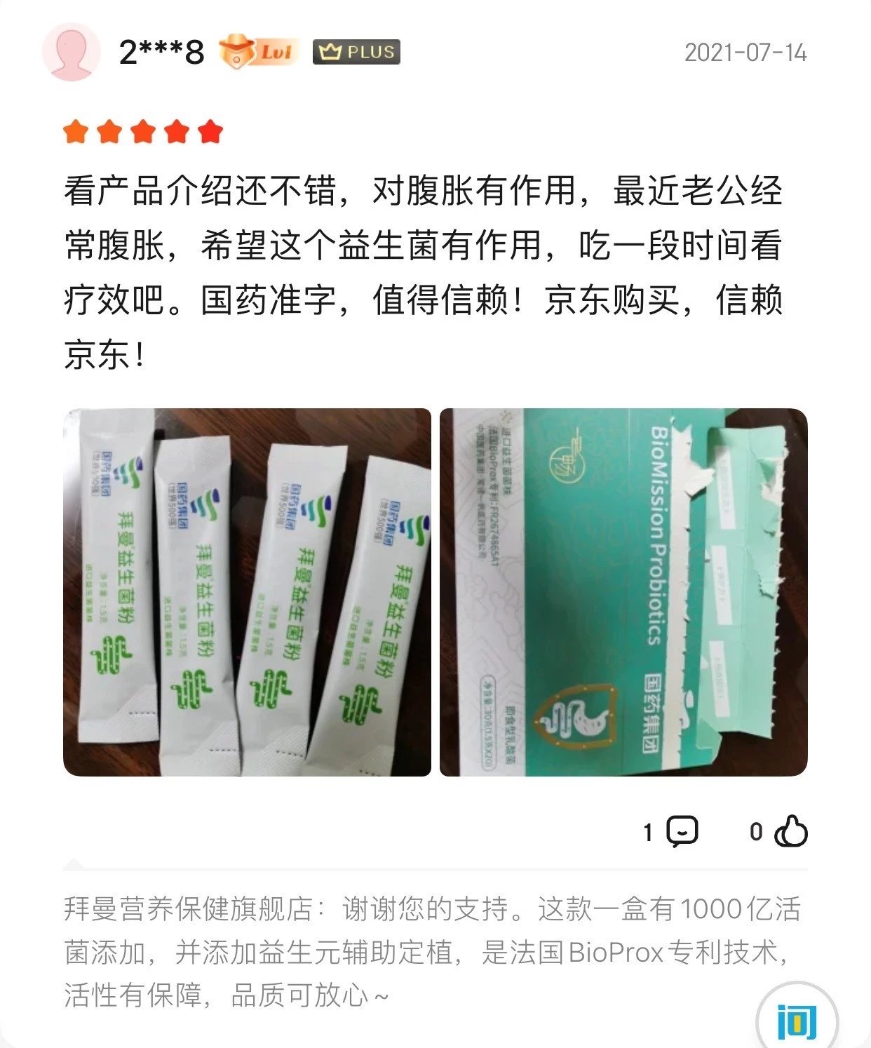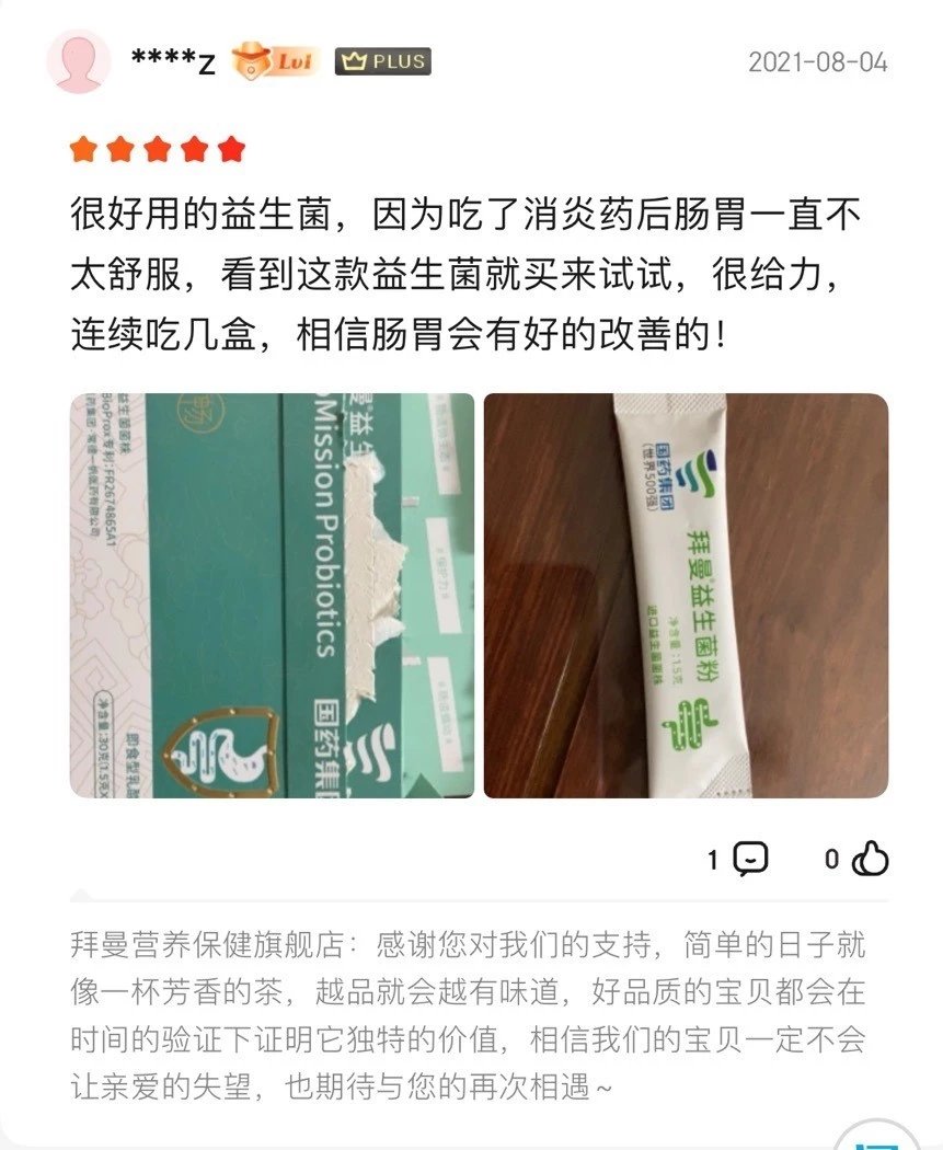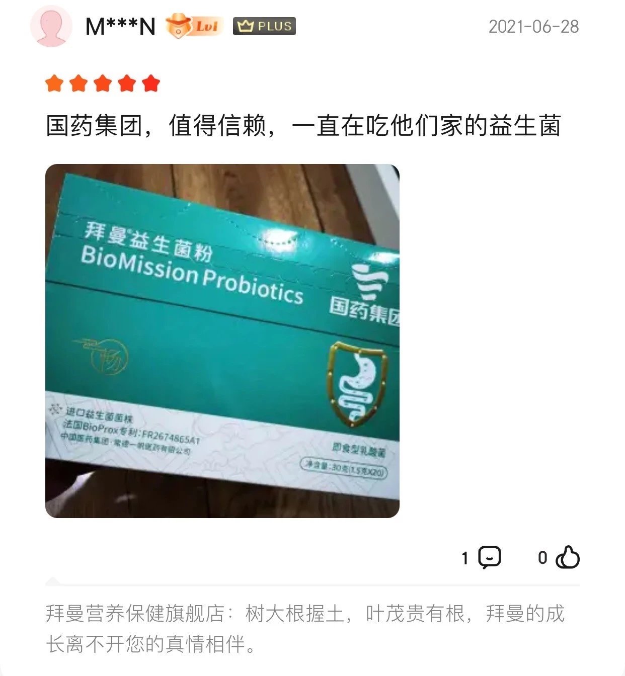 好的产品,经得住市场的考验,更承受的住用户的真实体验反馈。国药拜曼蔓越莓益生菌,用户好评率高达100%,用户说好,才是真的好!