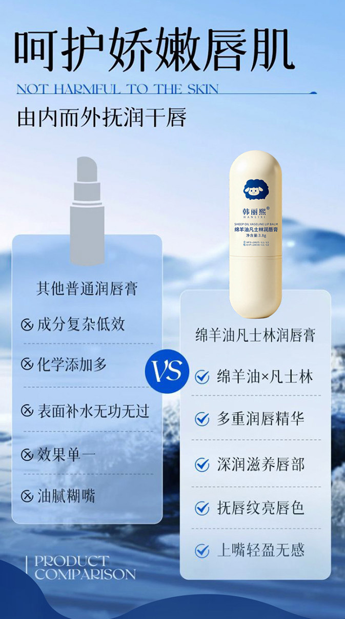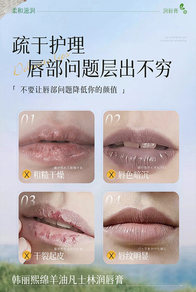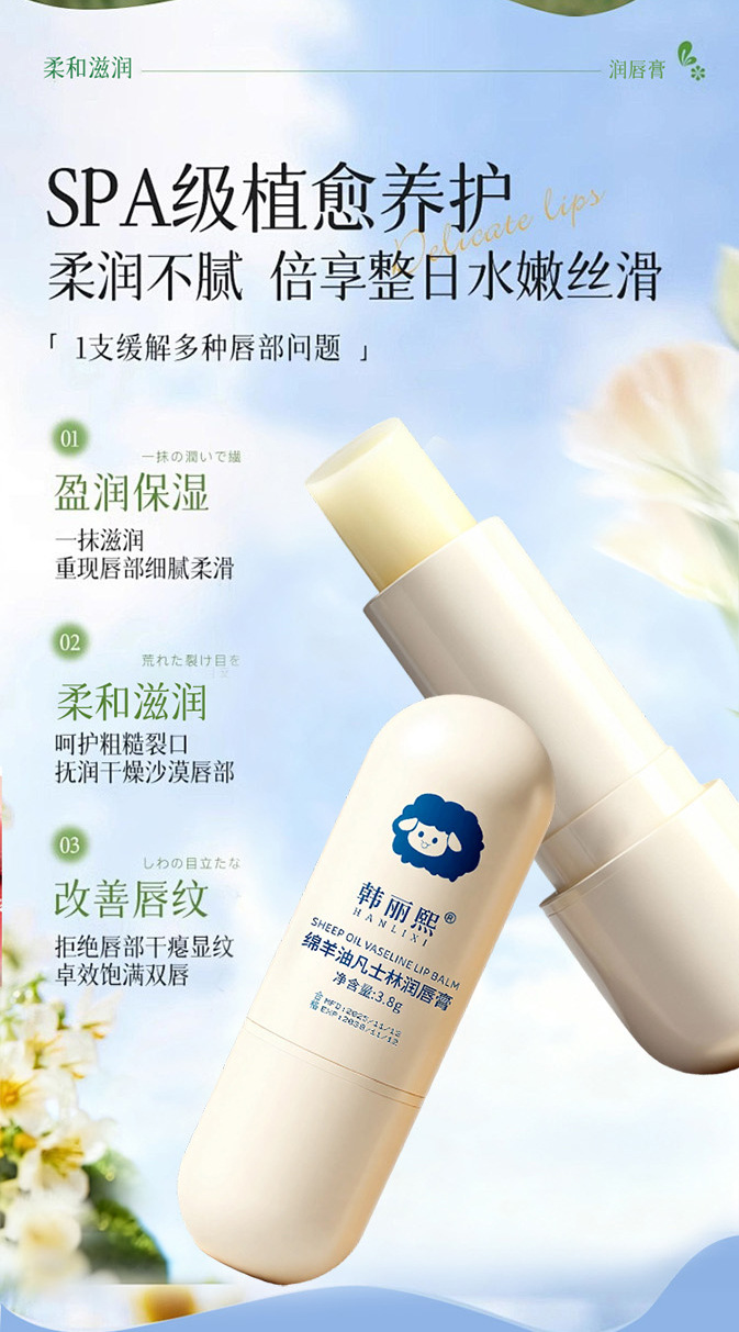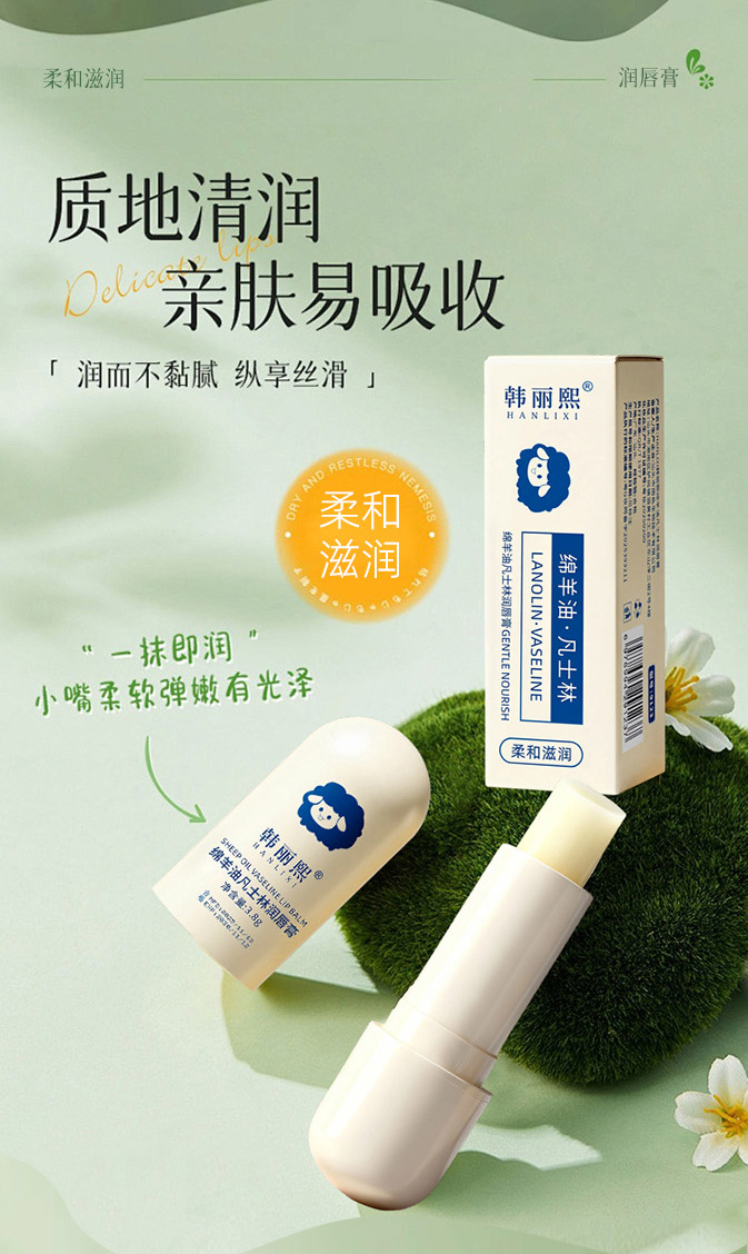 【越涂越润❗️绵羊油凡士林润唇膏】抹完小嘴都是嫩嫩的,由内而外抚润干唇,凝炼多重嫩唇精华,一抹吸收润而不腻,补水保湿无色唇膜防干裂唇部护理滋润QQ