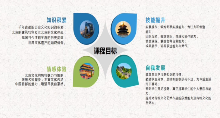 1.感受明清皇家建筑一一紫禁城的宏伟壮观,体会中华灿烂的古代文明;