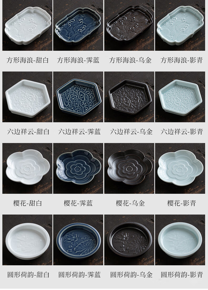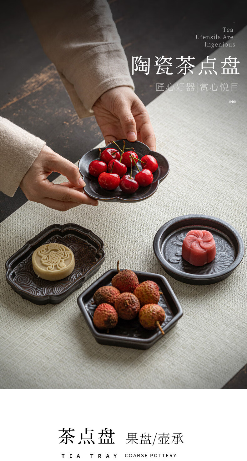 【陶瓷茶点盘小碟组合装】中式复古点心盘水果零食托盘家用客厅茶几茶点糕点盘禅意