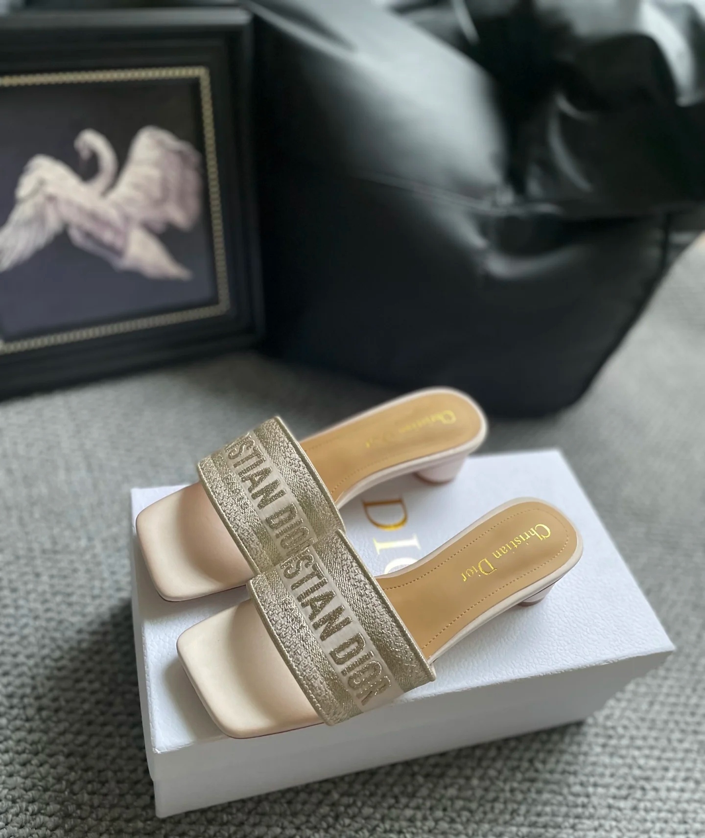 D家超高颜值凉鞋之冠~脚掌羊皮,鞋跟皮包小圆跟3.5cm左后,上脚舒服。