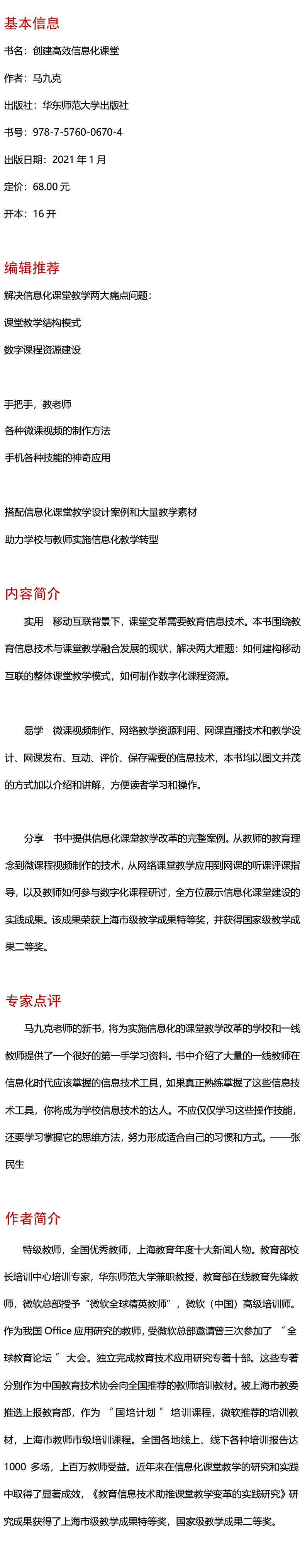 创建高xiao信息化课堂 解决信息化课堂教学两大痛点问题 课堂教学结构模式 数字课程资源建设 正版 华东师范大学出版社