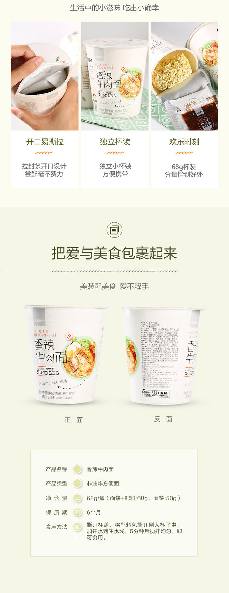 香辣牛肉面 68g*2杯素食山珍